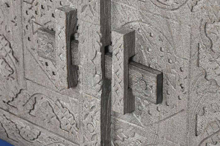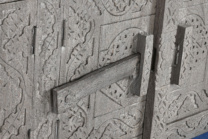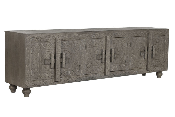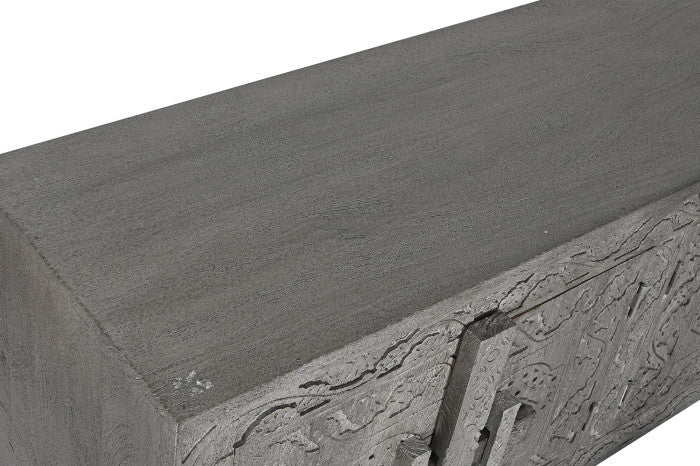 Comoda TV din lemn, culoare gri, sculptat.