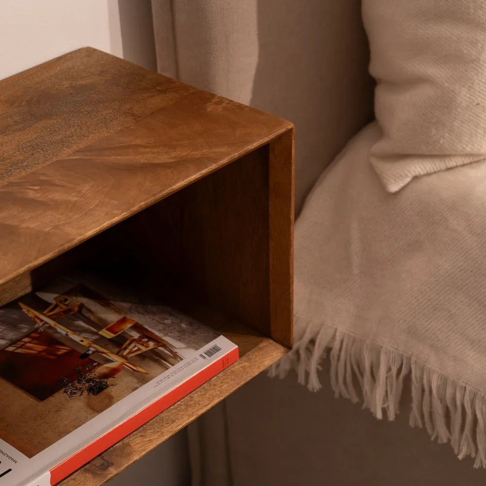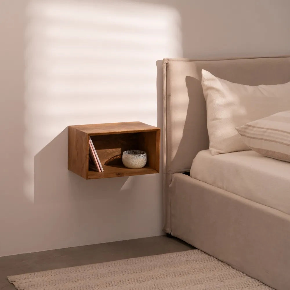 Noptiera suspendata din lemn de mango, include sistem de prindere.