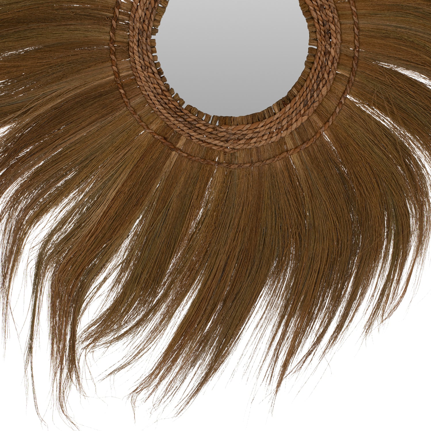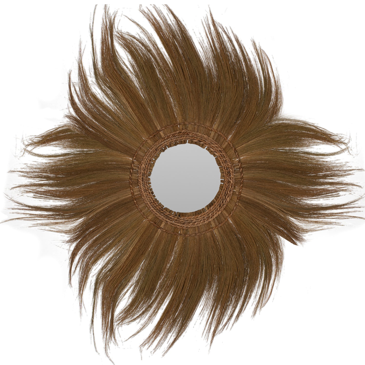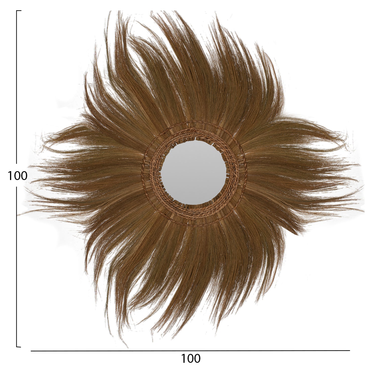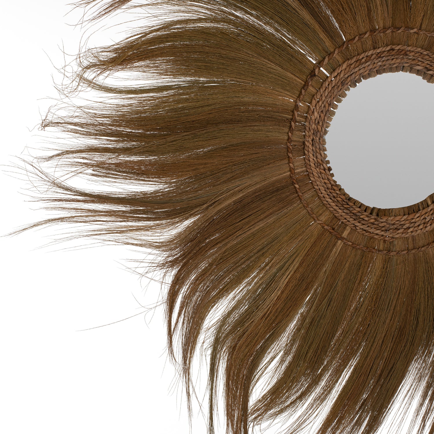 Oglinda de perete cu design unic, rama din scoarta de bananier in culoarea naturala.