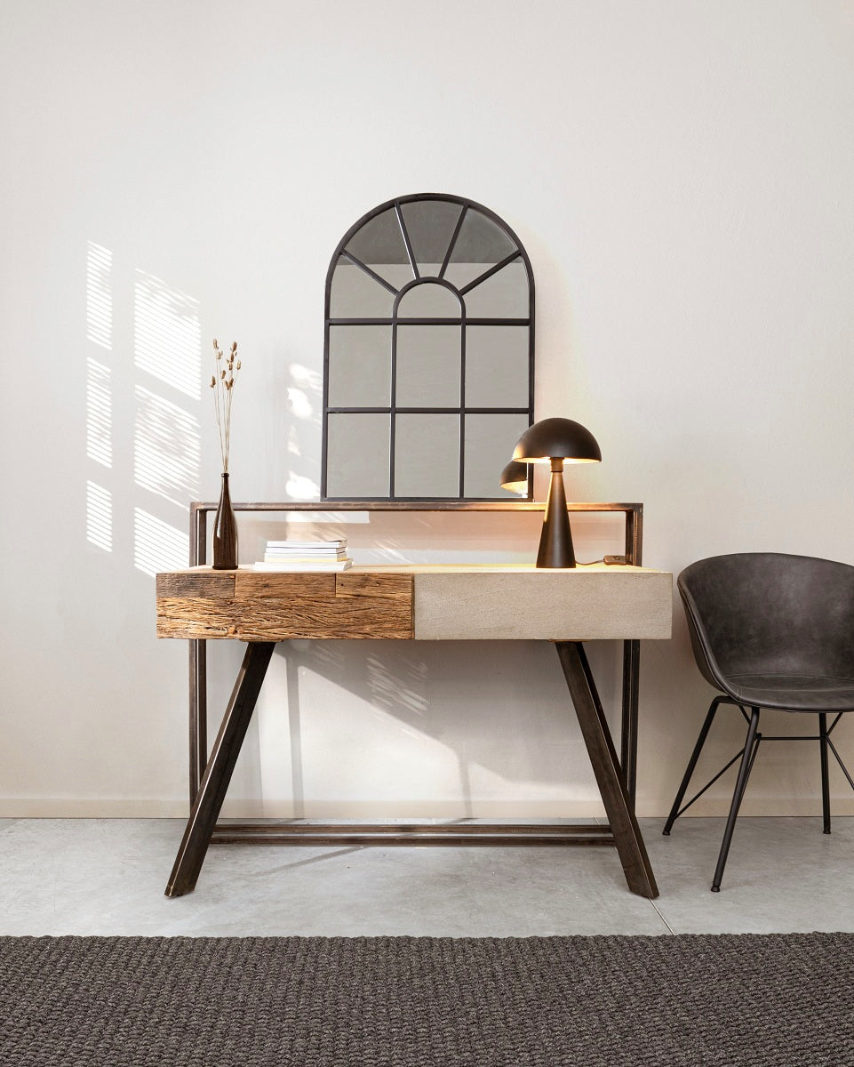 Oglinda de perete cu rama si bare din metal vopsit, spate din MDF si oglinda.
