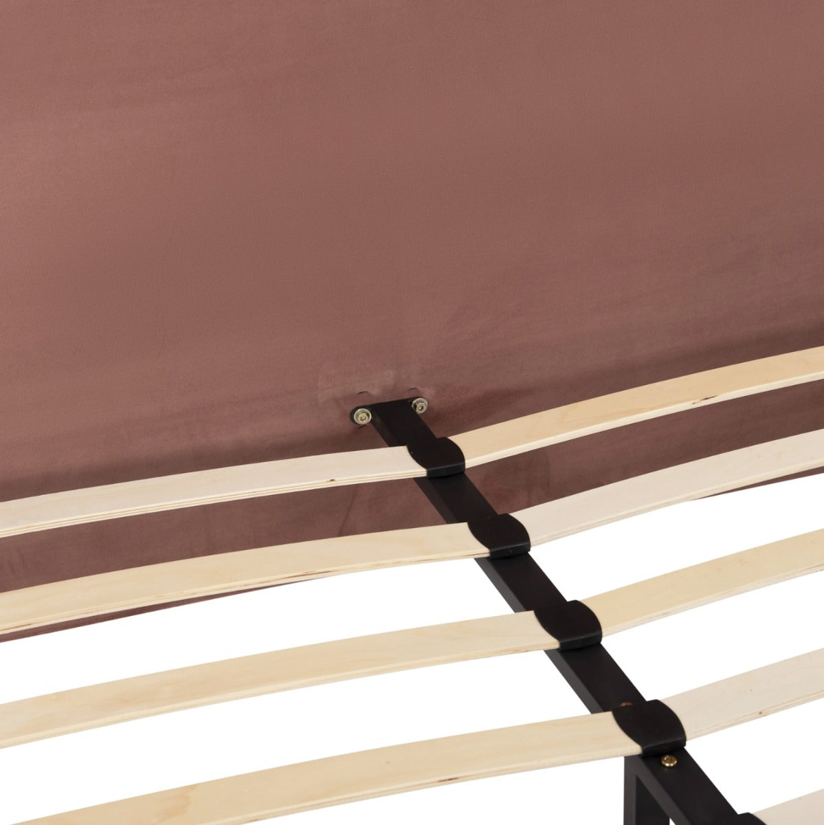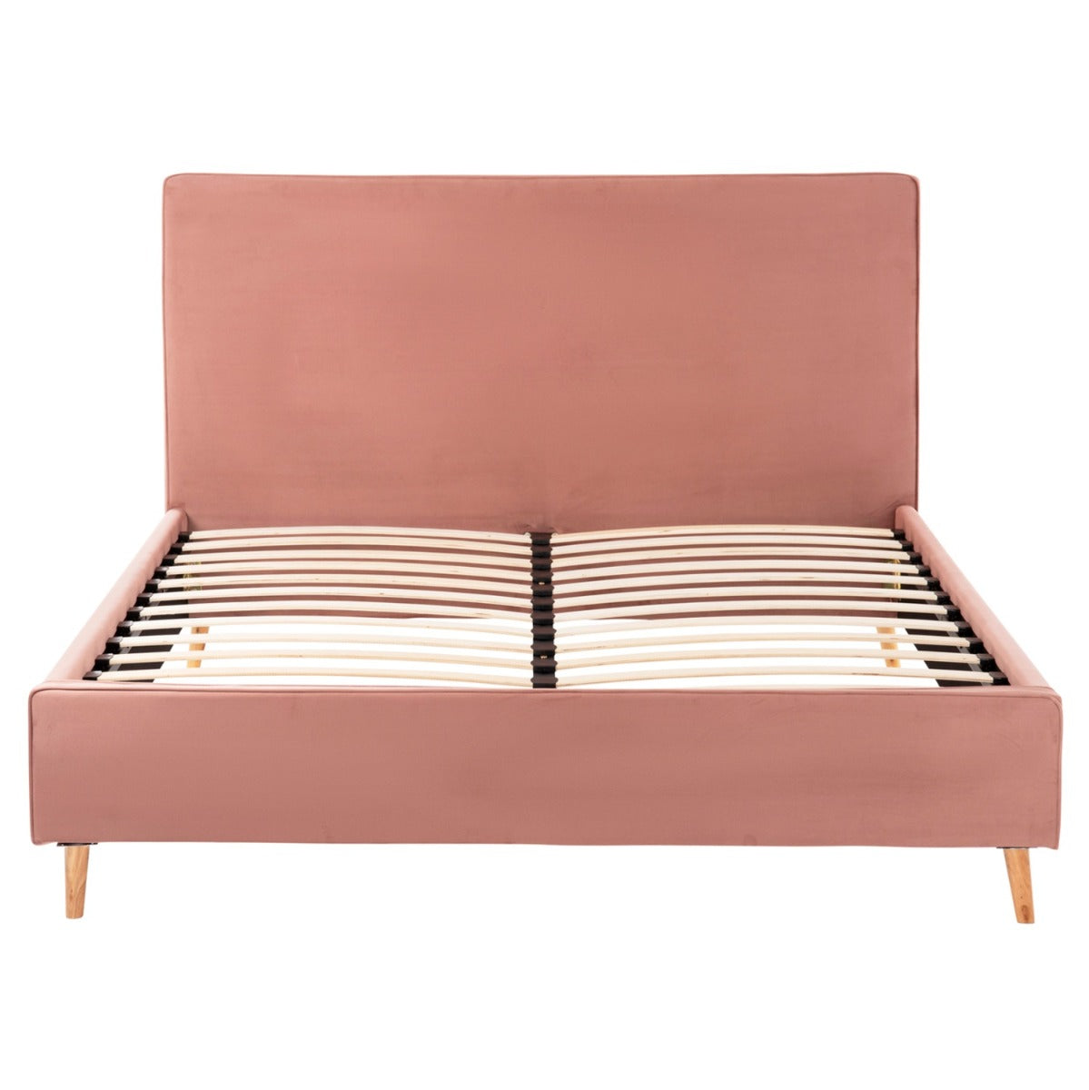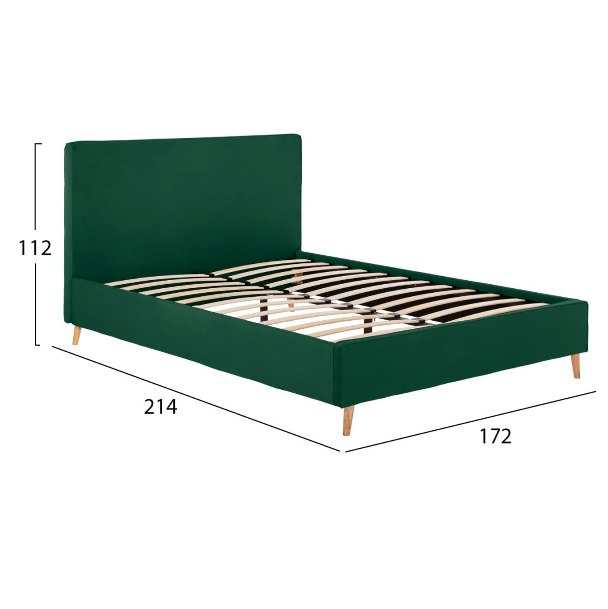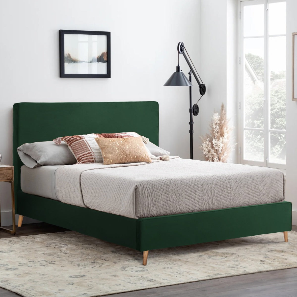 Pat tapitat cu o tablie inalta, realizat din lemn si tesatura de catifea de calitate premium, cu somiera inclusa.
