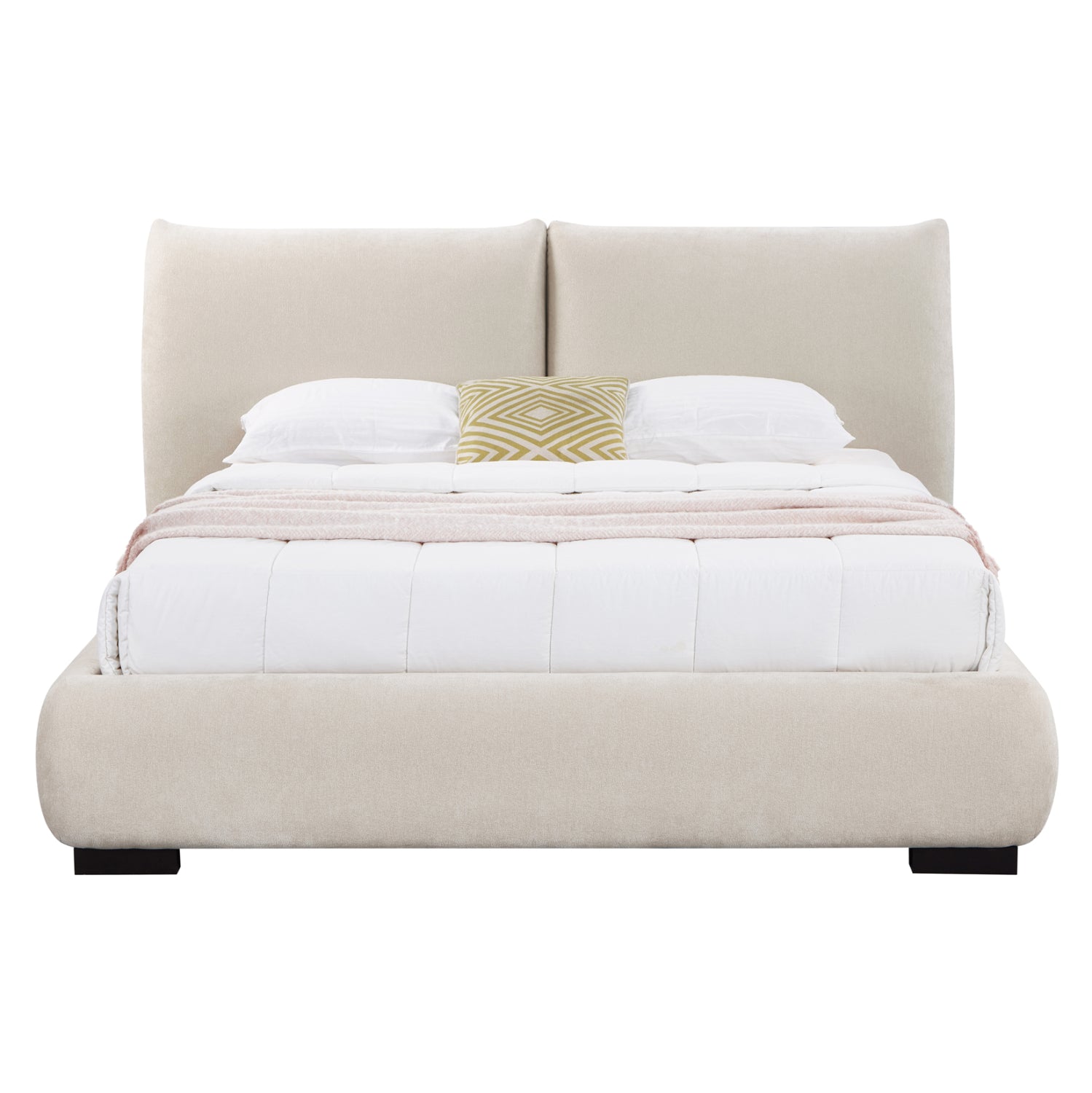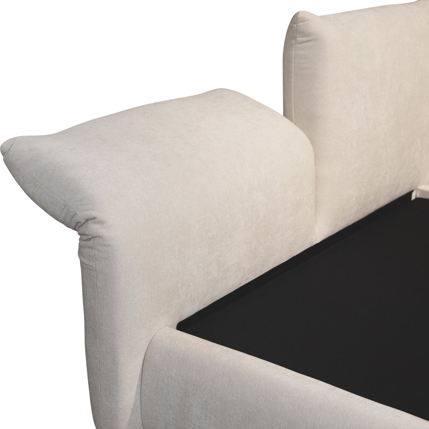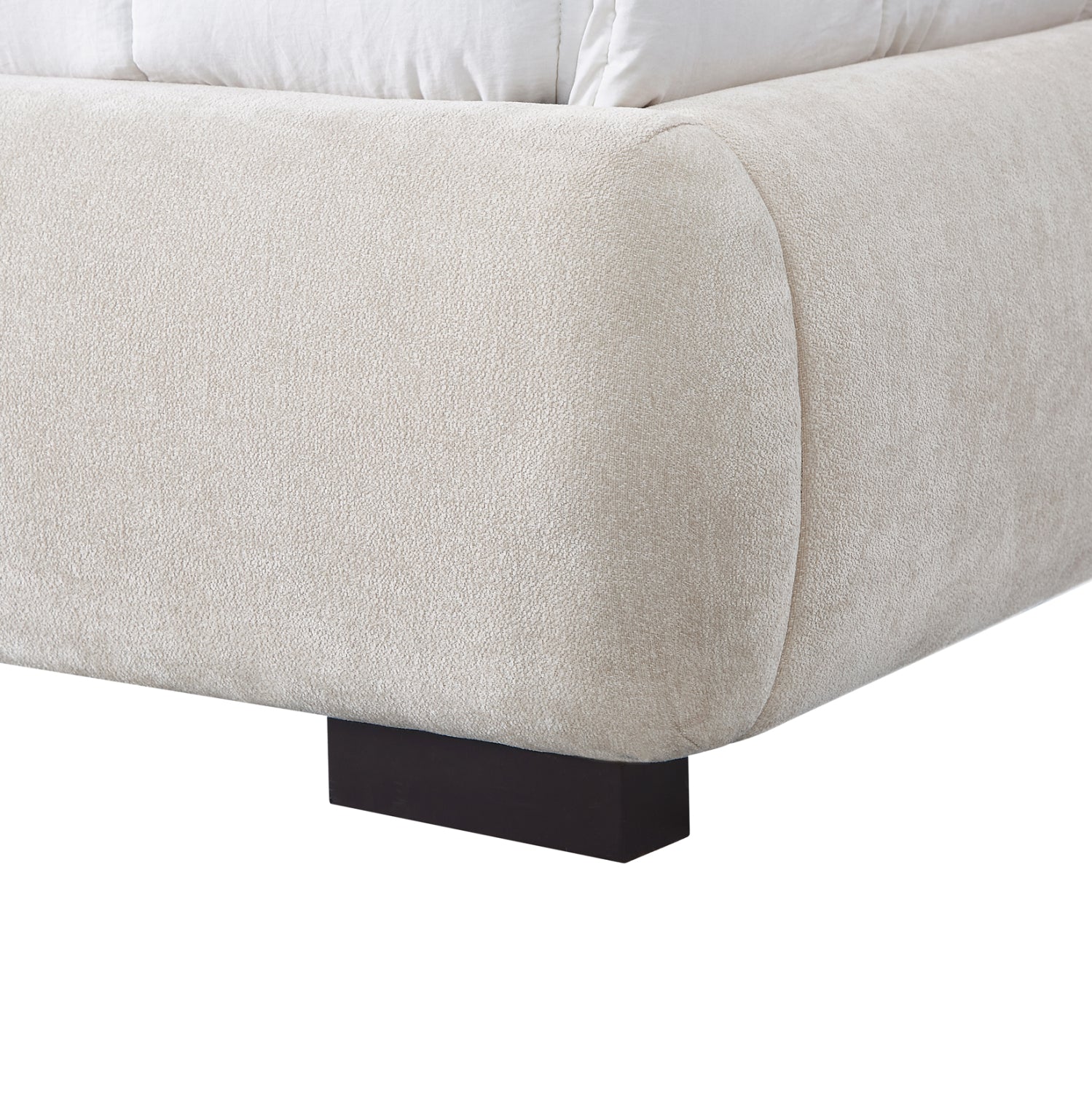 Tapițat cu o țesătură „caldă” și luxoasă din blană artificială în culoare neutră și cu picioare scurte din lemn, acesta va pune în valoare orice dormitor.