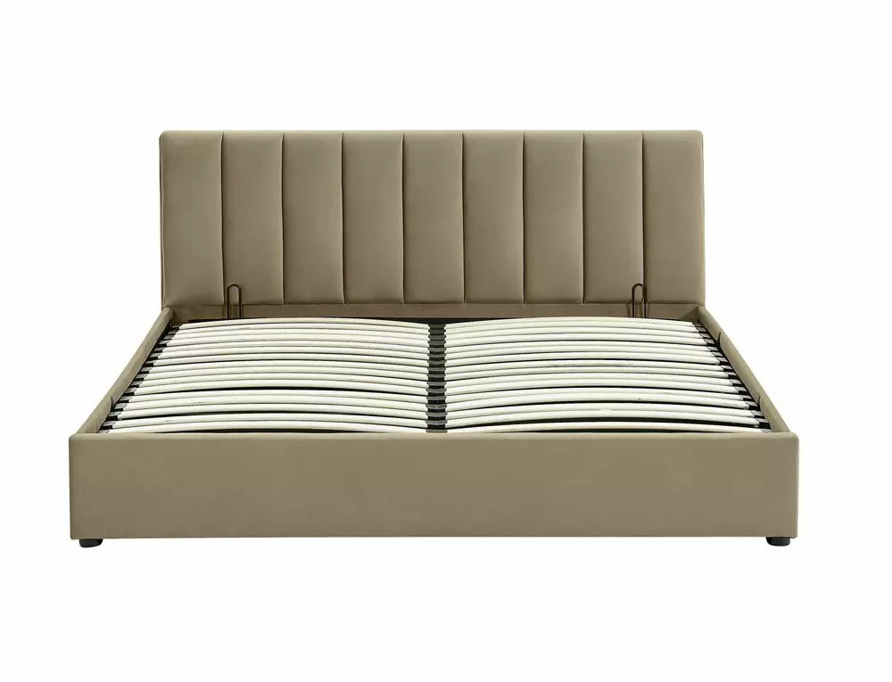 Pat tapitat cu tesatura de catifea. Dispune de spatiu pentru depozitare.