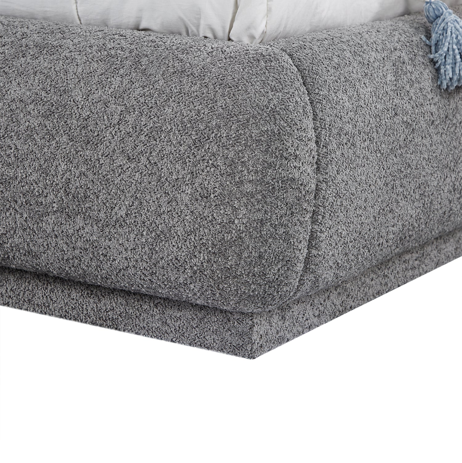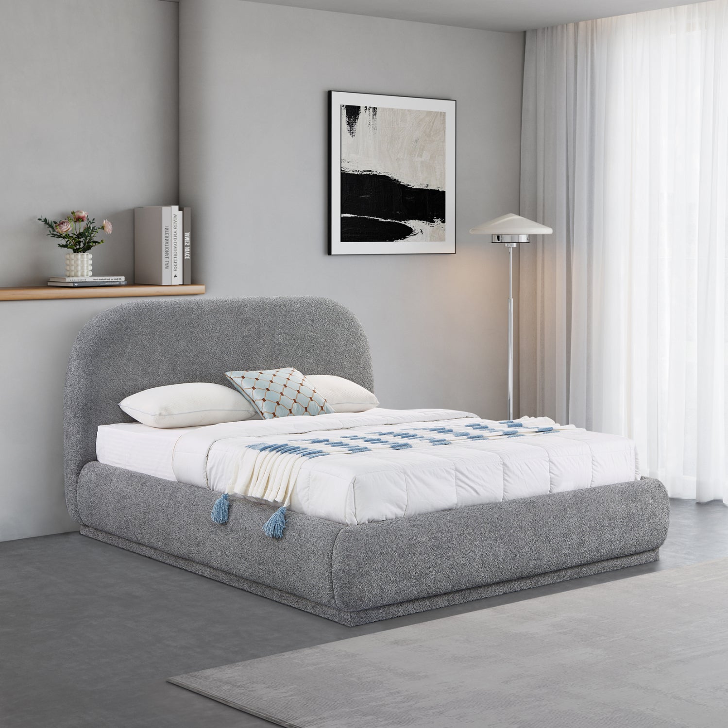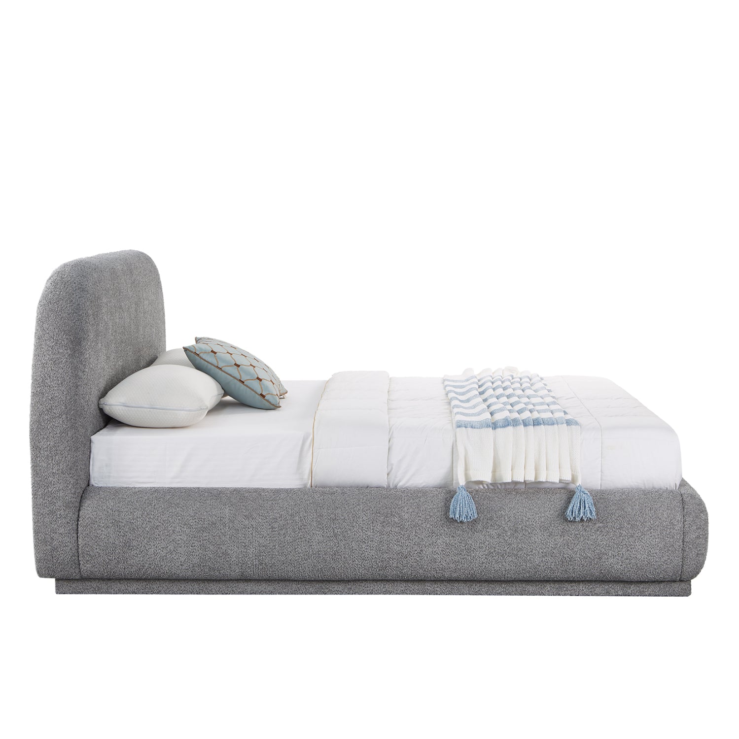 Un pat care este întruchiparea stilului modern în dormitor. Tapițat cu o țesătură Chenille „caldă” și luxoasă  și cu un design simplu cu «linii» frumoase, fără picioare, deoarece patul „stă” pe podea, acesta va fi un punct de referință.