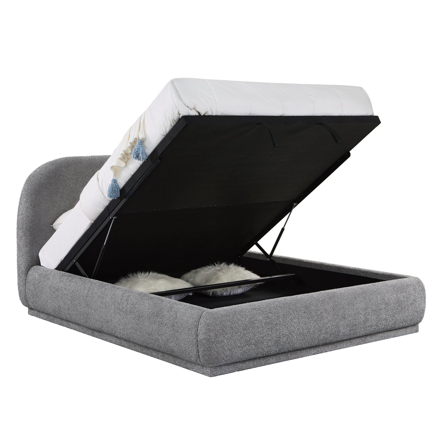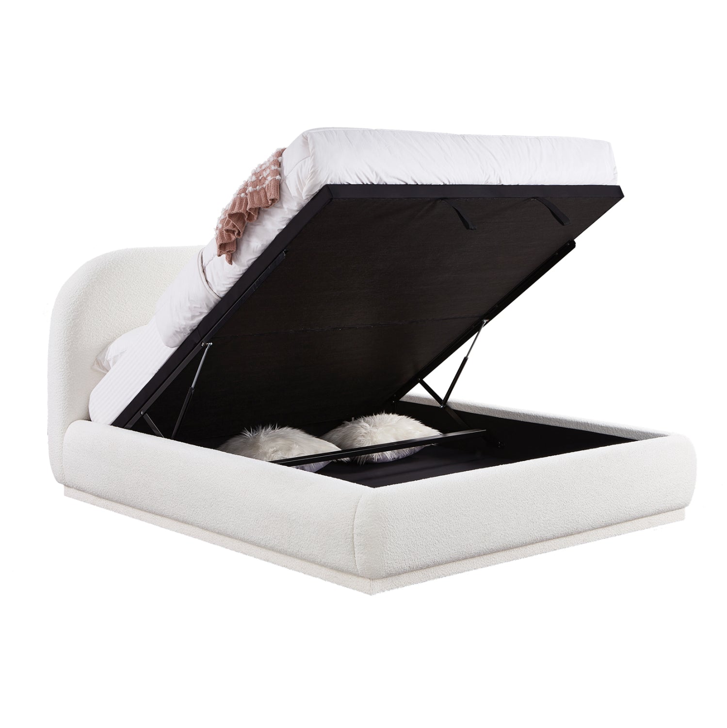 Salteaua „stă” pe o suprafață din plăci aglomerate, care este ridicată de un mecanism metalic de siguranță cu un amortizor care menține cutia ridicată atât timp cât este necesar, oferind un spațiu mare de depozitare, care, desigur, ocupă tot spațiul până la podea.