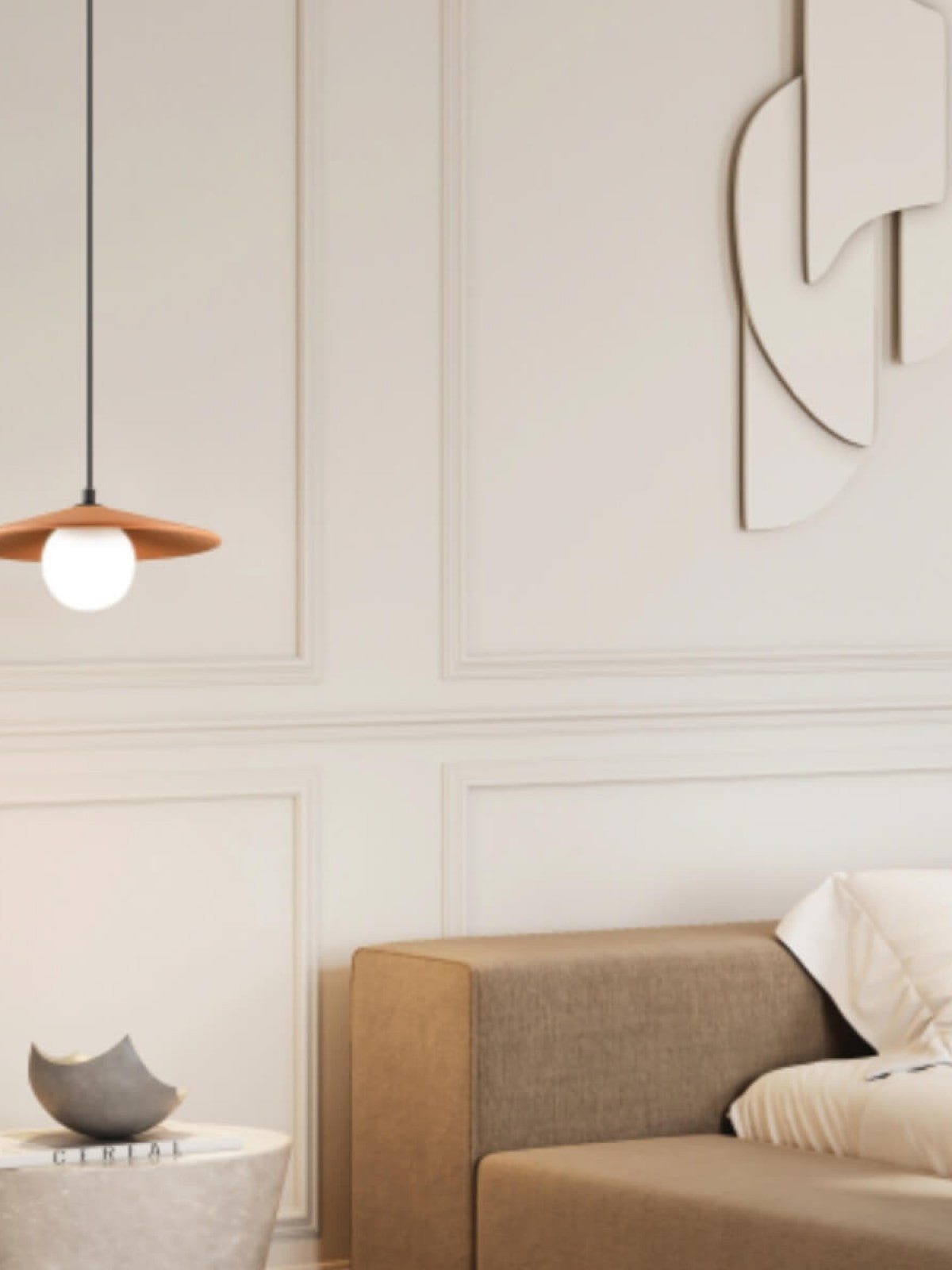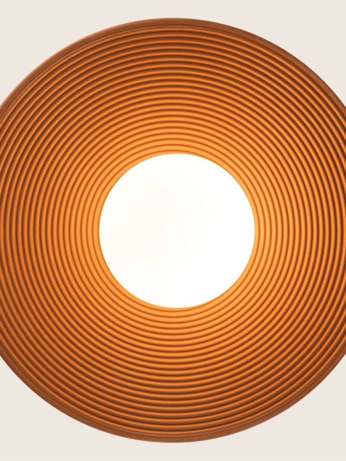 Modelul Coloris este o lampa unică, cu o singură lumină, care combină textura naturală a ceramicii cu eleganța discretă a sticlei opal.
