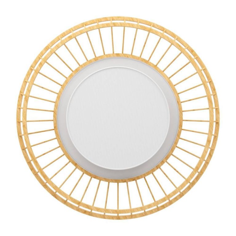 Plafoniera din lemn, textil si otel, cu functie alb reglabil, control prin telecomanda/app (AWOX Home CONTROL), dimabil, RGB.