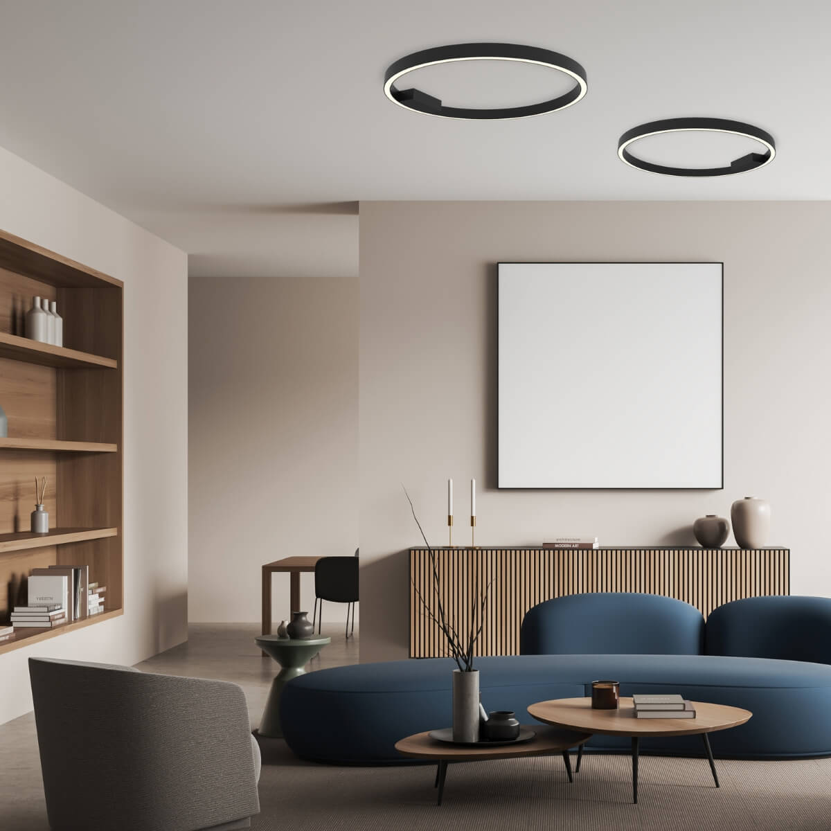 Turelo este o lampă de tavan LED impresionantă, cu un design unic în formă de inel, oferind o iluminare caldă de 3000K cu o putere de 50W și o luminozitate de 2956 lumeni.