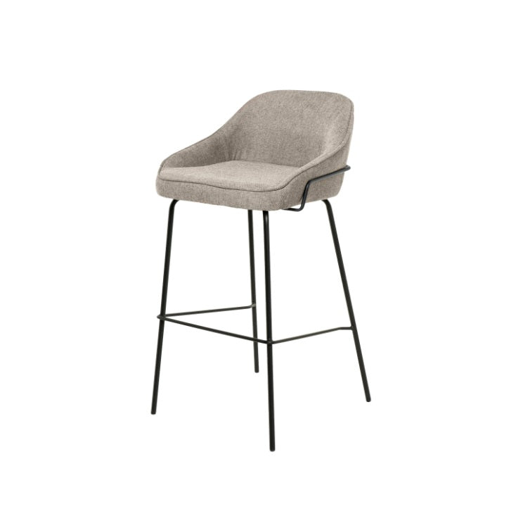 Scaunul de bar LAINIS se remarcă prin spătarul și cotierele integrate, oferind confort și susținere suplimentare, fiind perfect pentru perioade lungi de utilizare.