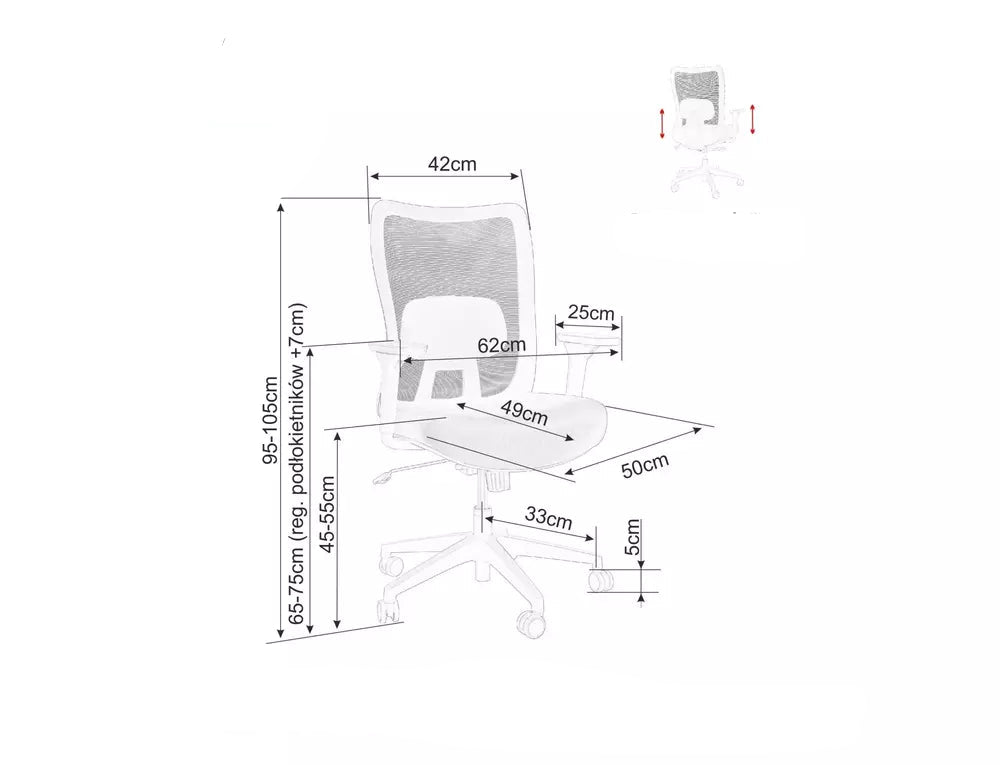 Dimensiune totala: 62 cm x 55 cm x 95/105 cm (W x D x H).