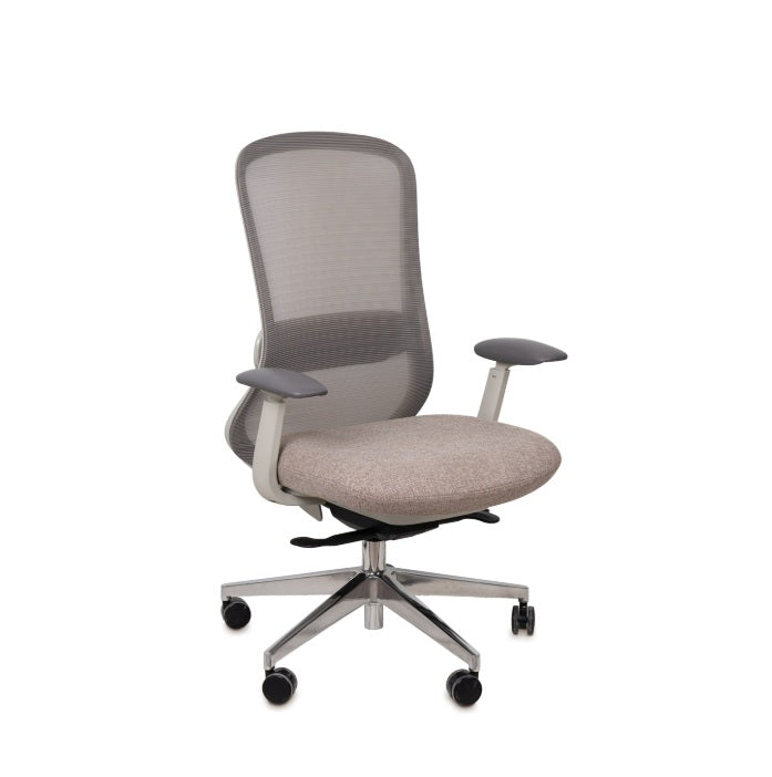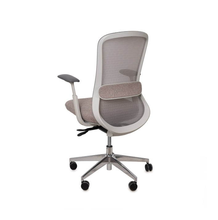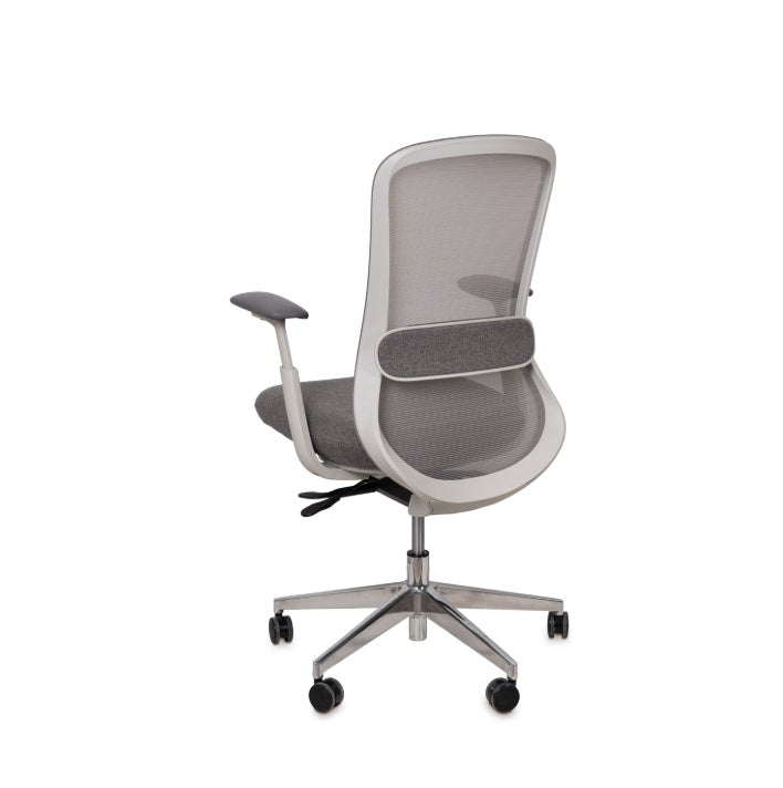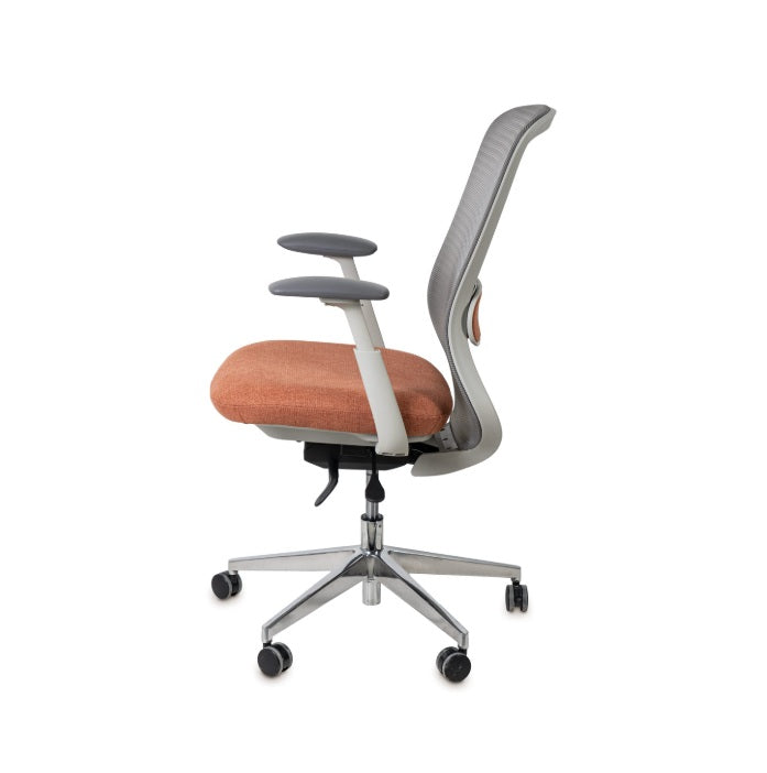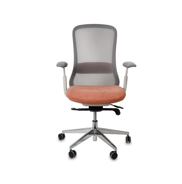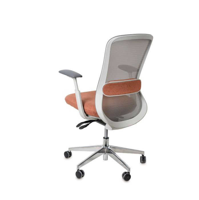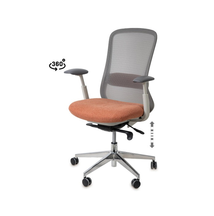 Scaun de birou cu un design profesional, structura ergonomica, spatar realizat din material textil respirabil.