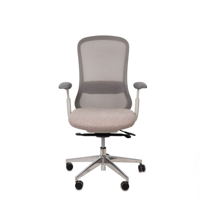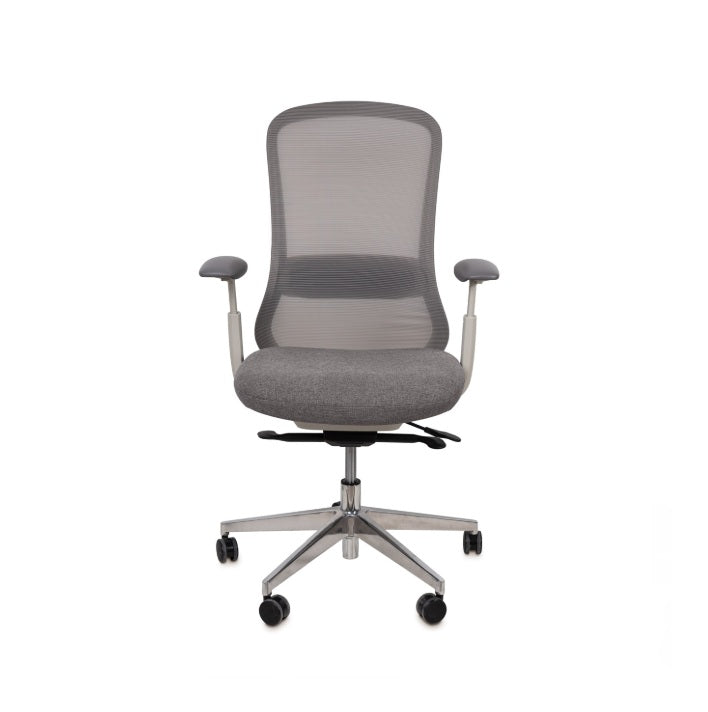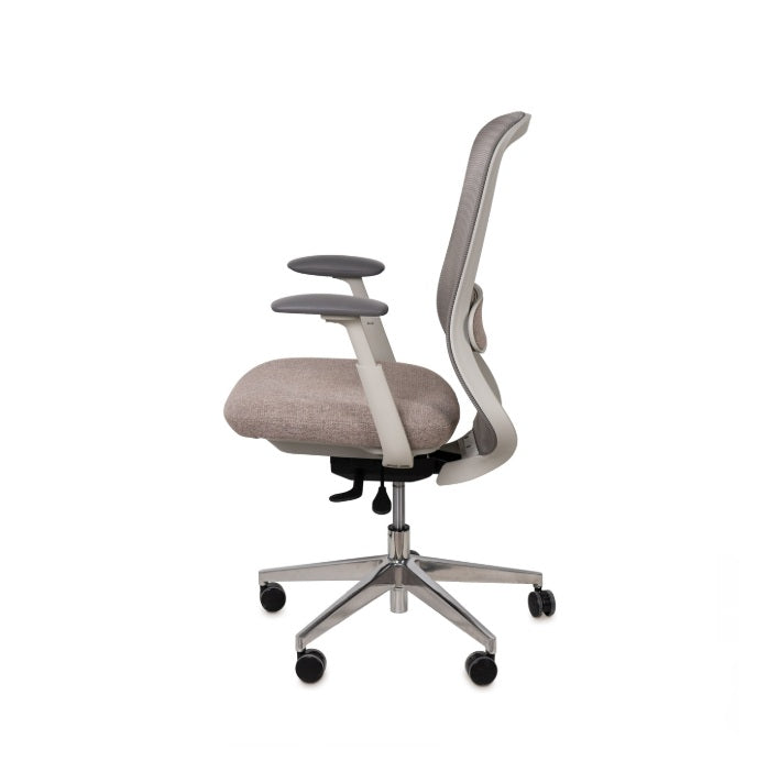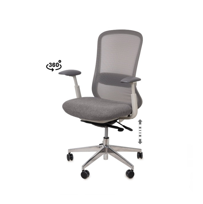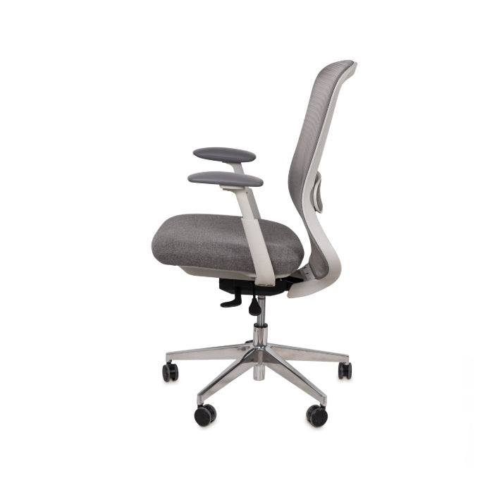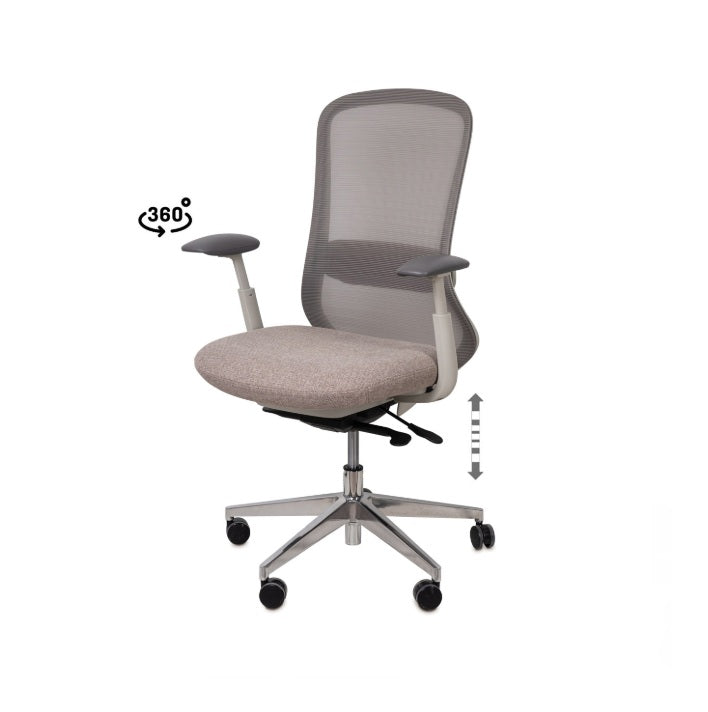 Scaun de birou cu un design profesional, structura ergonomica, spatar realizat din material textil respirabil.