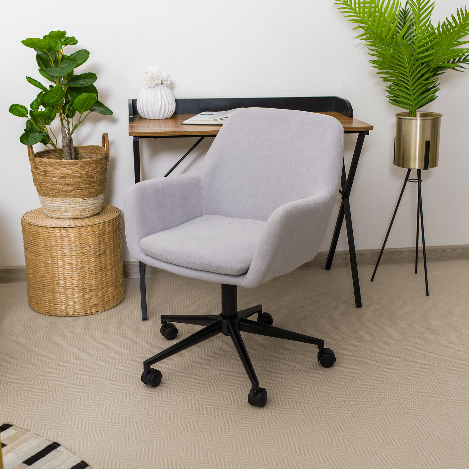 Scaun de birou din material textil, metal si plastic.