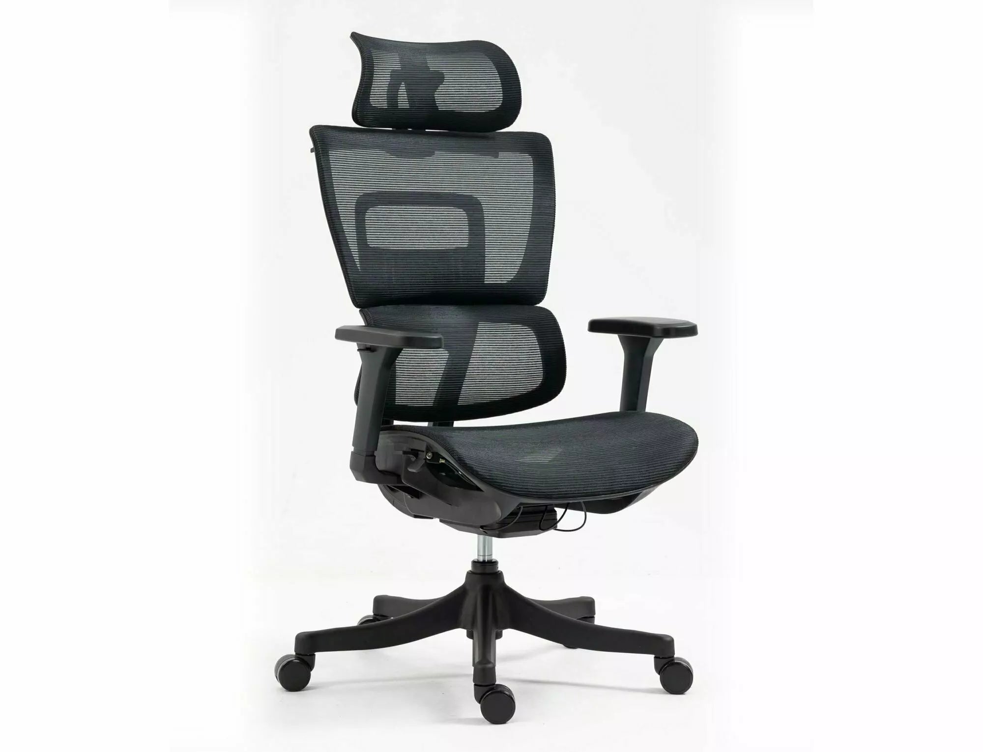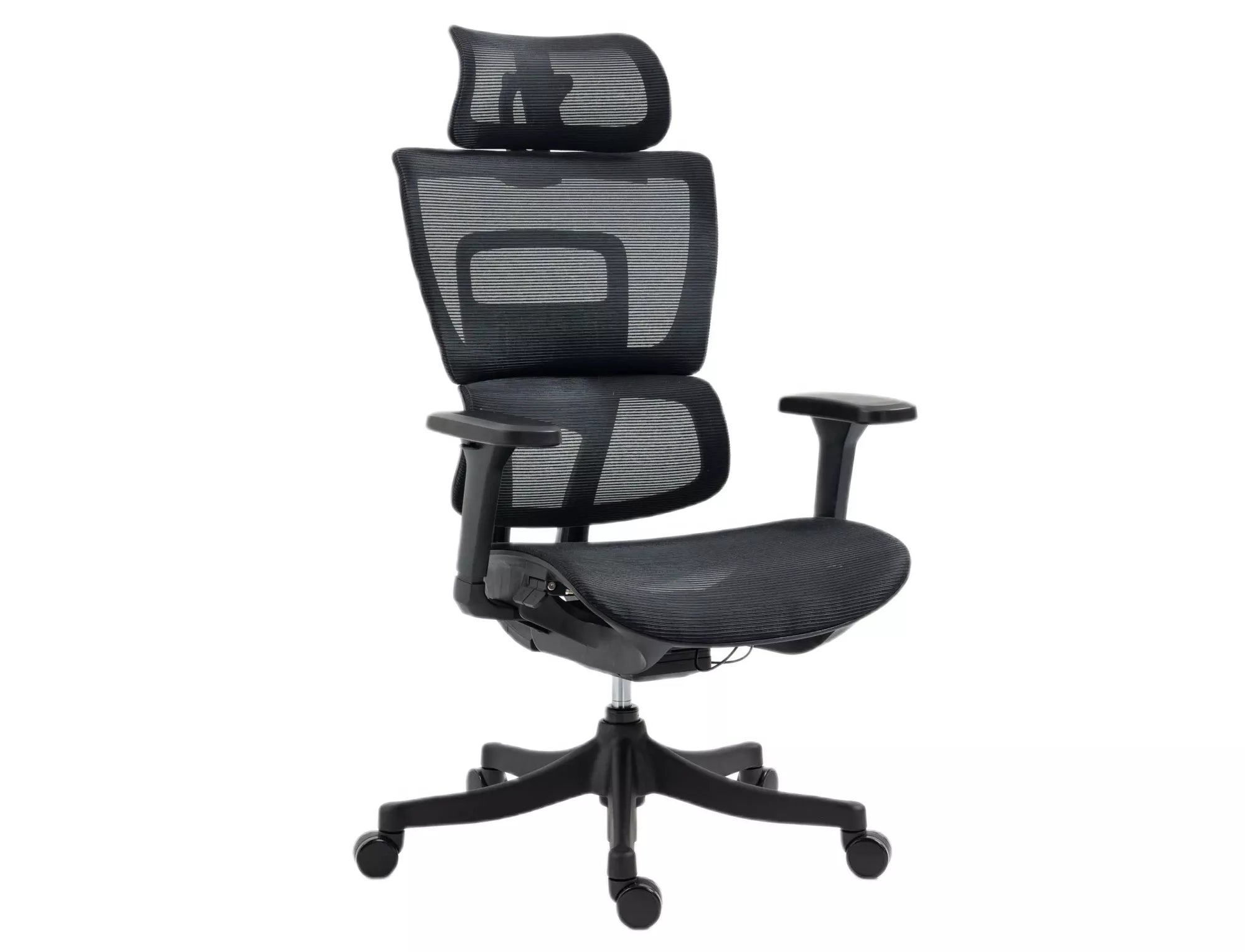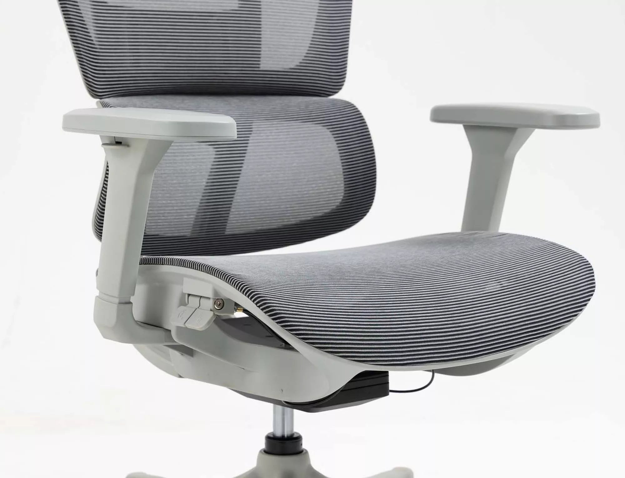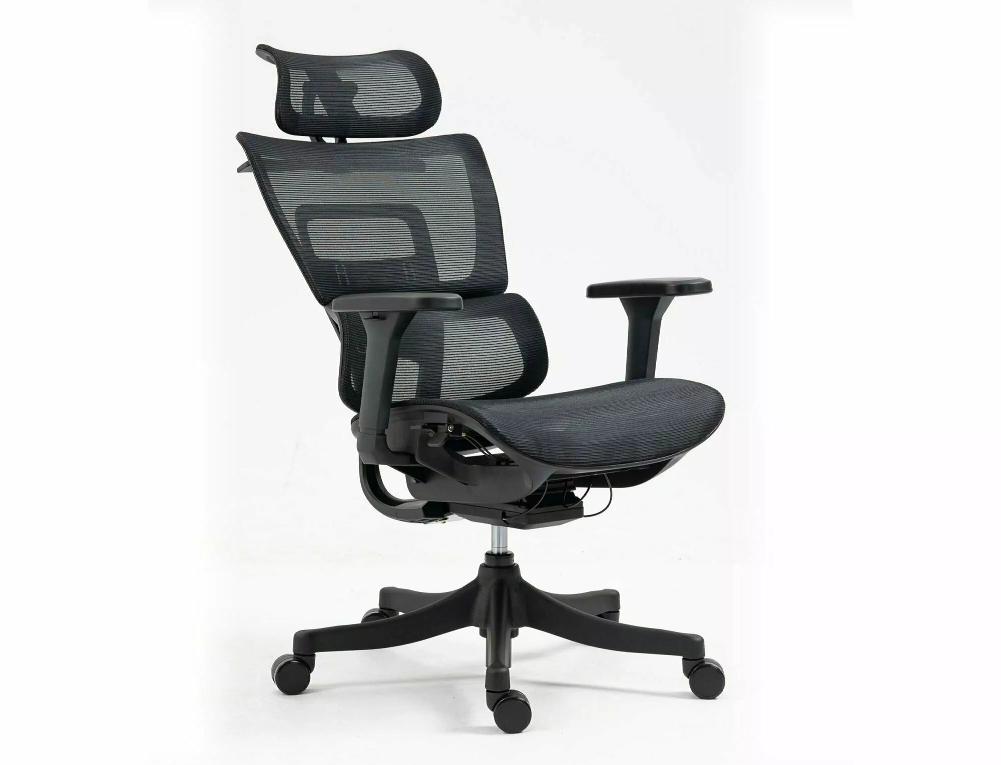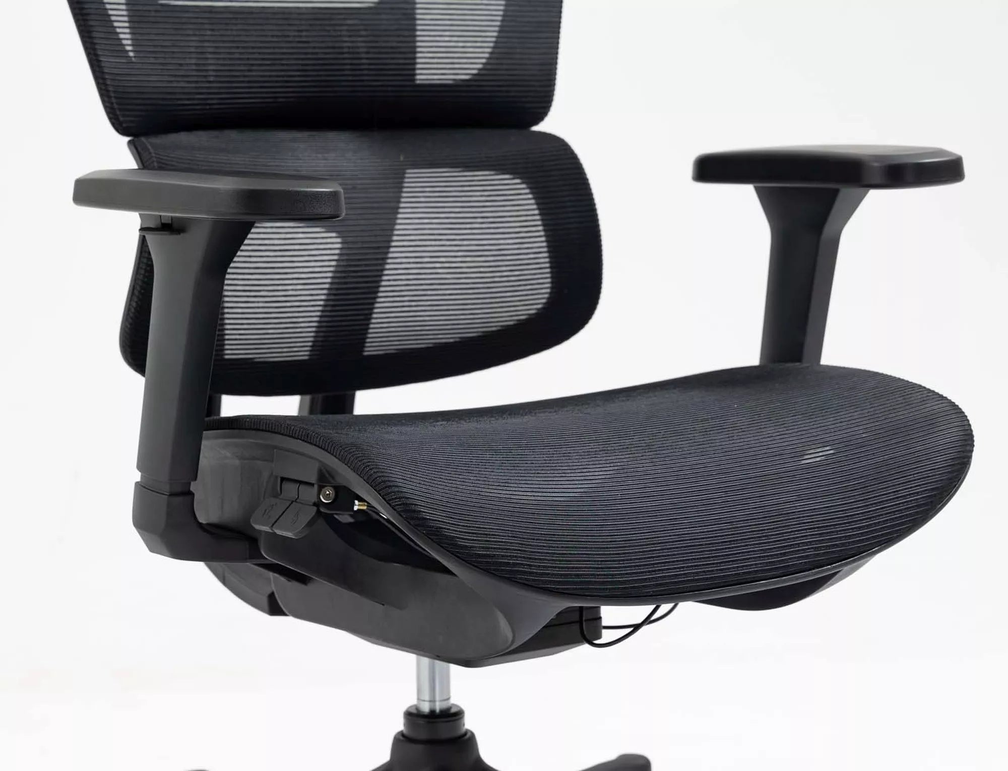 Scaun de birou ergonomic, comanda cu fir, mecanism sincron activat de greutate corporala, cotiere 4D, suport lombar si tetiera, adancime a sezutului.