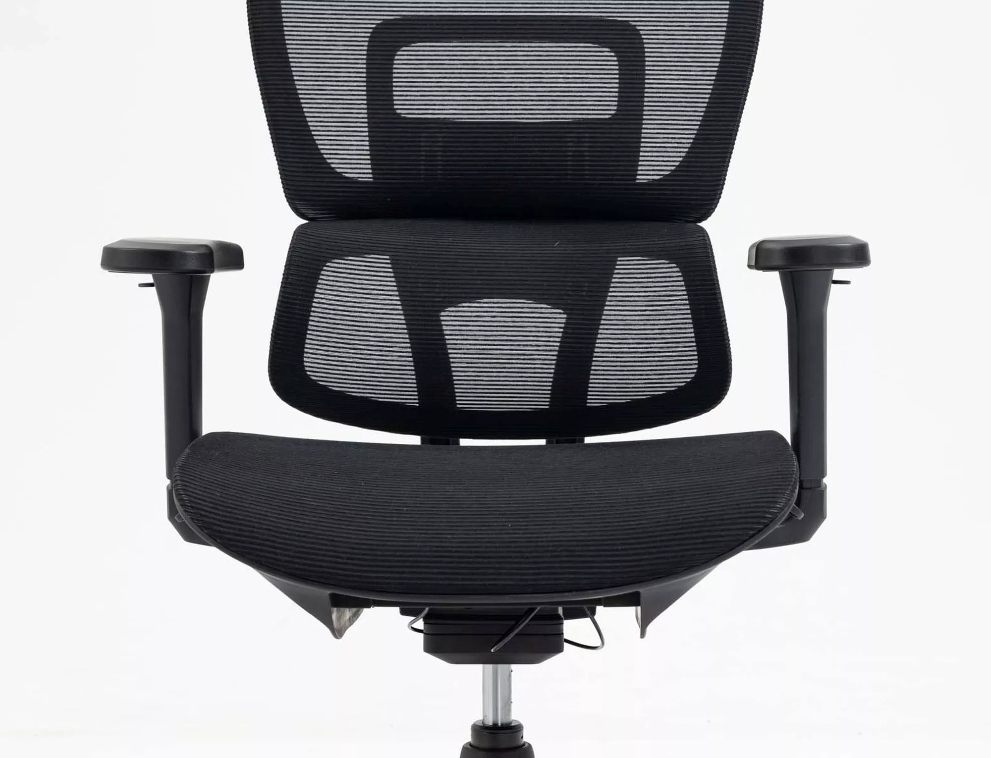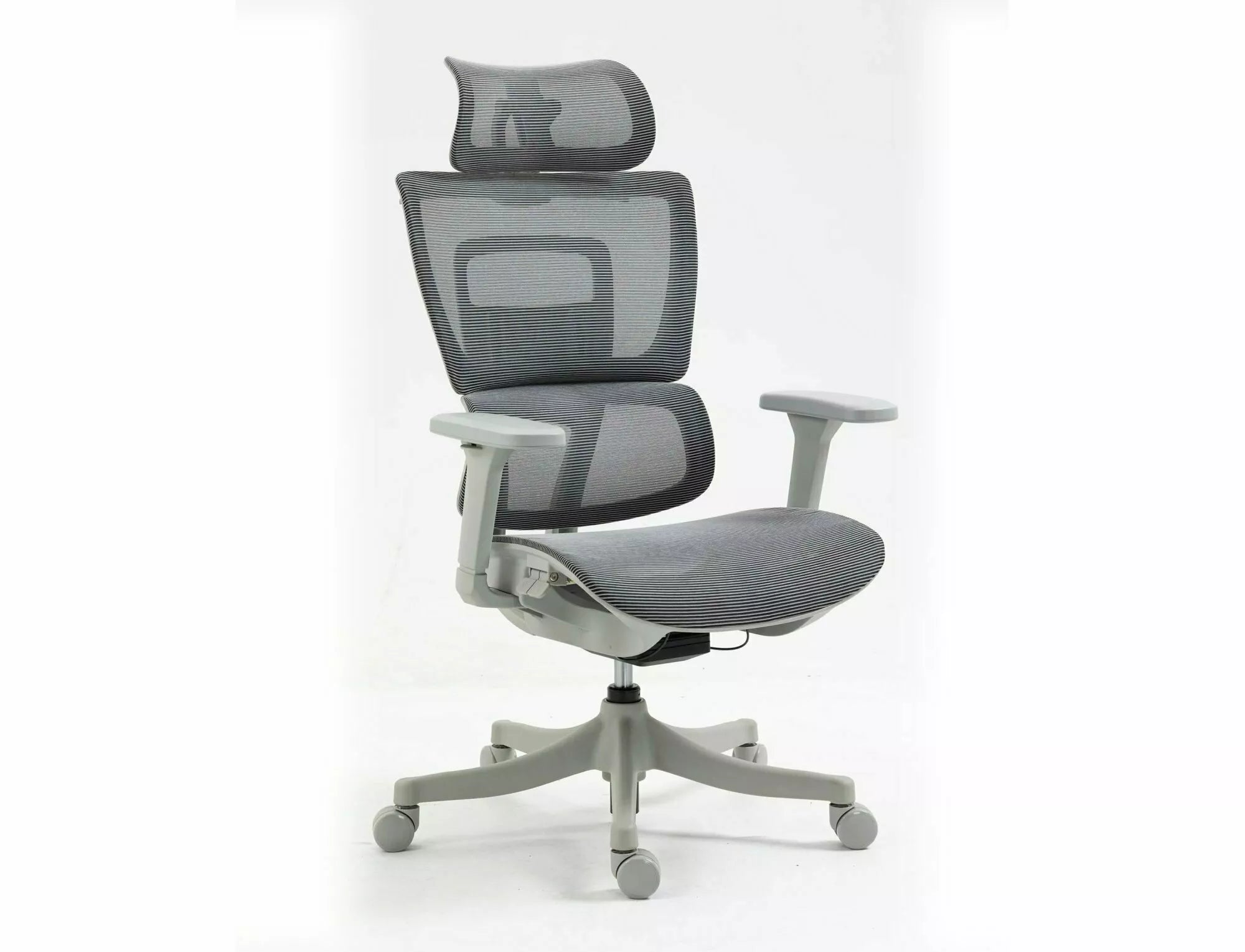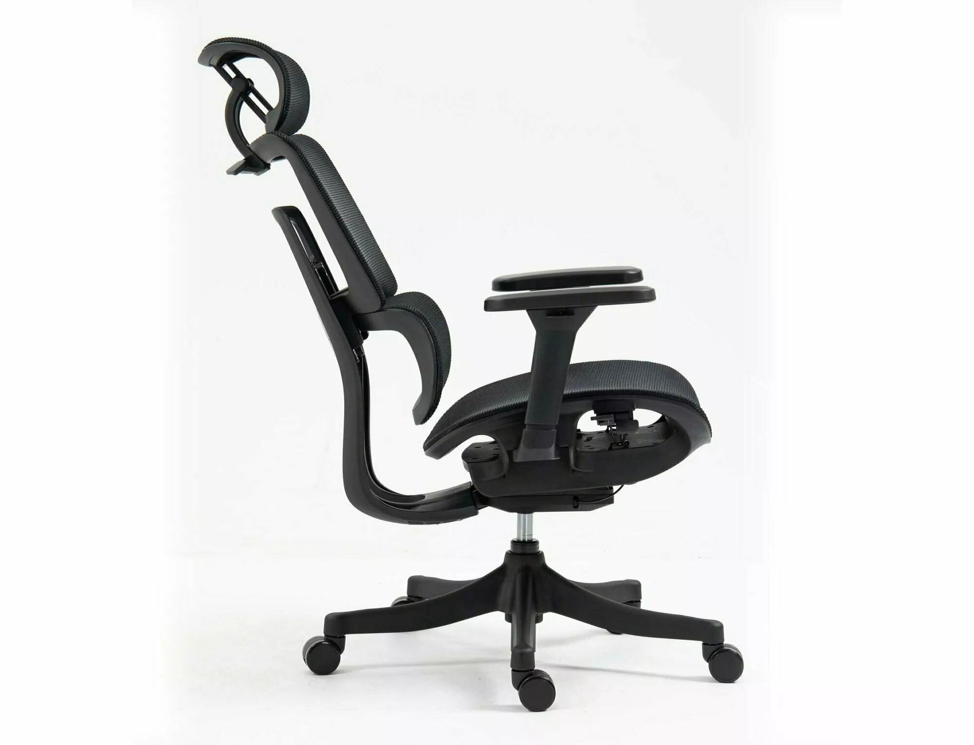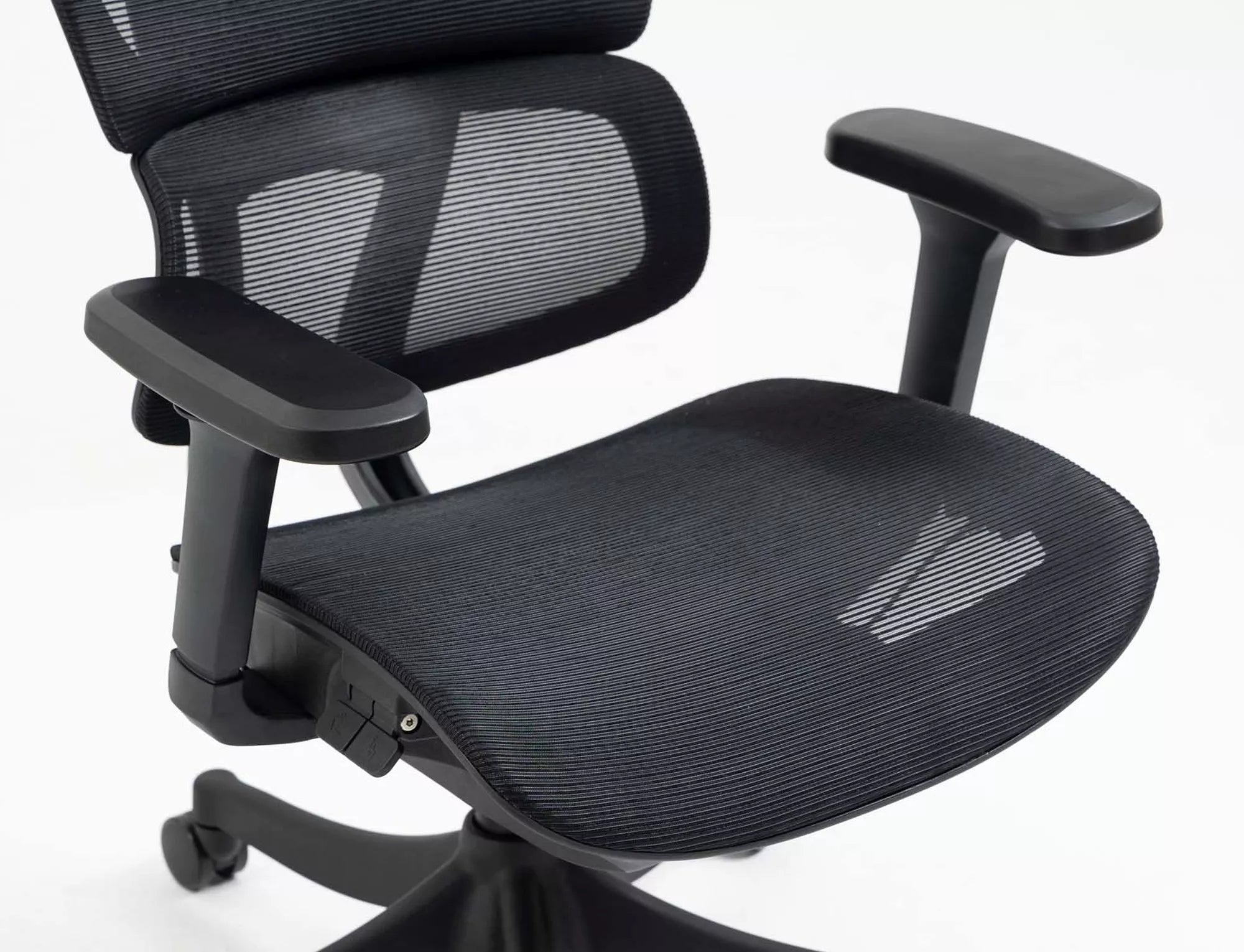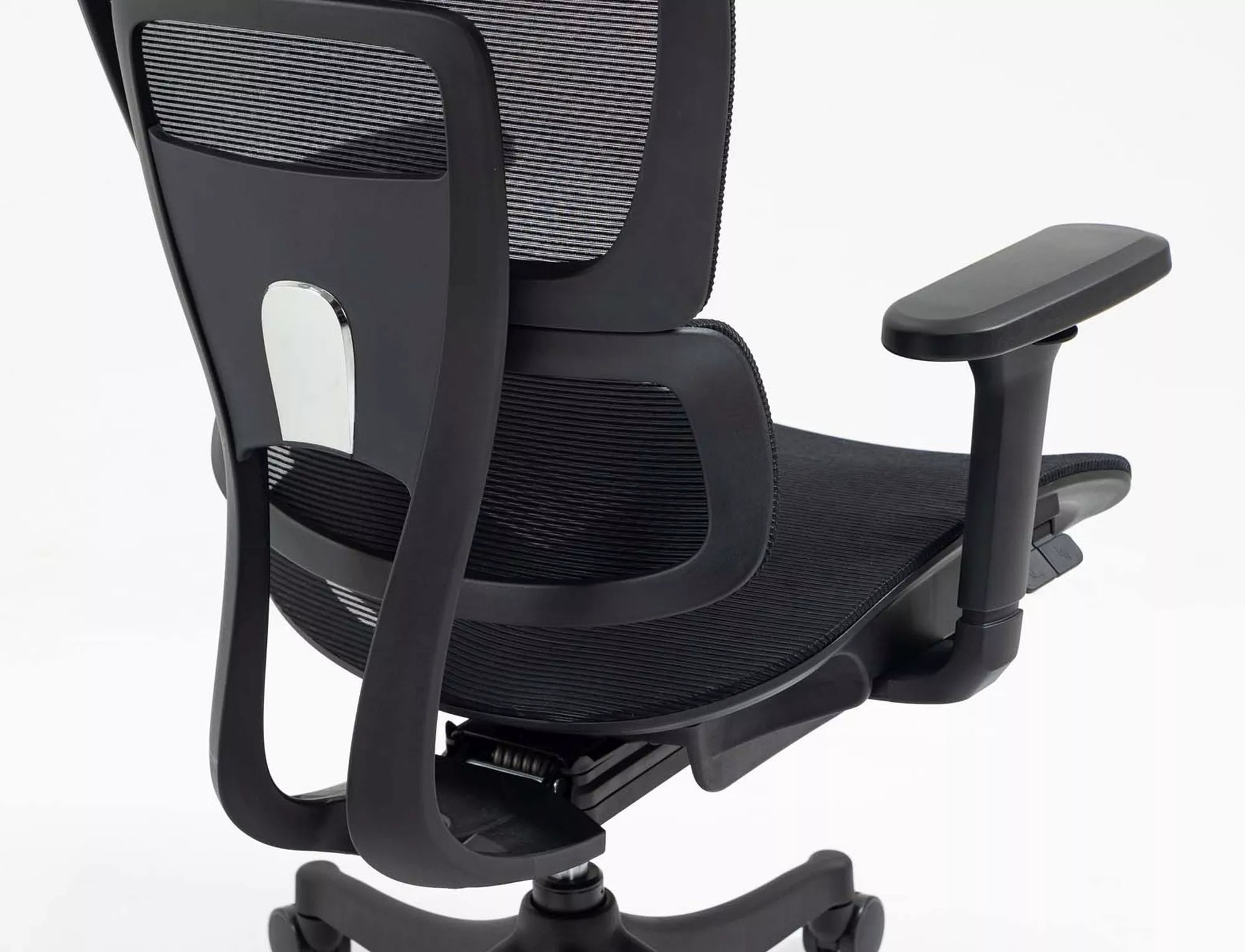 Scaun de birou ergonomic, comanda cu fir, mecanism sincron activat de greutate corporala, cotiere 4D, suport lombar si tetiera, adancime a sezutului.