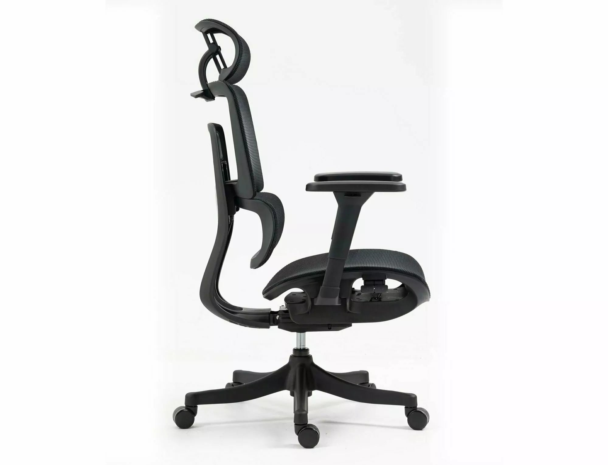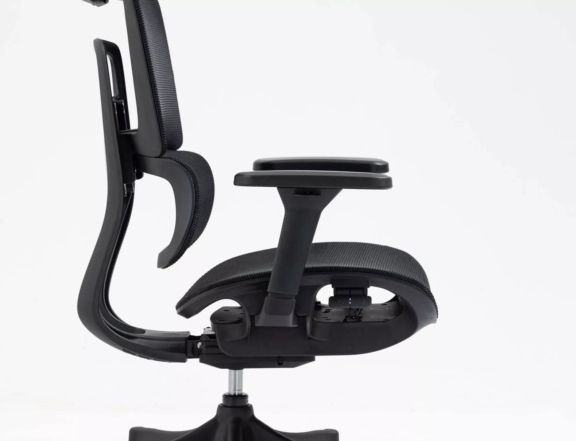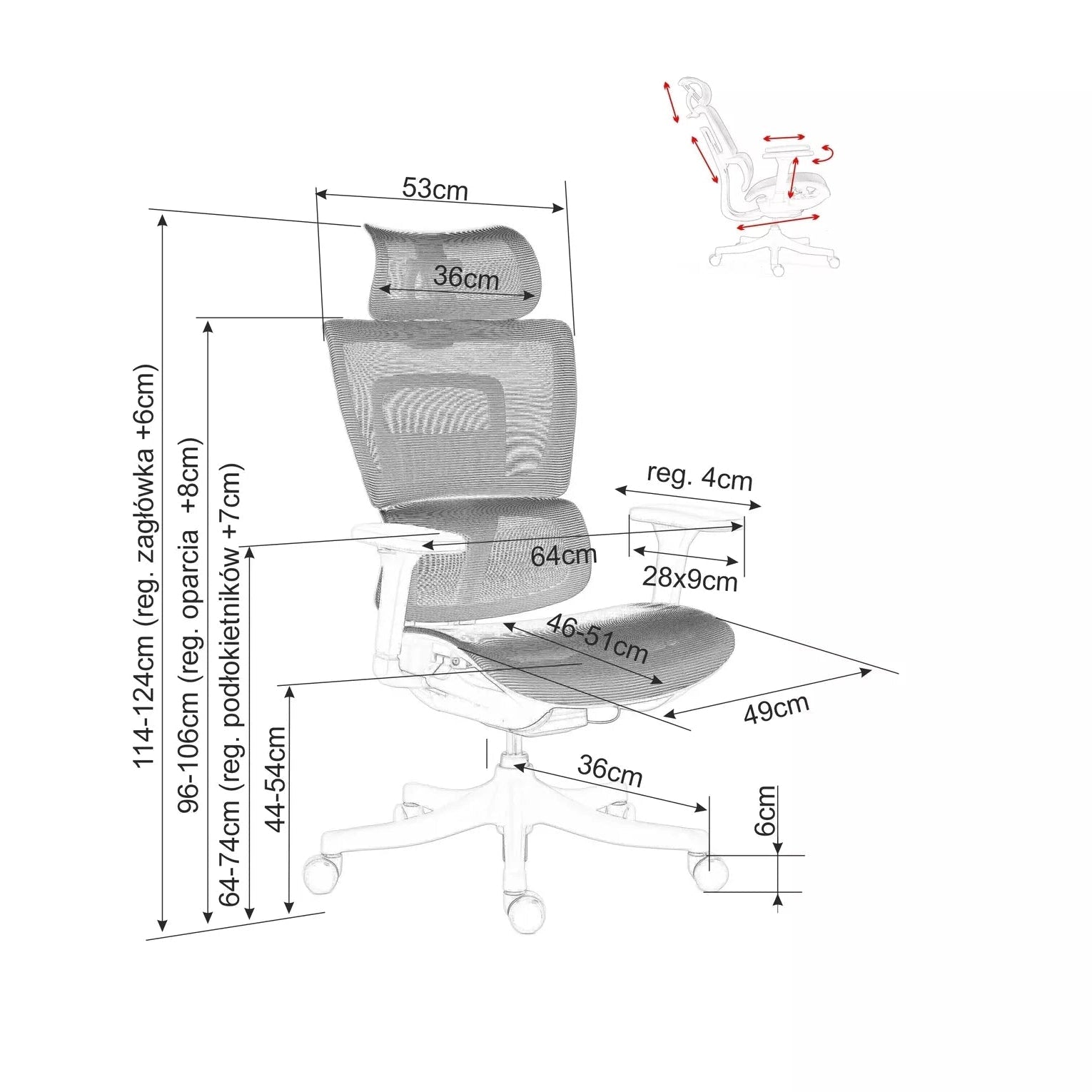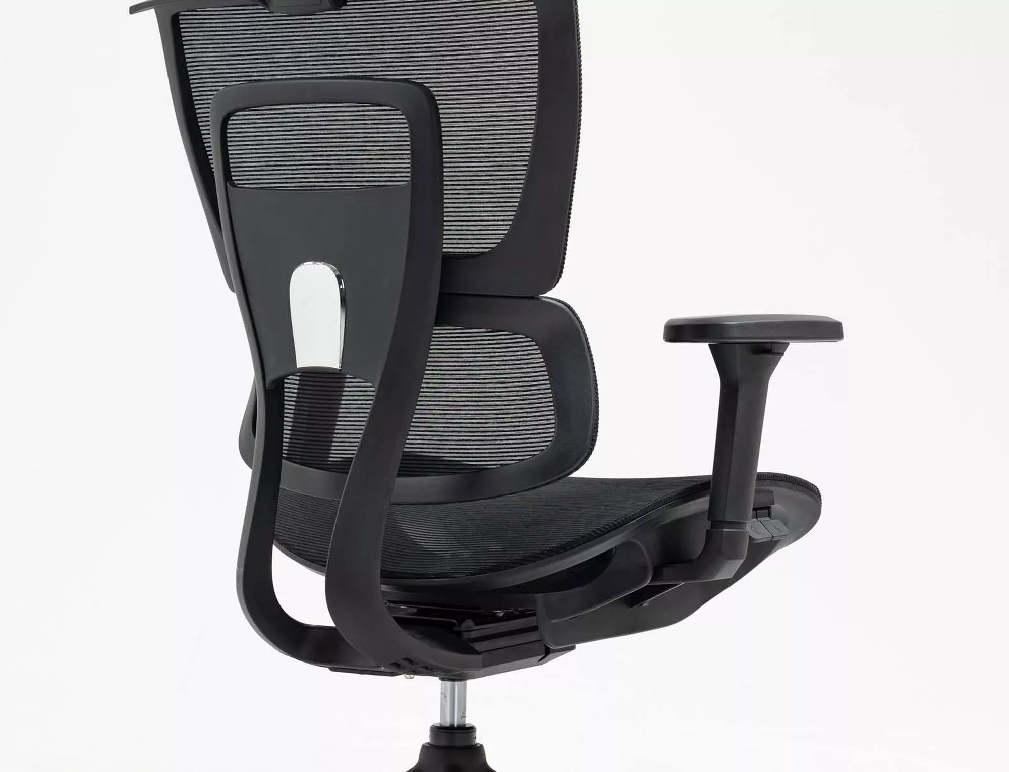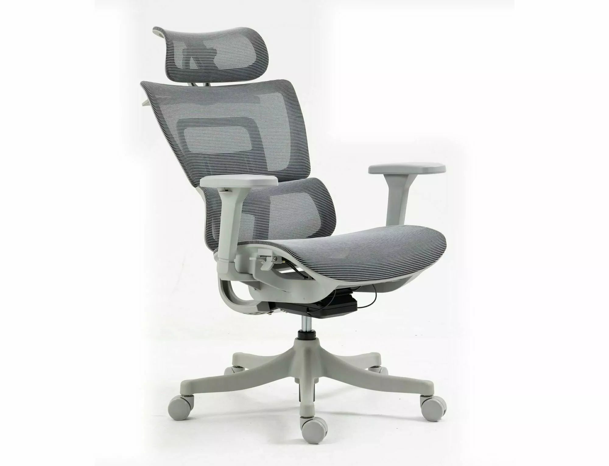 Scaun de birou ergonomic, comanda cu fir, mecanism sincron activat de greutate corporala, cotiere 4D, suport lombar si tetiera, adancime a sezutului.