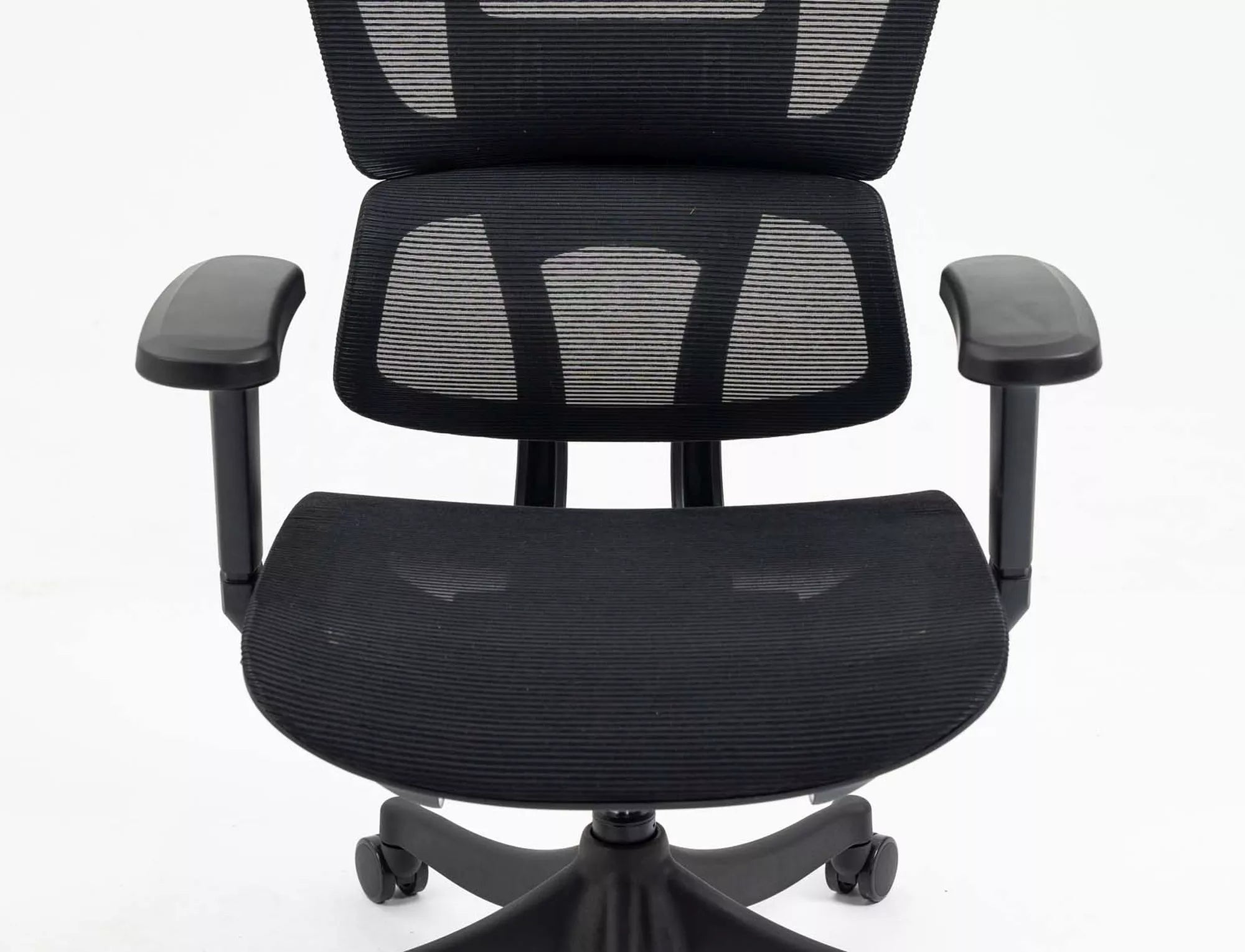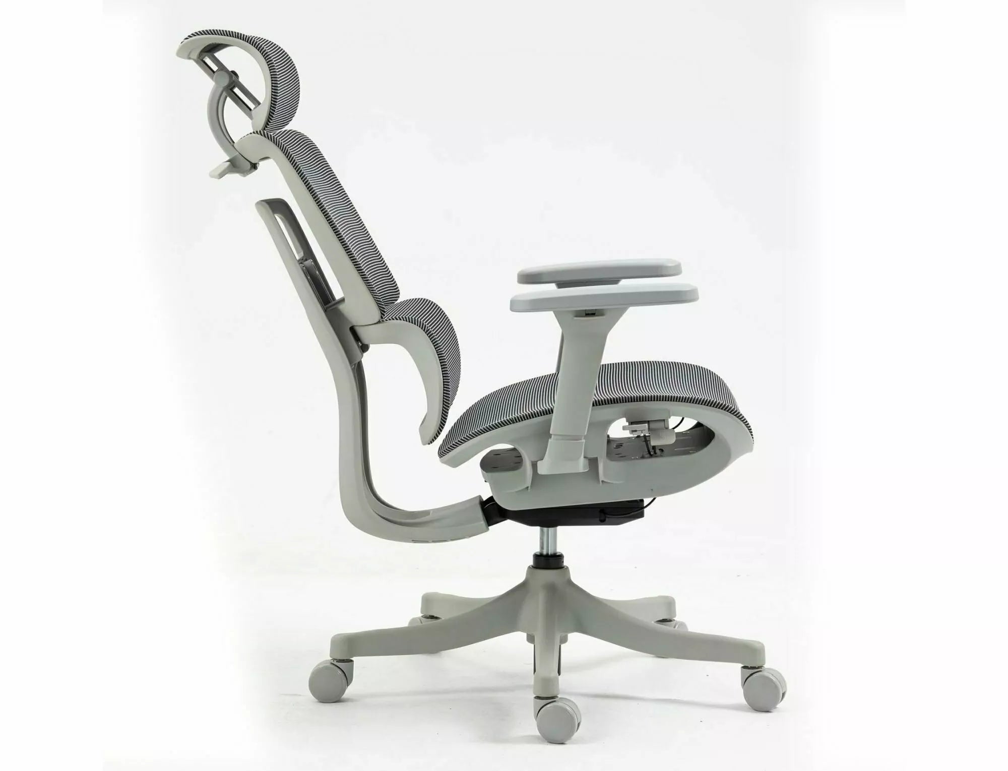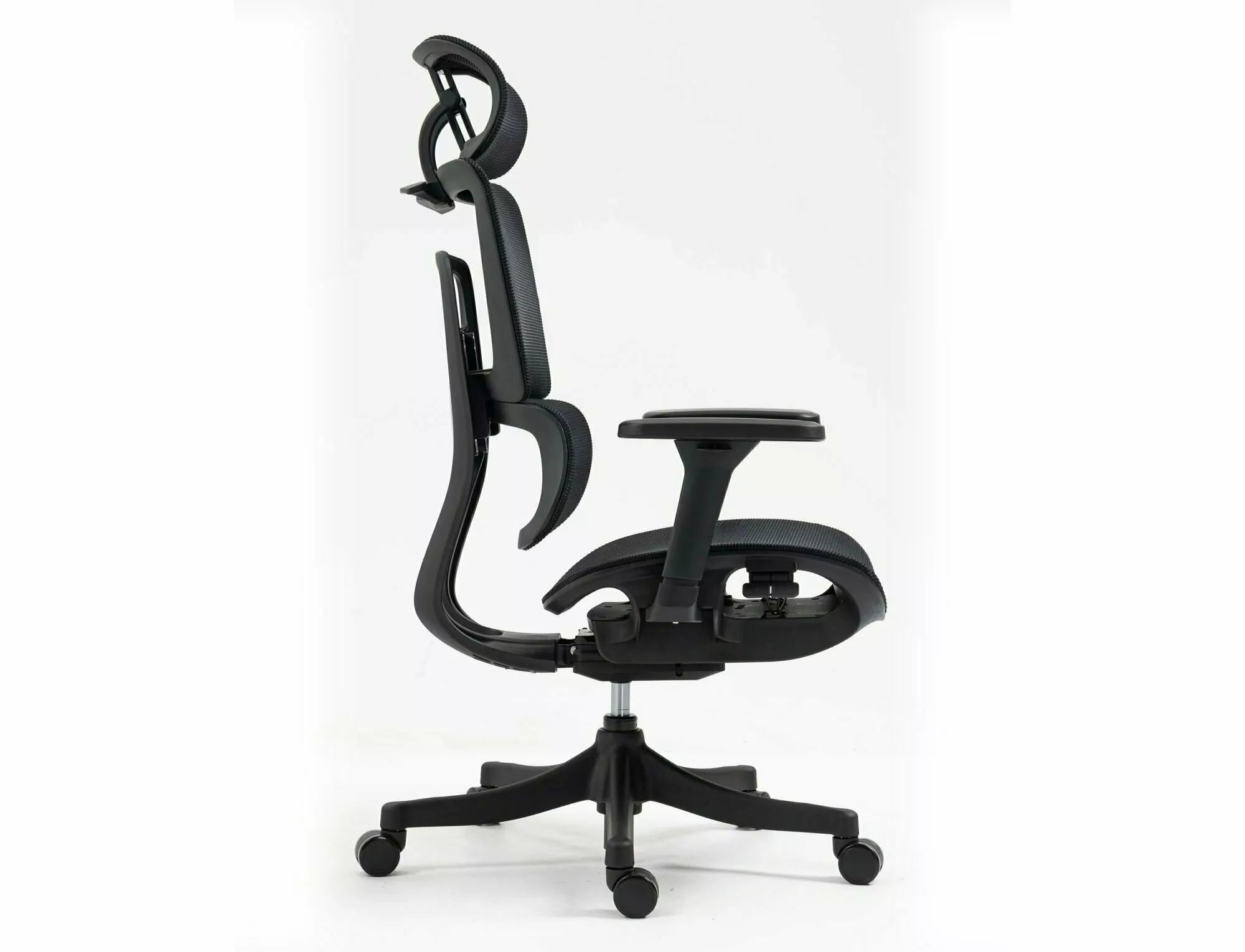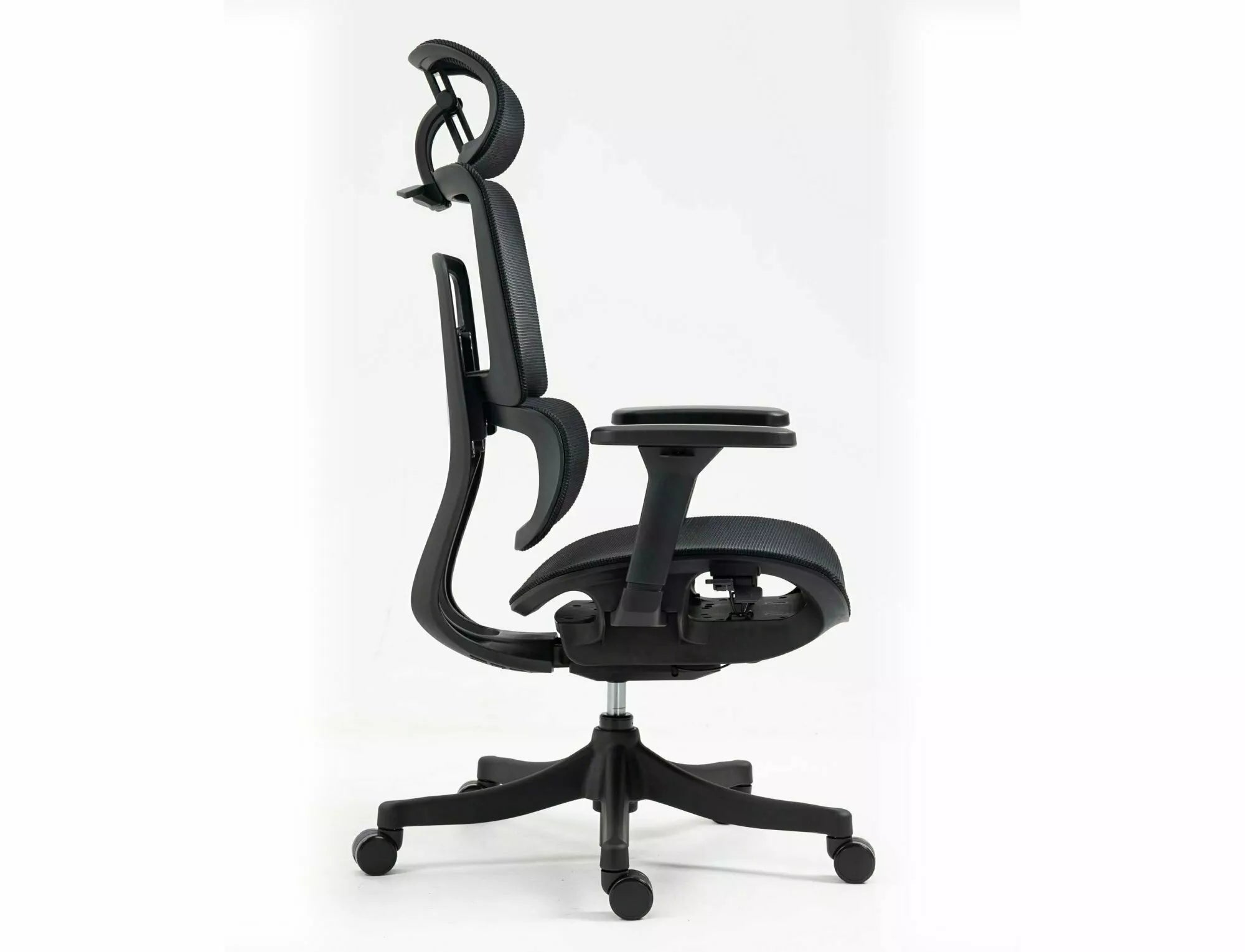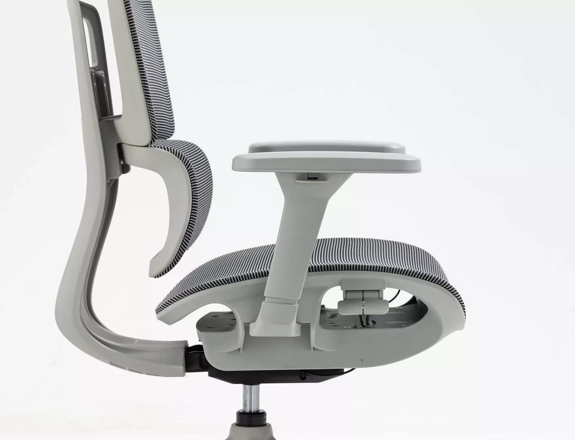 Scaun de birou ergonomic, comanda cu fir, mecanism sincron activat de greutate corporala, cotiere 4D, suport lombar si tetiera, adancime a sezutului.