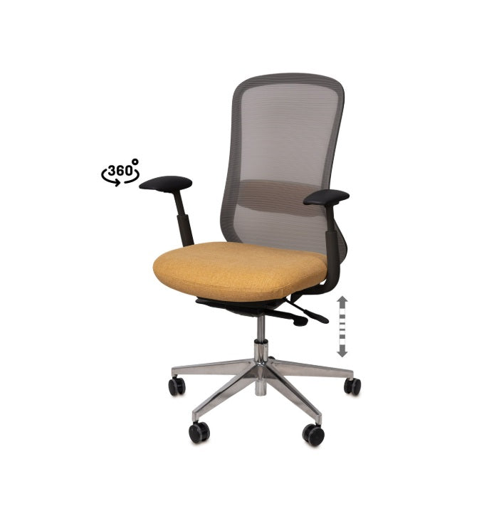 Scaun de birou cu un design profesional, structura ergonomica, spatar realizat din plasa respirabila.