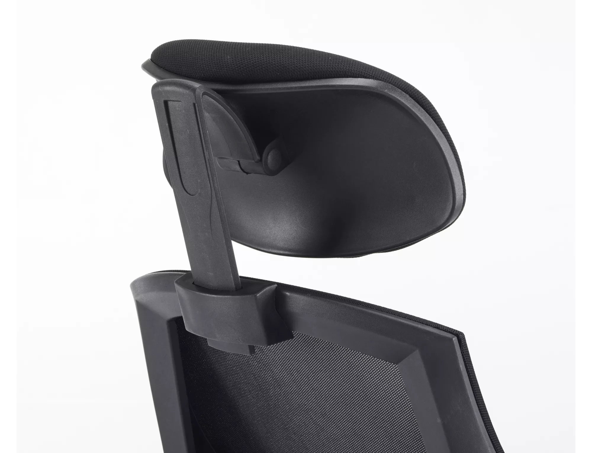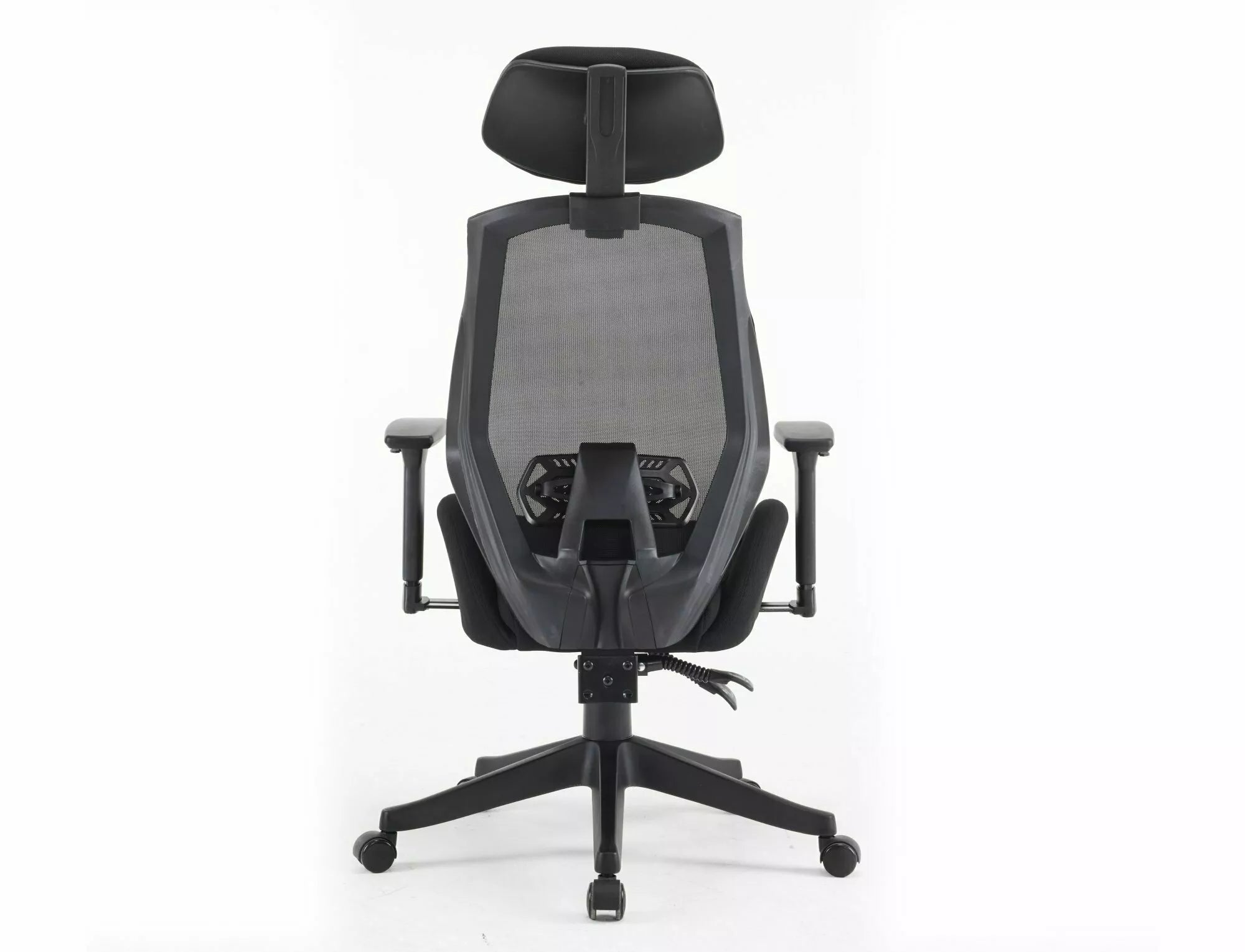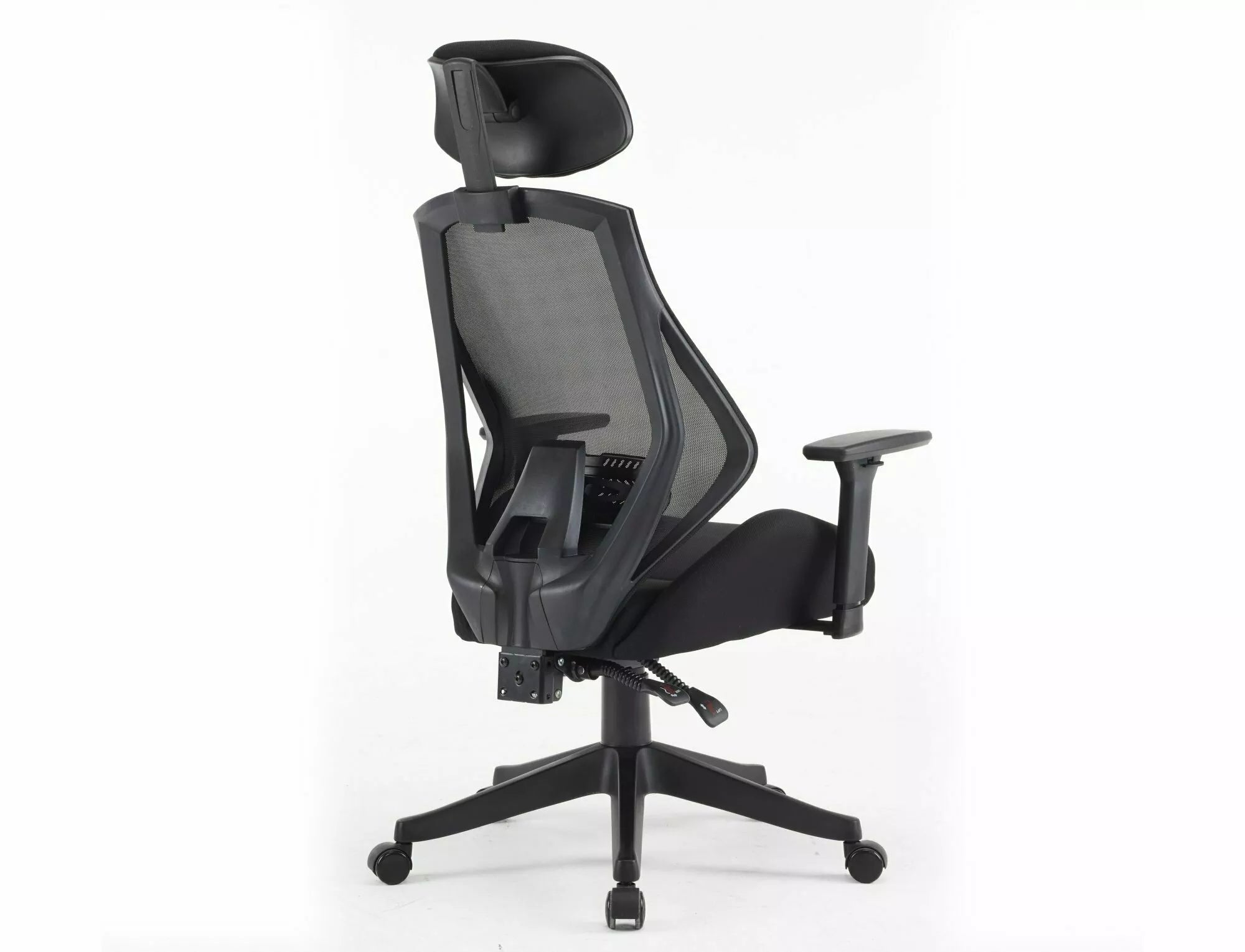 Scaun de birou ergonomic, mecanism multi-bloc, cotiere reglabile, suport lombar si tetiera reglabile.