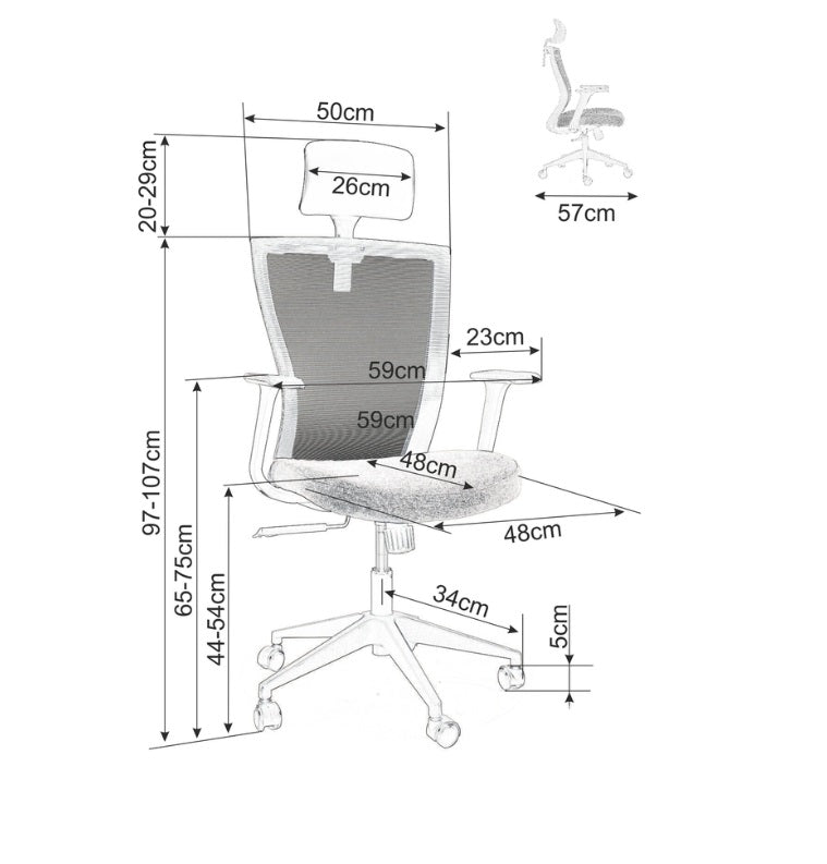 Dimensiune totala: 59 cm x 57 cm x 97/107 cm (W x D x H).