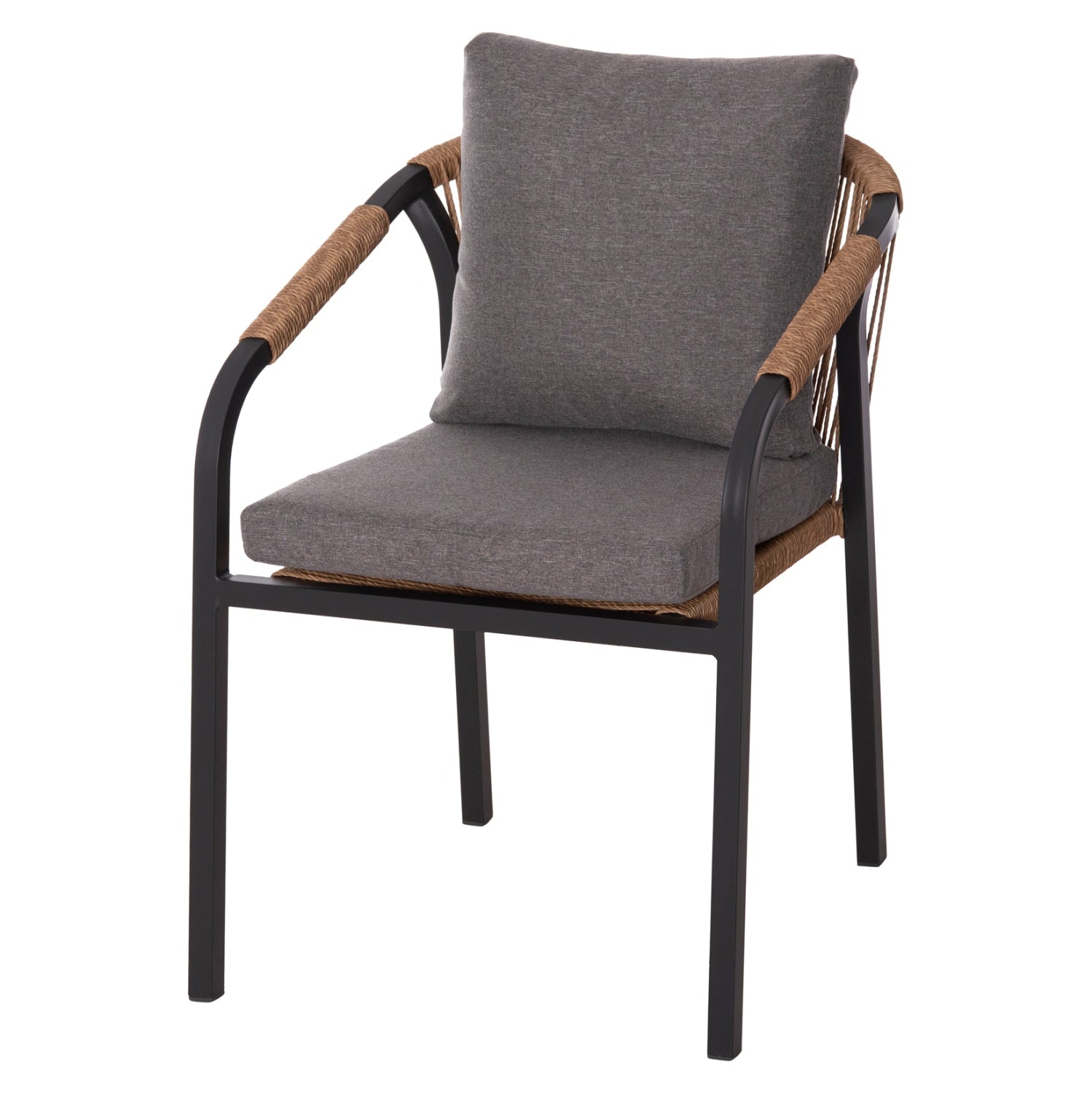 Acesta este un fotoliu frumos, cu spătar jos și șezut din ratan P.E. răsucit (frânghie sintetică).
