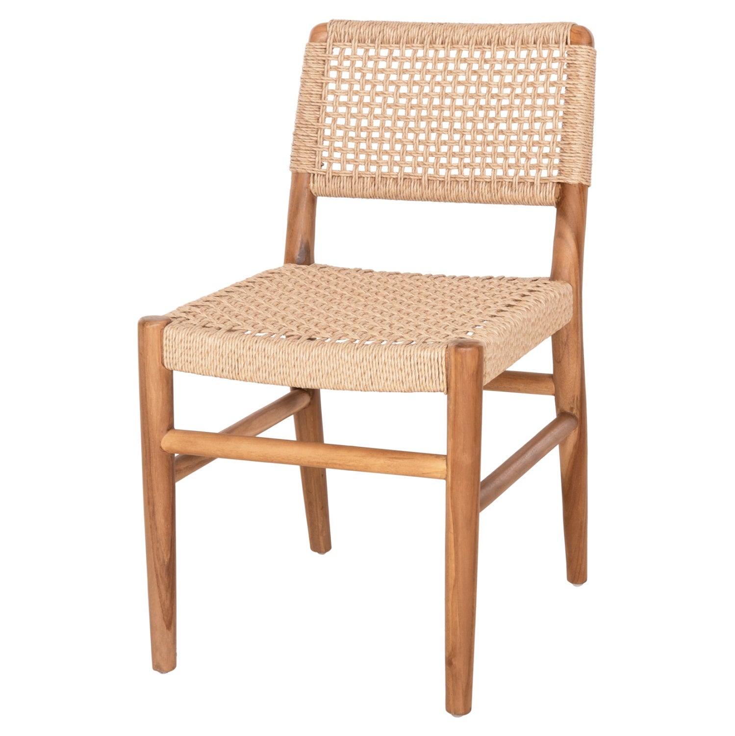 Scaun cu cadru frumos realizat din lemn masiv de tec, sezut si spatar din sfoara tricotata VIRO.