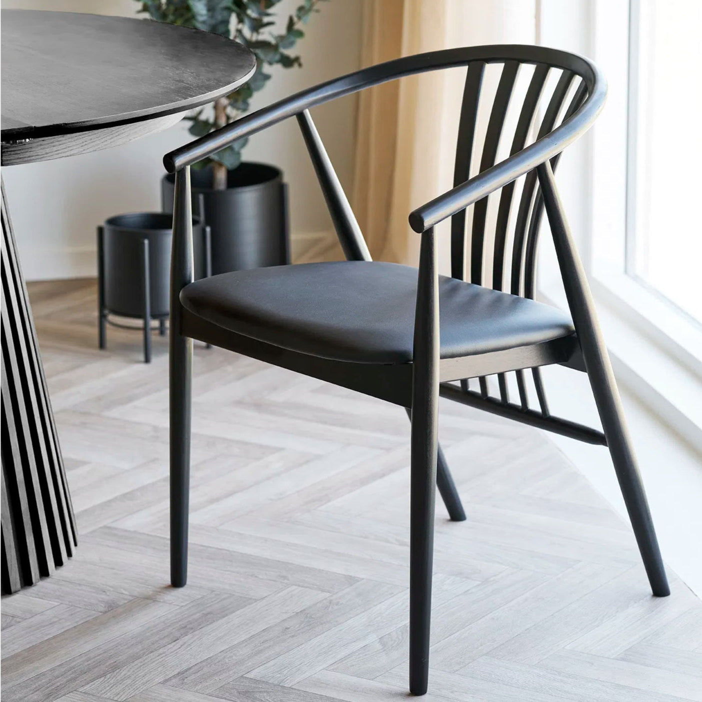 Scaun cu structura din lemn de fag, sezut din piele PU, umplutura spuma poliuretan cu densitate 25kg/m3.