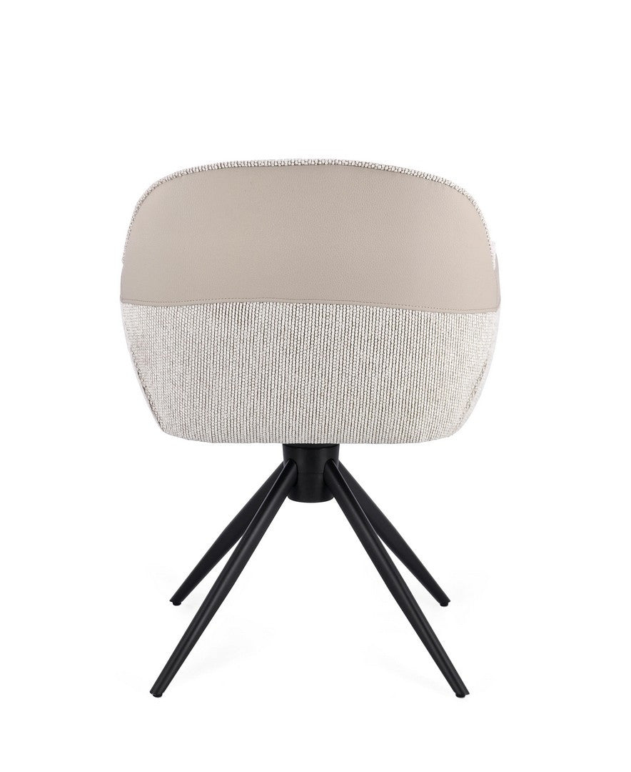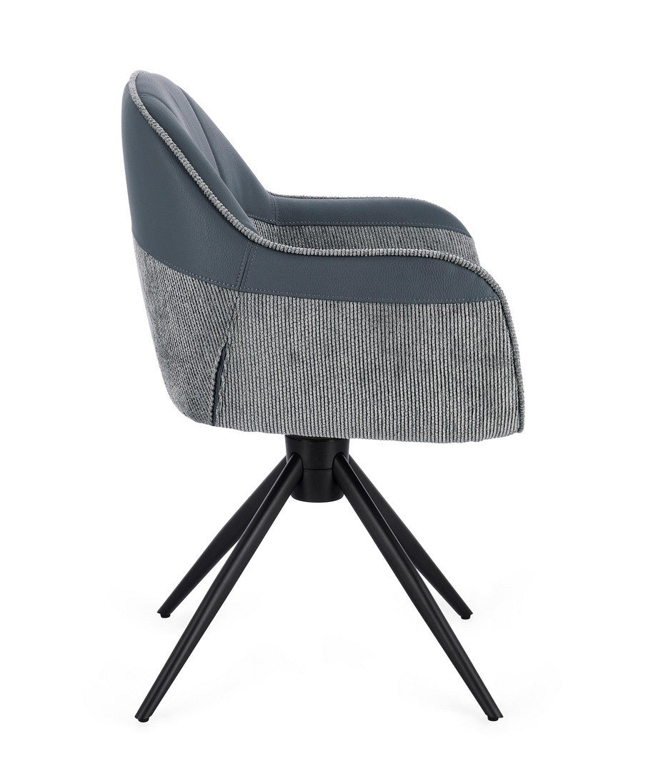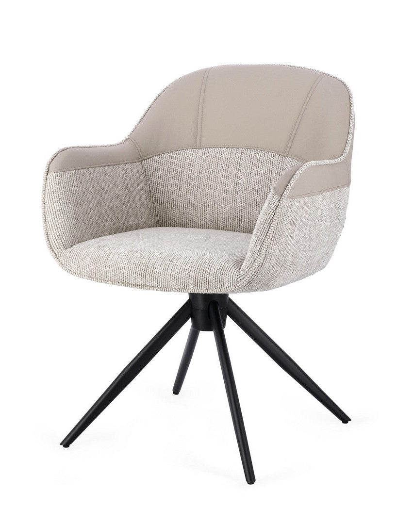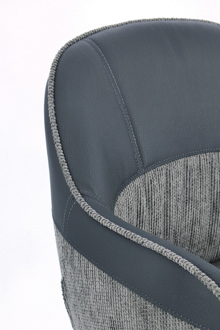 Scaun rotativ la 360°, cu cadru si picioare din otel vopsit cu pulbere epoxidica, sezut si spatar din placaj, cu tapiterie din poliester si imitatie de piele, umplutura din spuma poliuretanica.