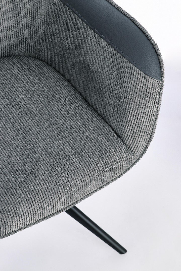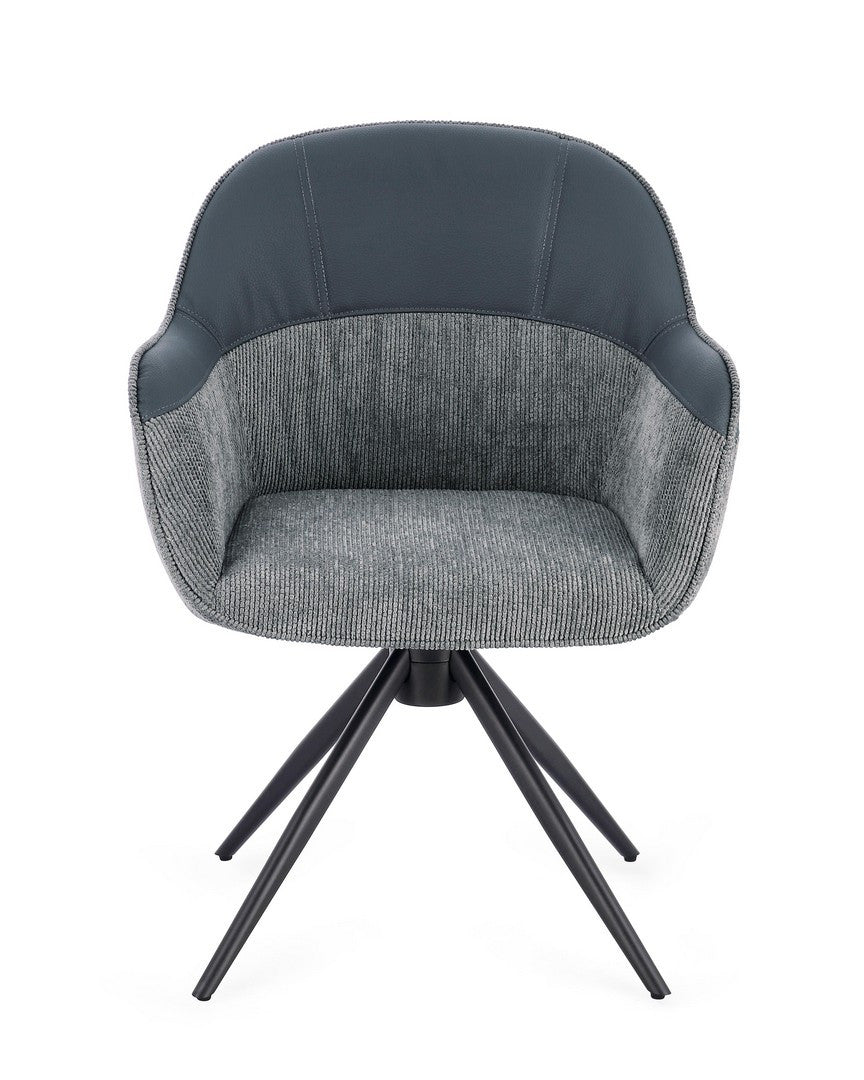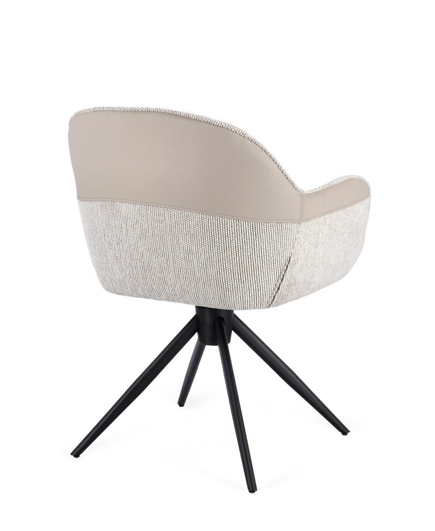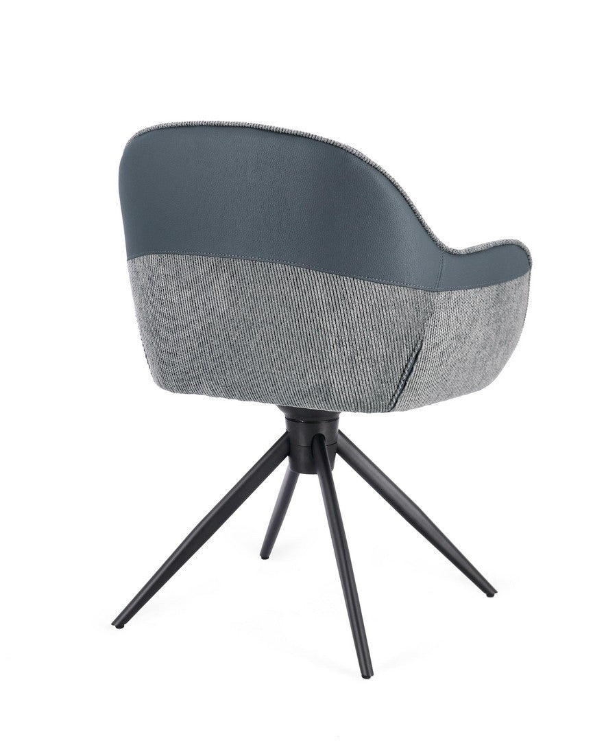 Scaun rotativ la 360°, cu cadru si picioare din otel vopsit cu pulbere epoxidica, sezut si spatar din placaj, cu tapiterie din poliester si imitatie de piele, umplutura din spuma poliuretanica.