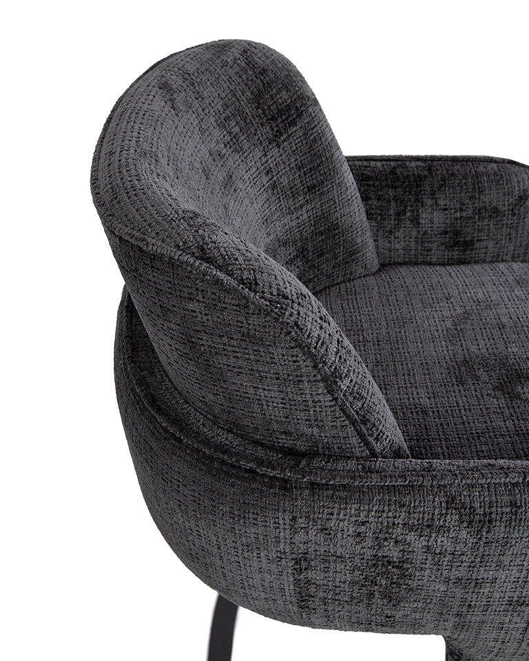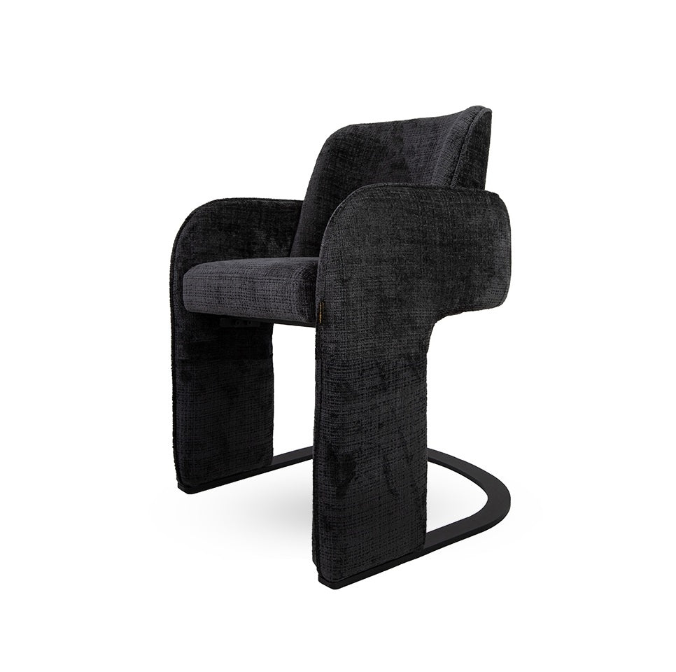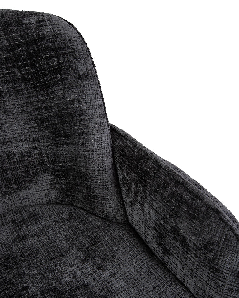 Finisat cu țesătură Davis Cremona 97 în negru intens, scaunul conferă eleganță și rafinament.