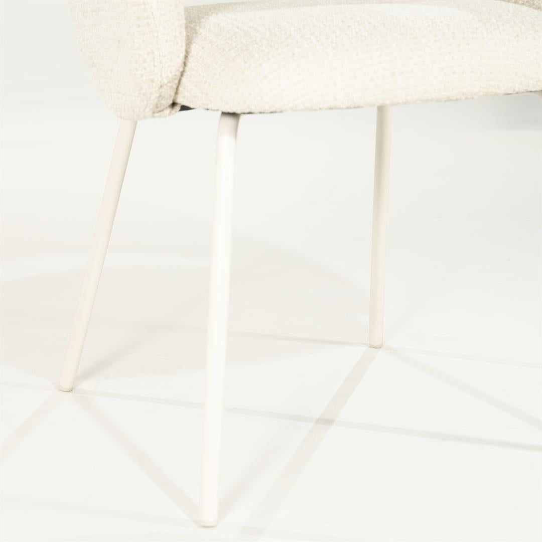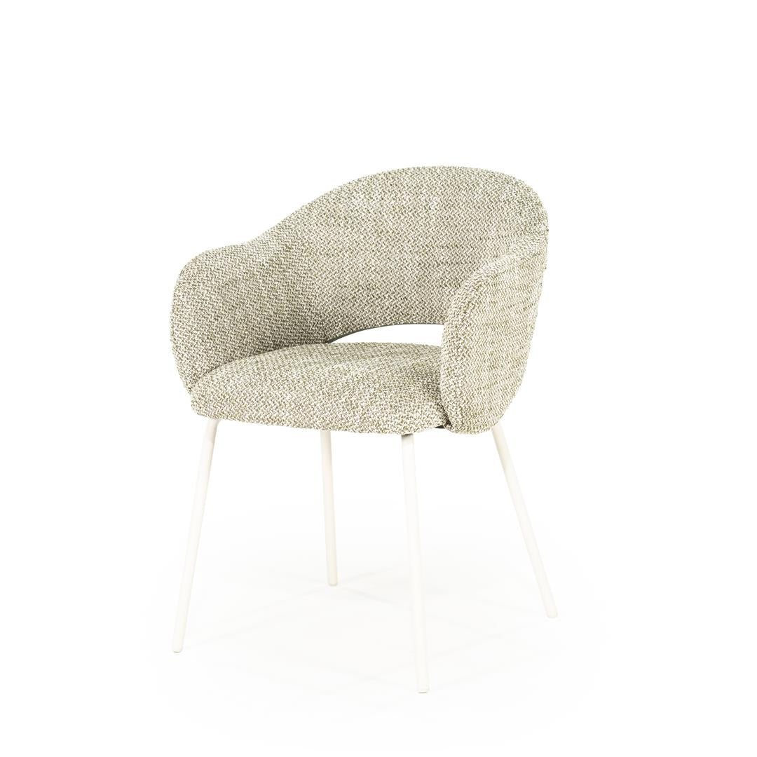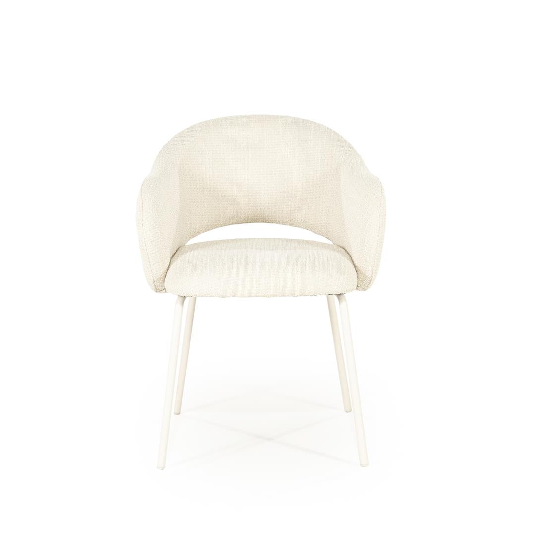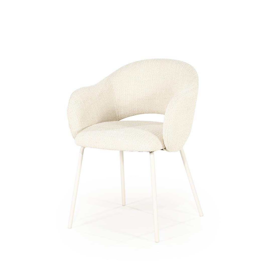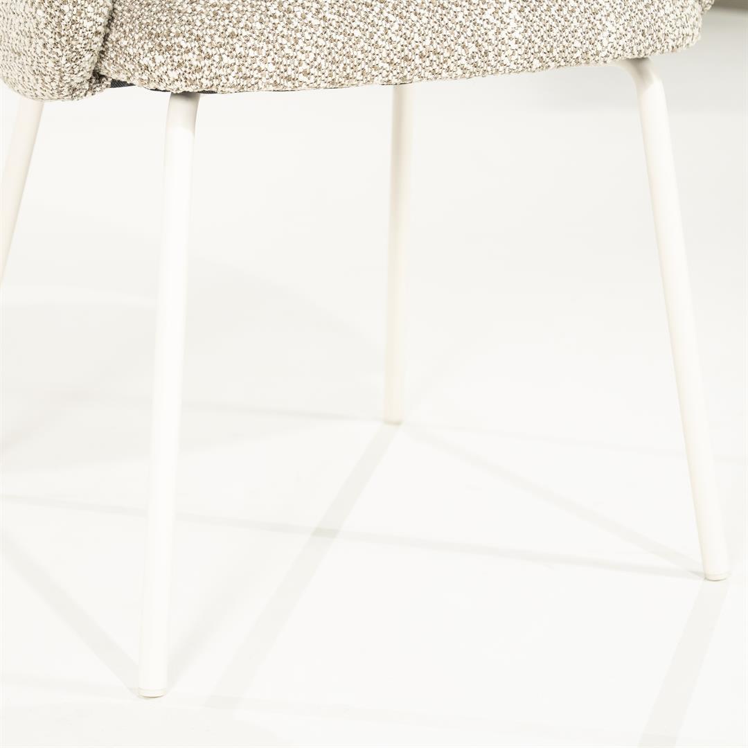 Scaun modern din metal, umplutura cu spuma si tapiterie din material textil.