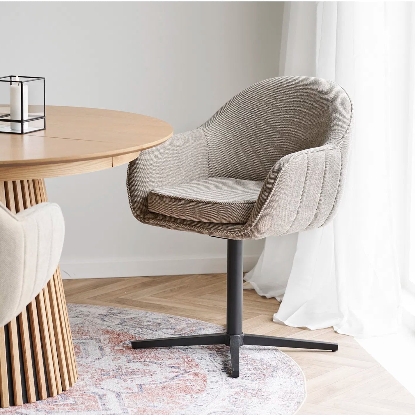 Scaun rotativ cu cadru din metal (otel), placaj si tapitat cu material textil poliester 100%, umplutura spuma poliuretan.