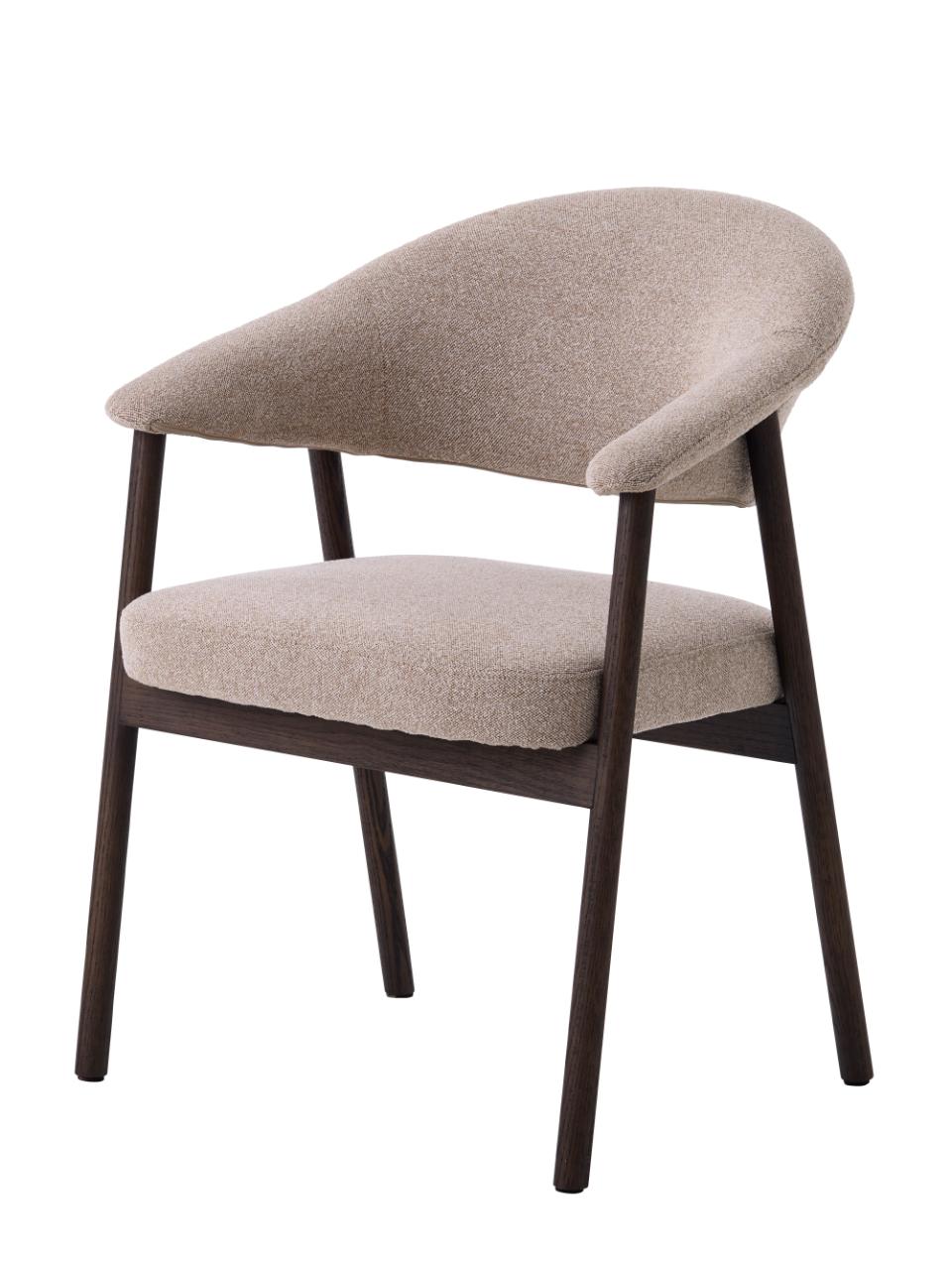 Scaun cu tapiterie din 100% poliester tip LAKE, picioare din stejar culoare maro inchis.
