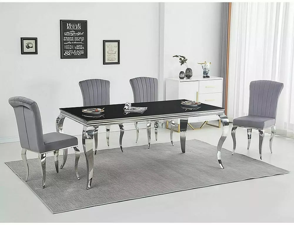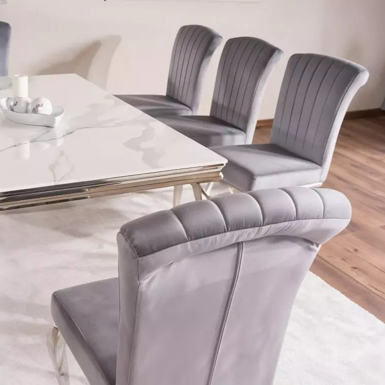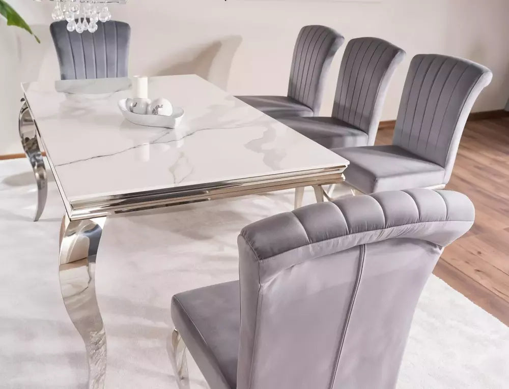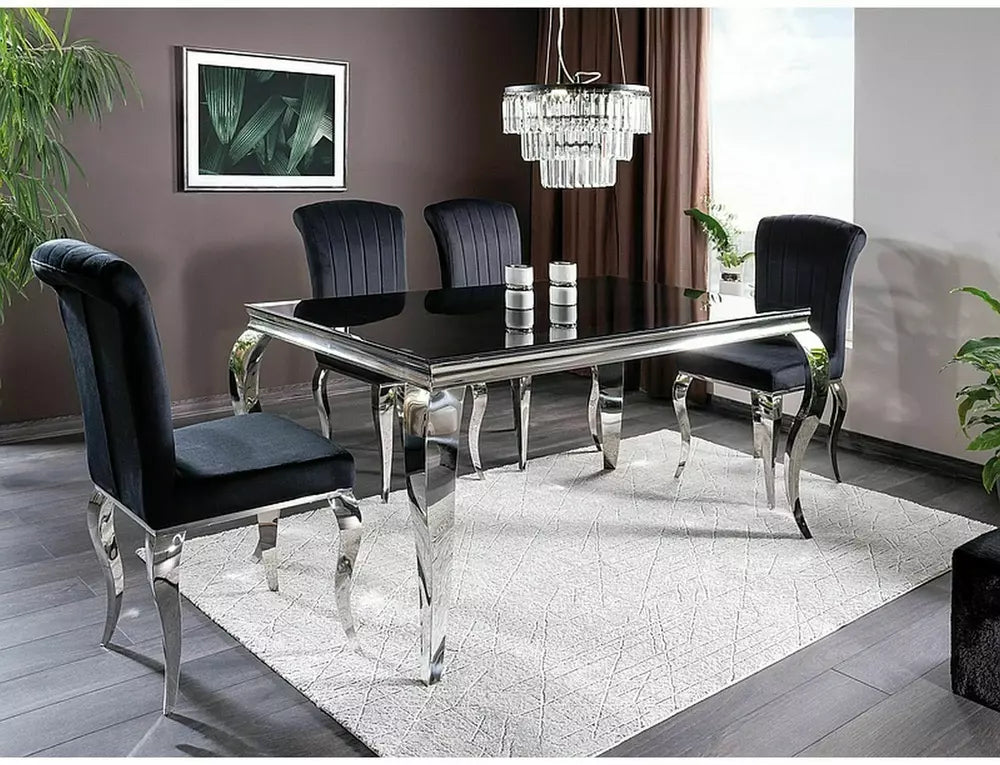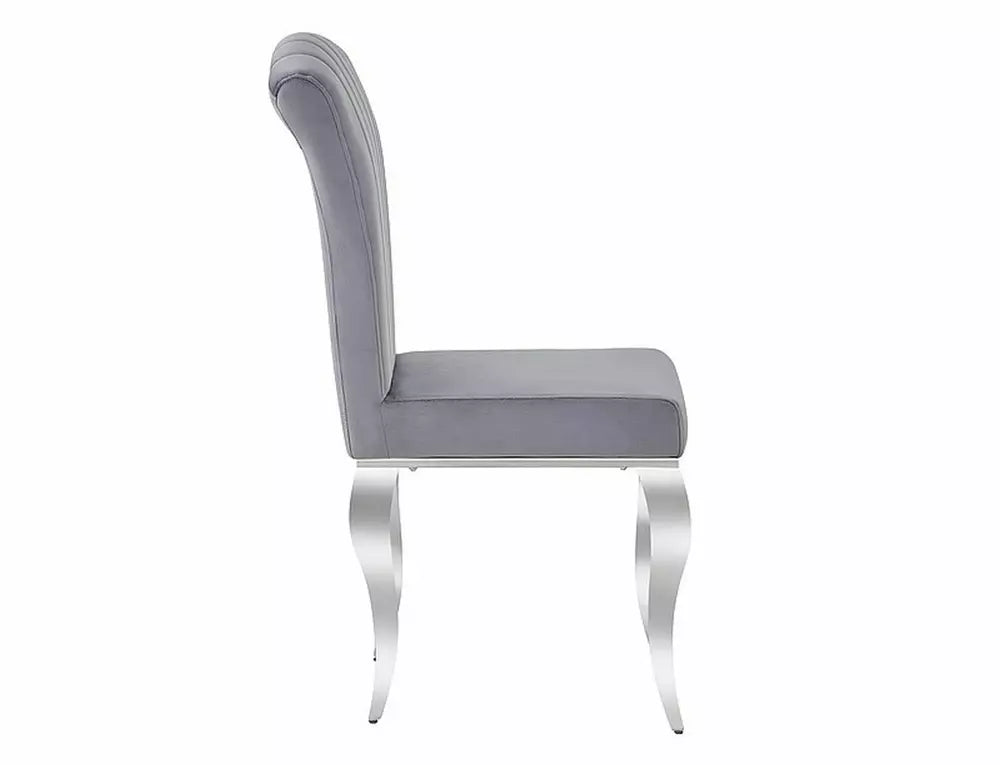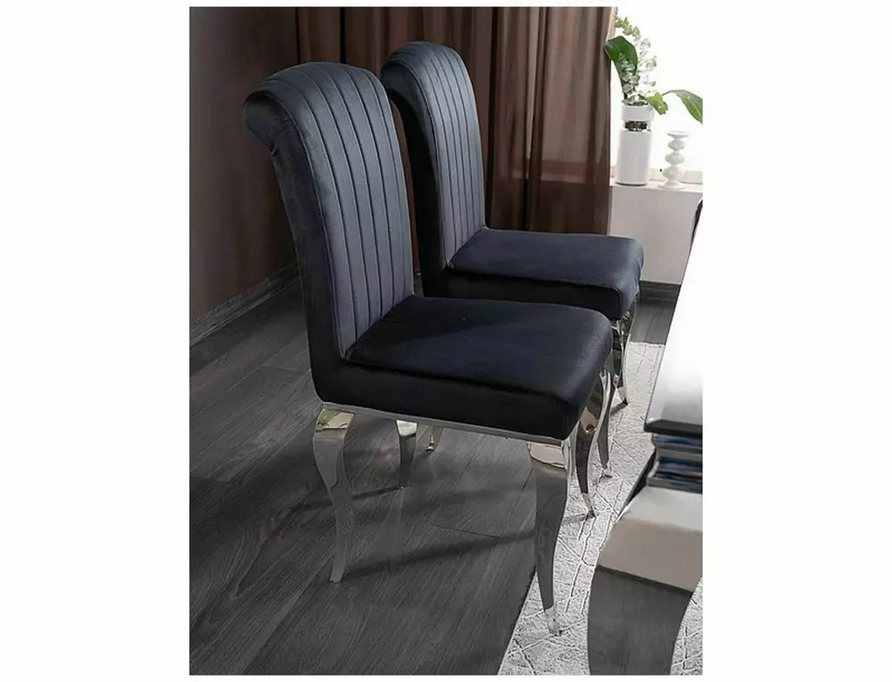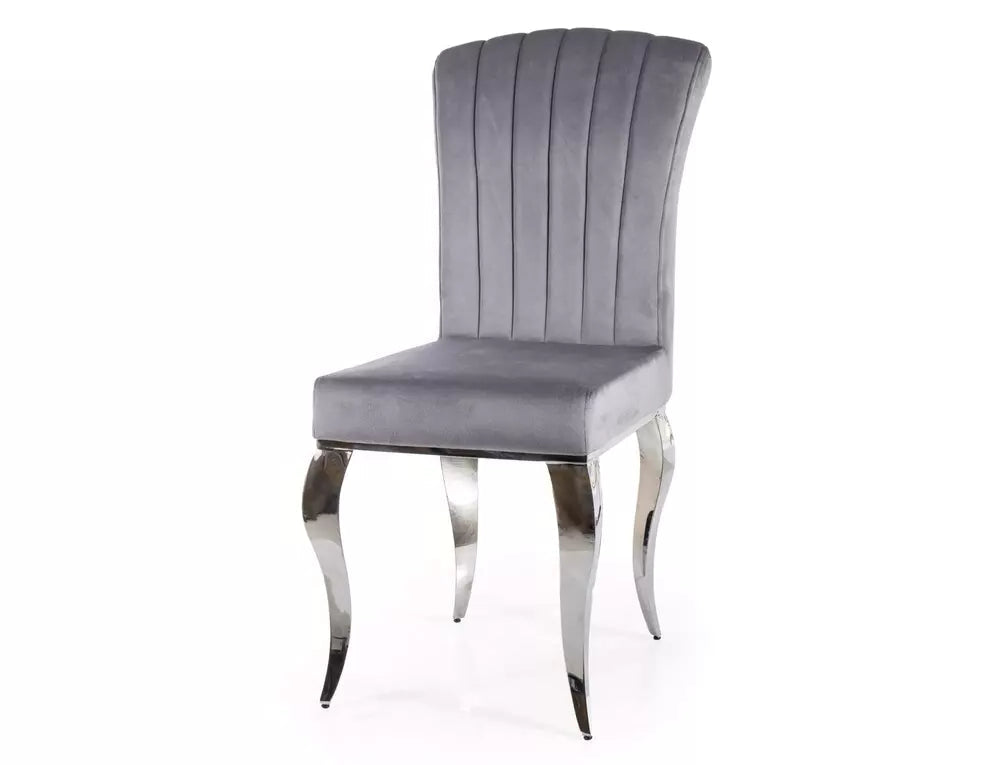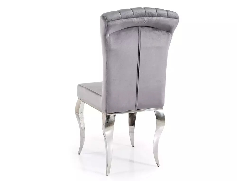 Scaun cu tapiterie din catifea si cadru din metal culoare crom.
