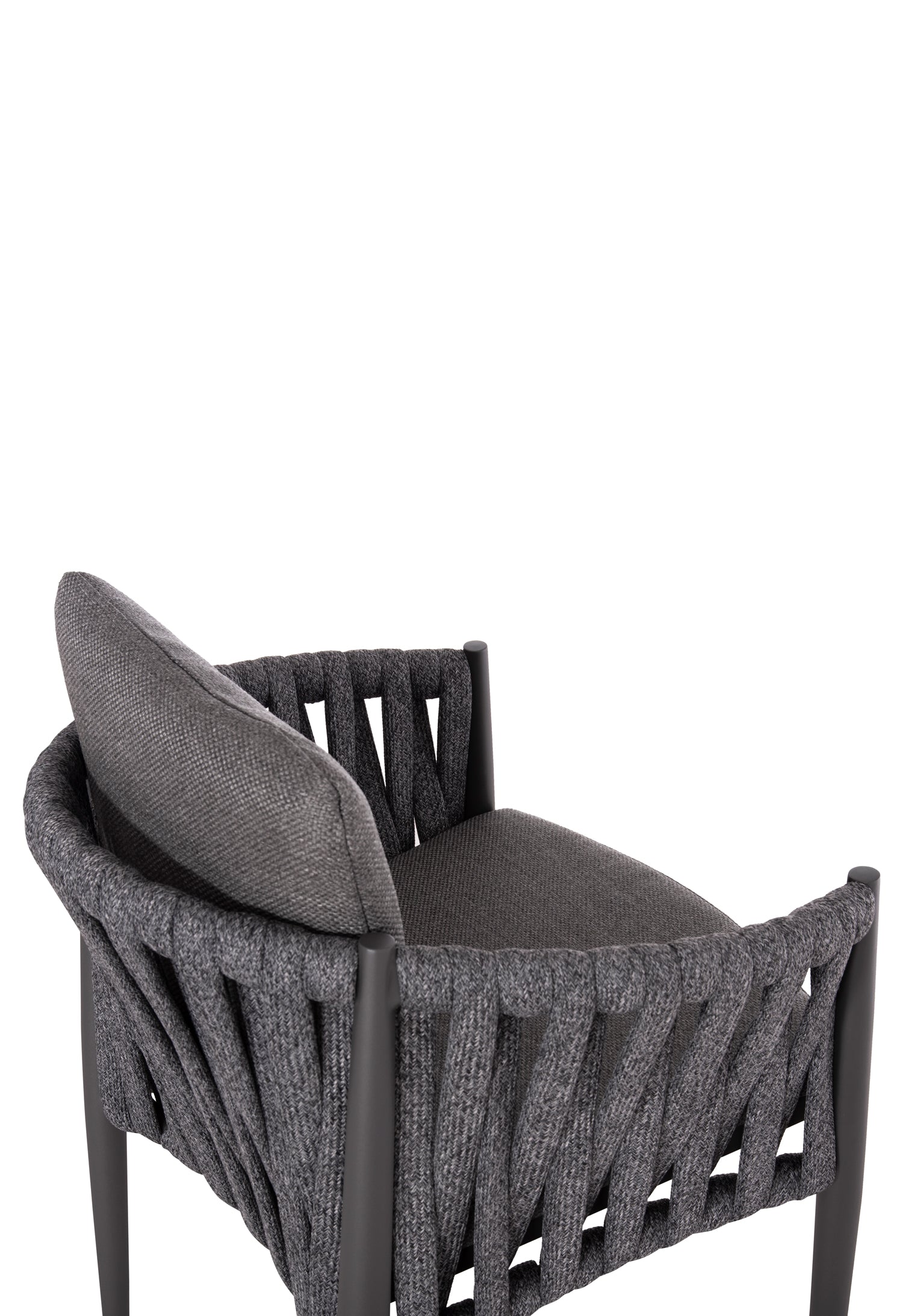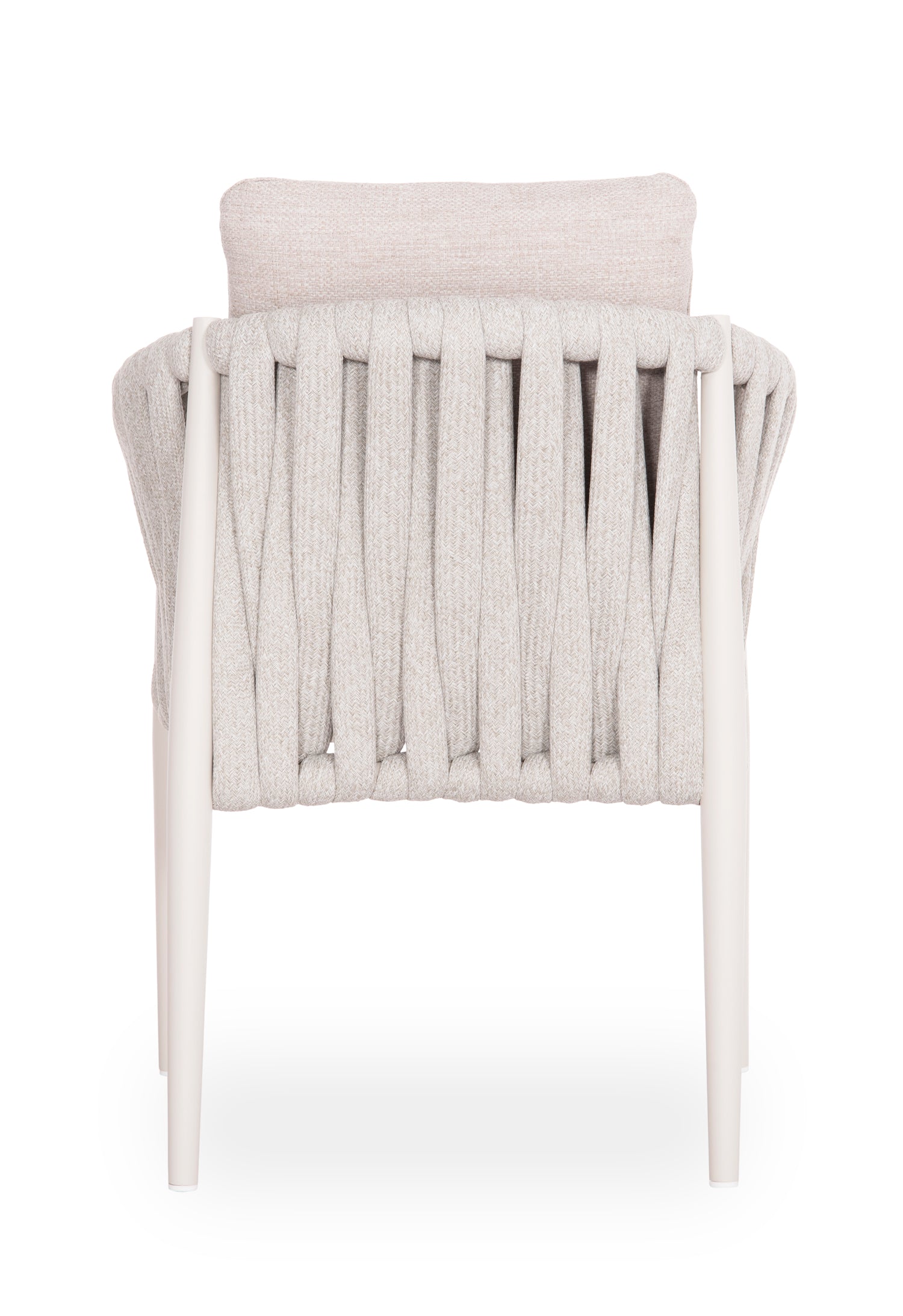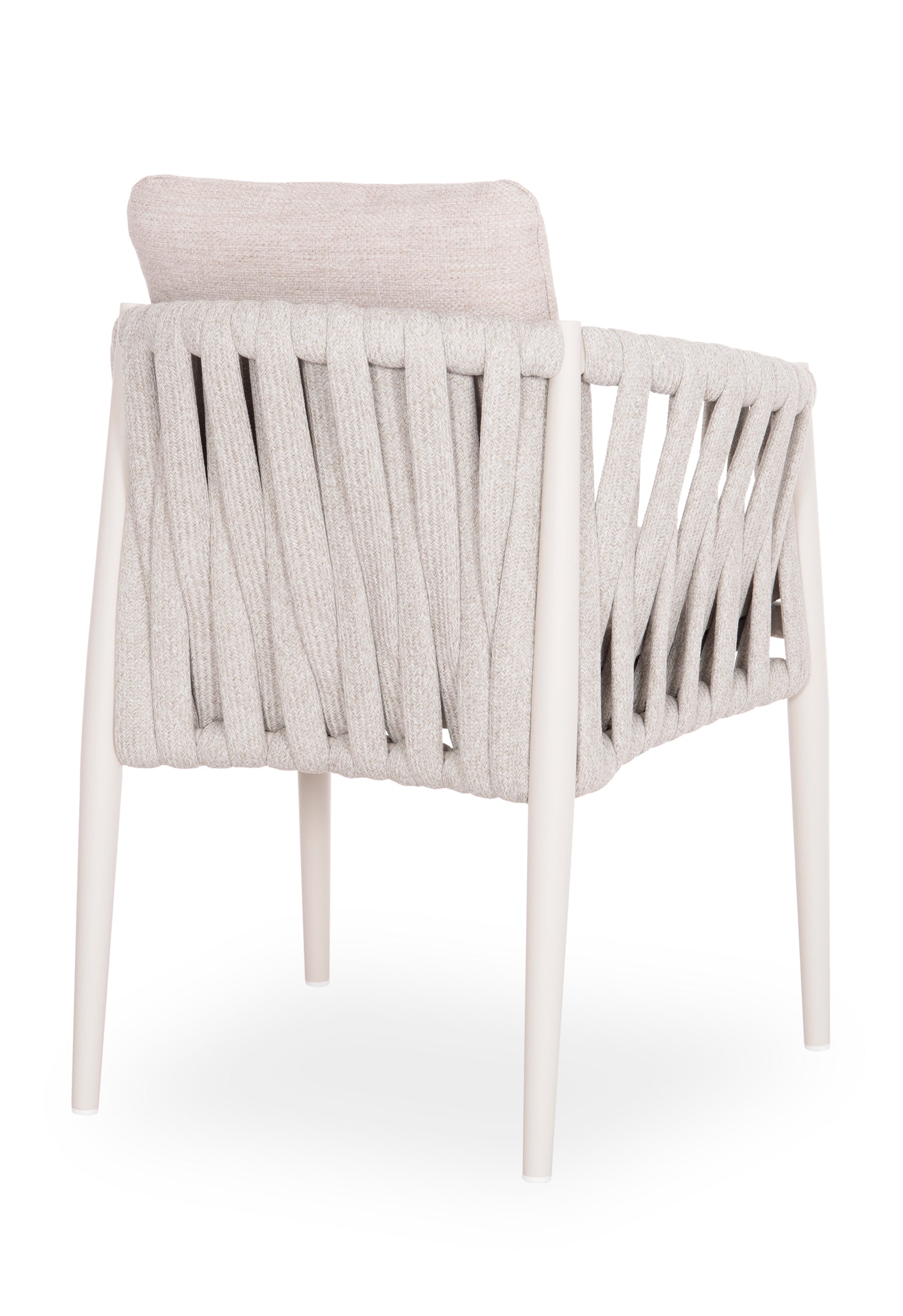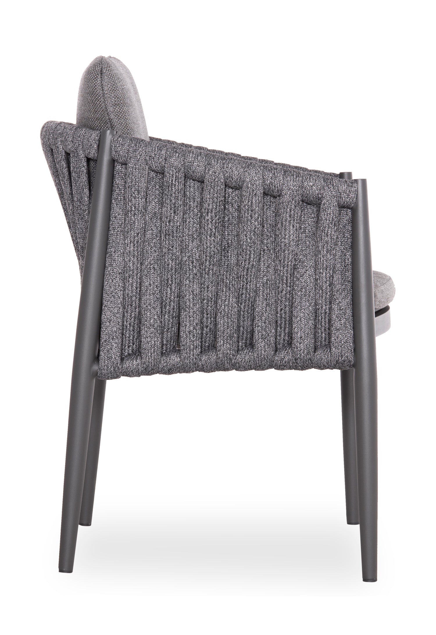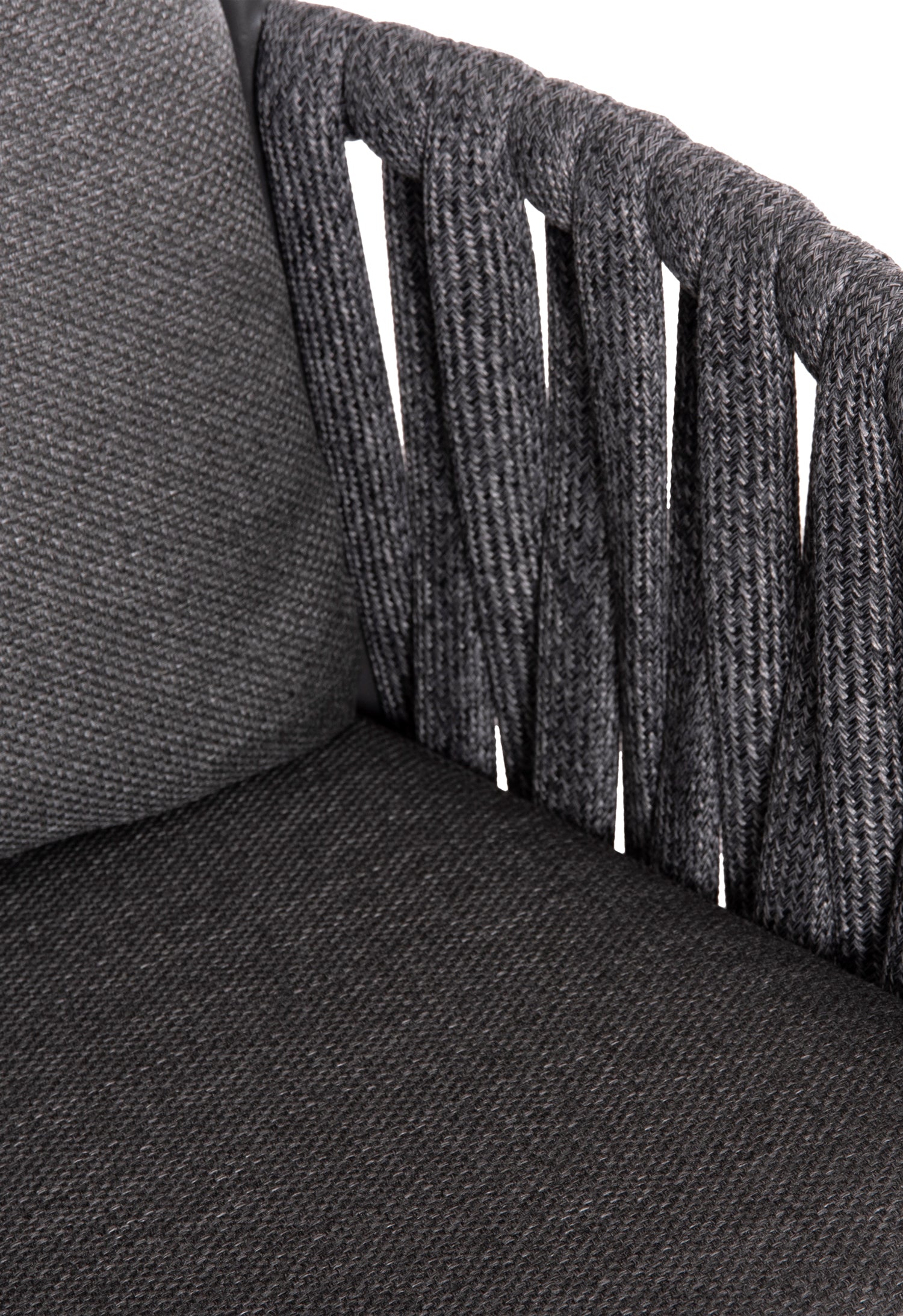 Fabricat din aluminiu și frânghie cu curea lată din poliester ca o căptușeală pe spătarul semicircular, acesta emană lux și confort. Îmbrăcămintea pernelor este din țesătură OLEFIN, care este hidrofugă și durabilă.