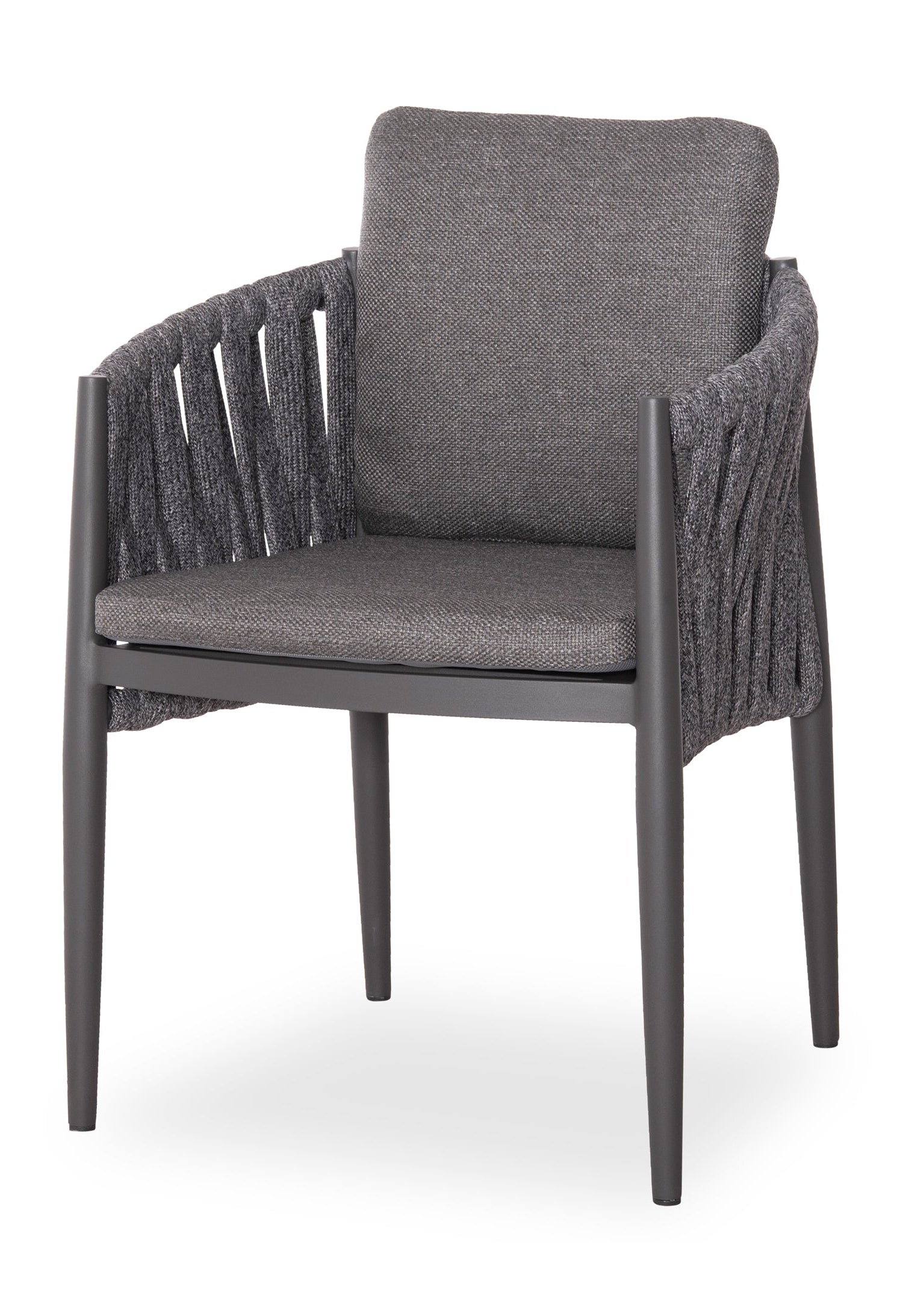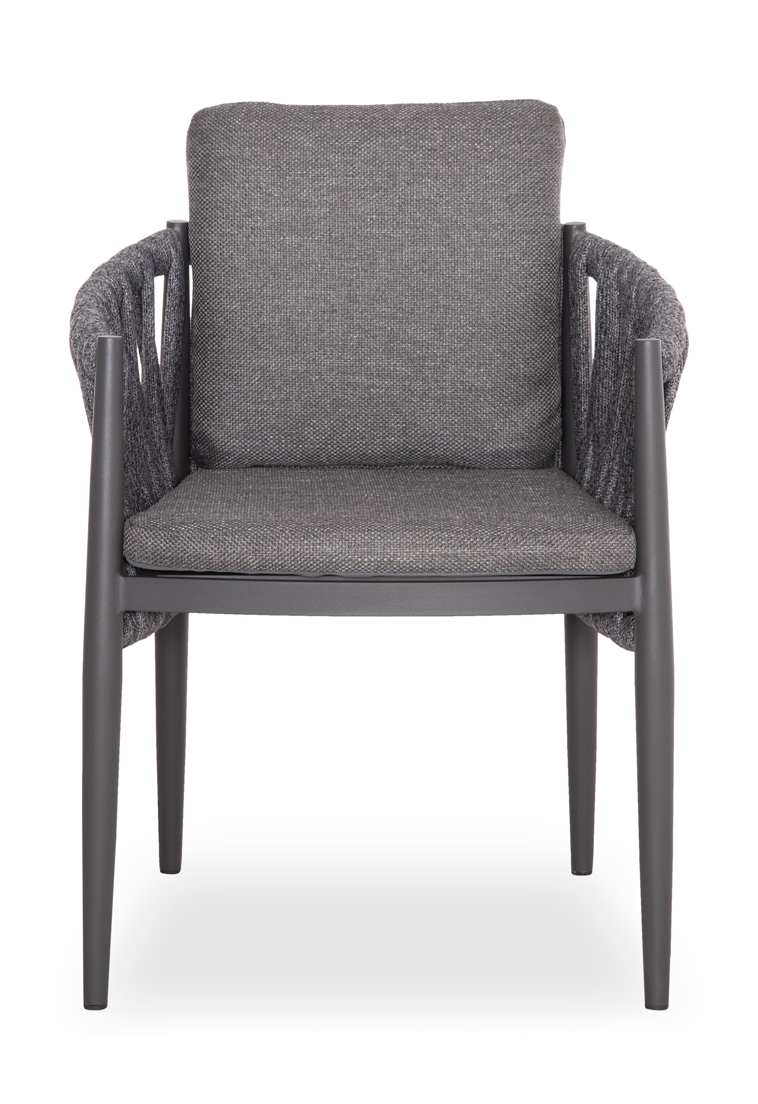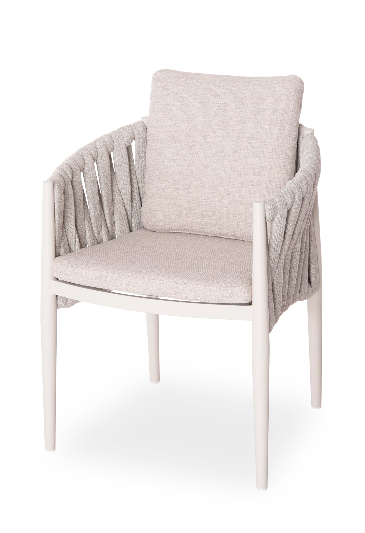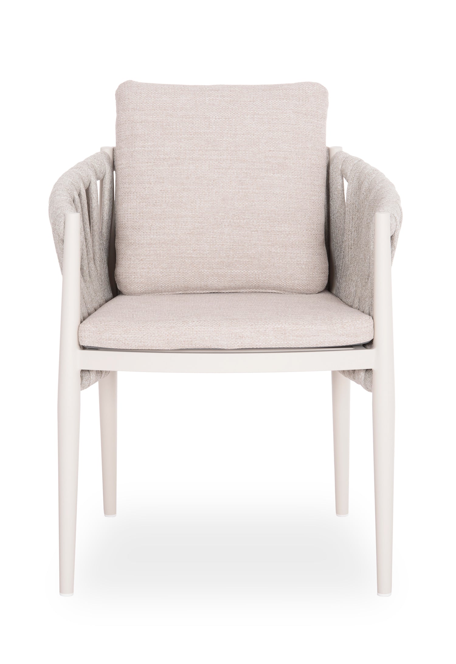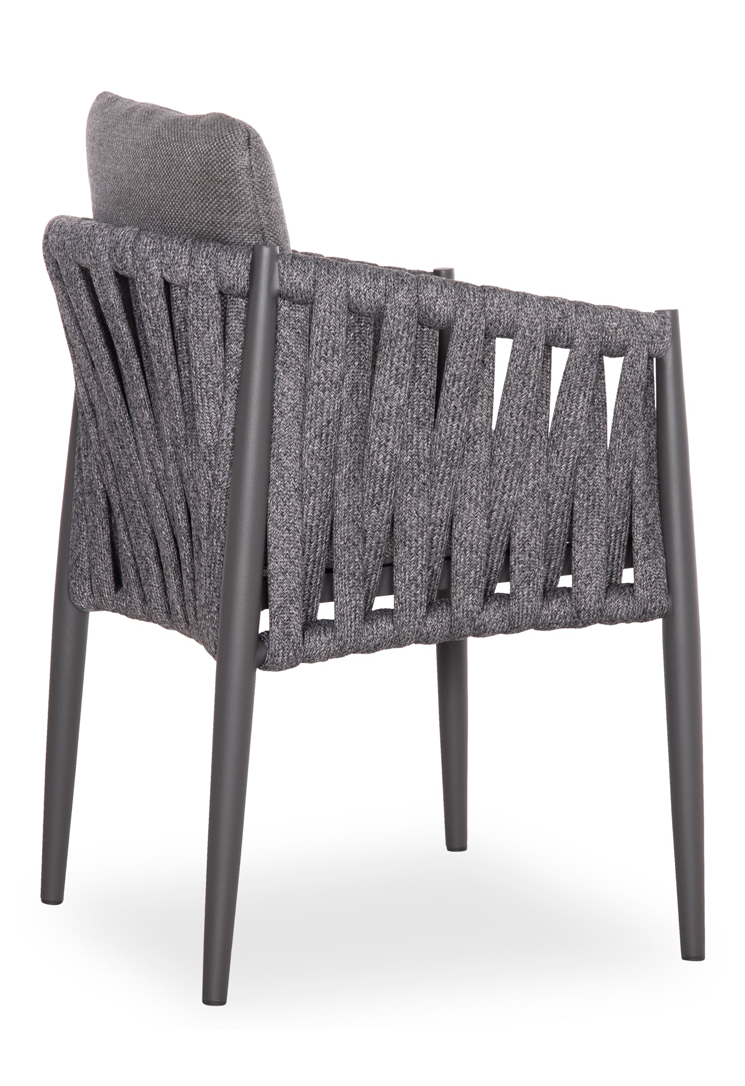 Fabricat din aluminiu și frânghie cu curea lată din poliester ca o căptușeală pe spătarul semicircular, acesta emană lux și confort. Îmbrăcămintea pernelor este din țesătură OLEFIN, care este hidrofugă și durabilă.