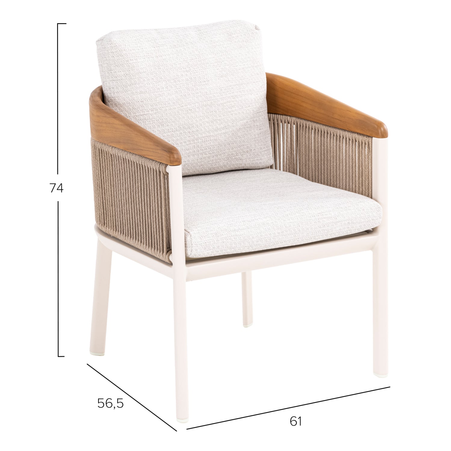 Brațele sunt acoperite cu lemn de tec bine prelucrat în culoarea sa naturală. Lemnul de tec este extrem de greu, de înaltă rezistență, rezistent la intemperii, rezistent la așchii și nu se degradează.