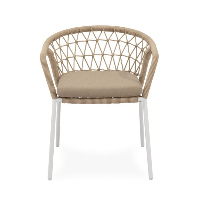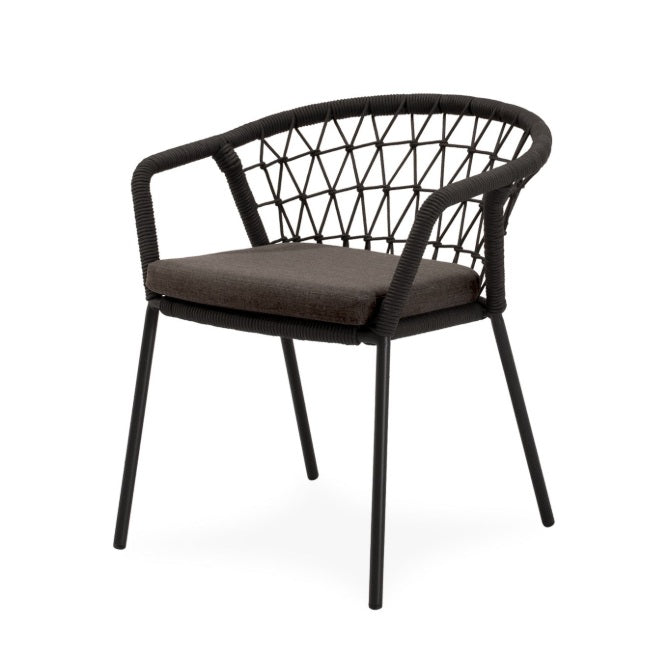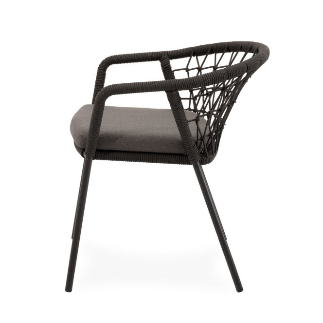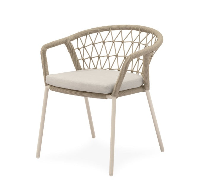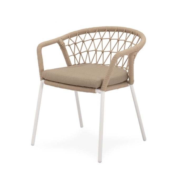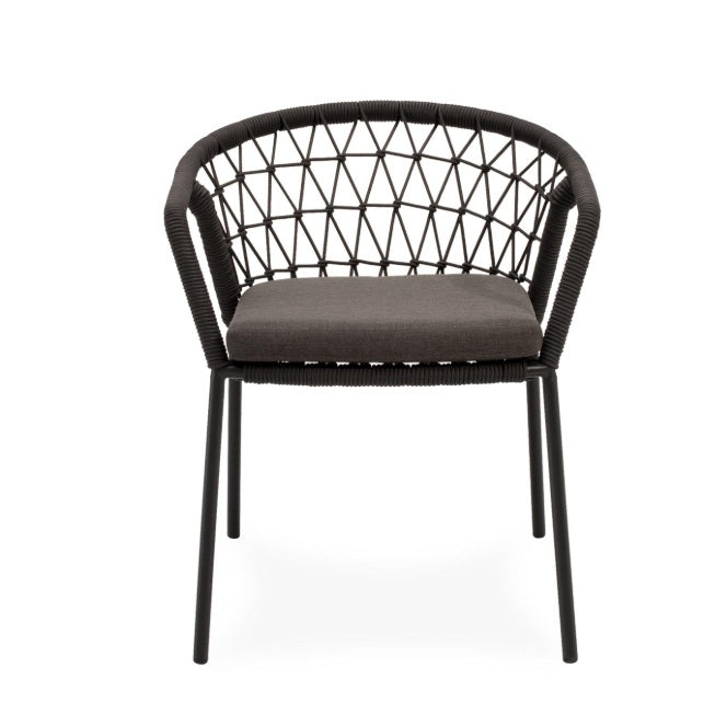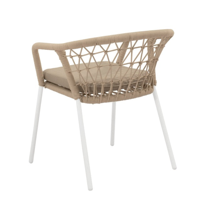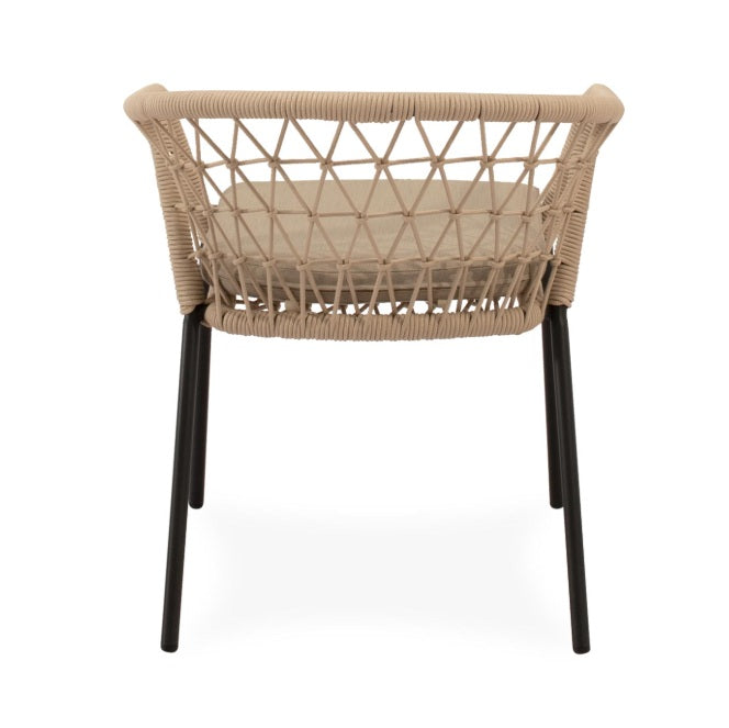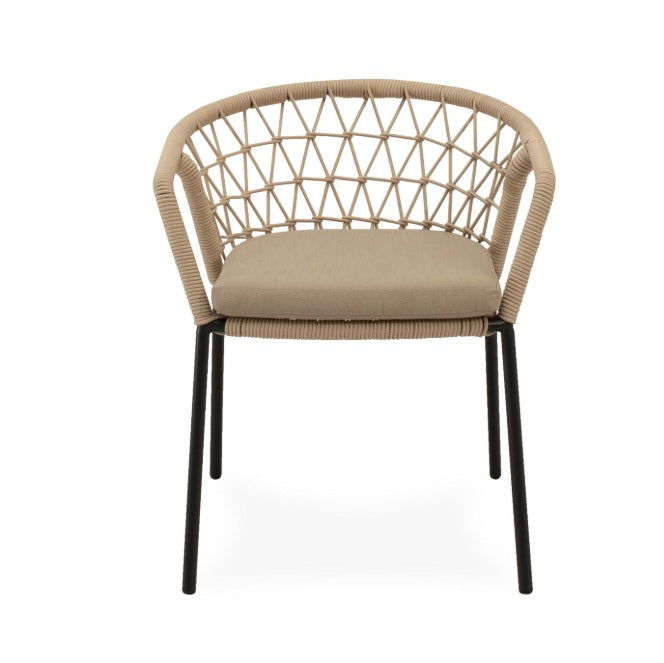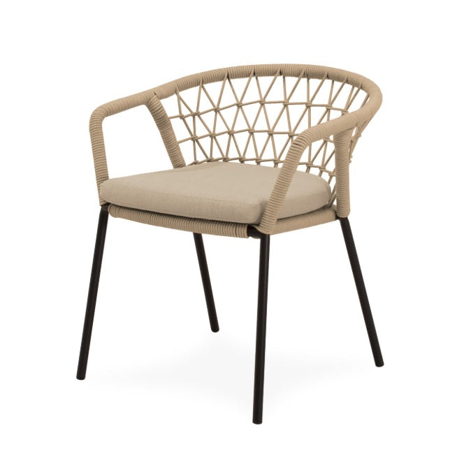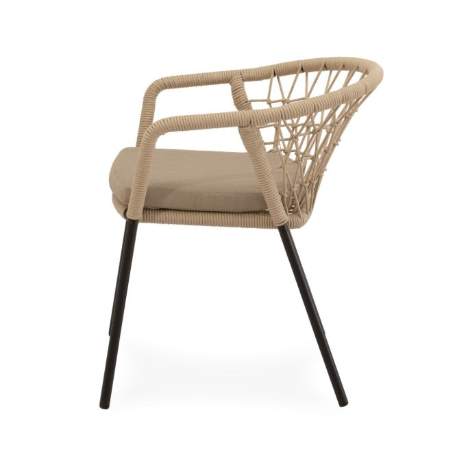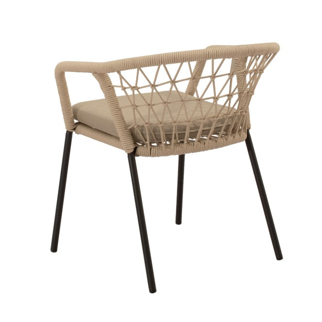 Scaunul SOLAN compus dintr-o tesatura robusta de franghie, picioare din otel, sezut tapitat cu poliester.