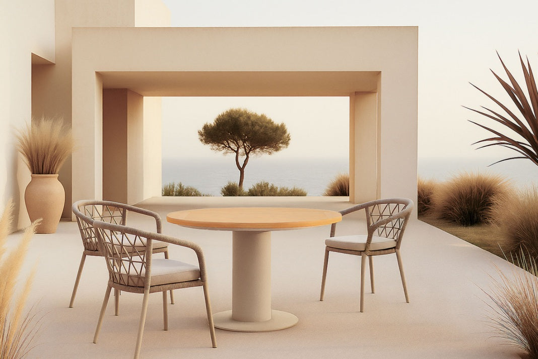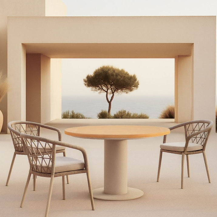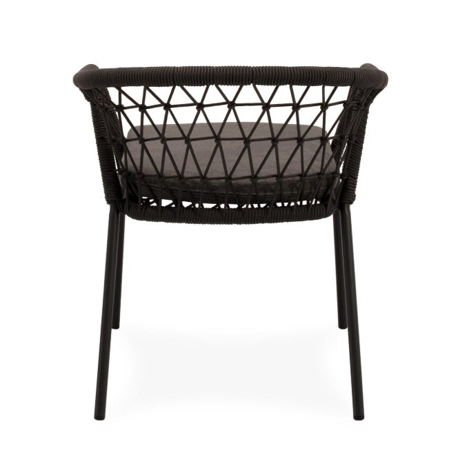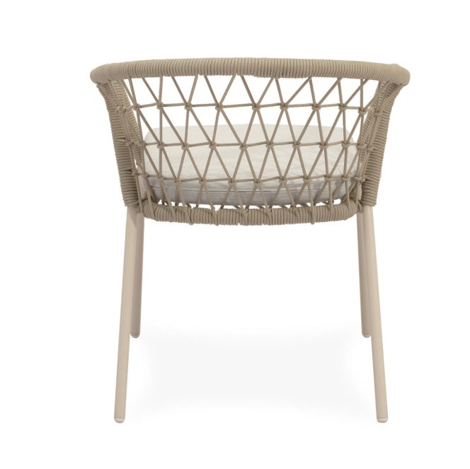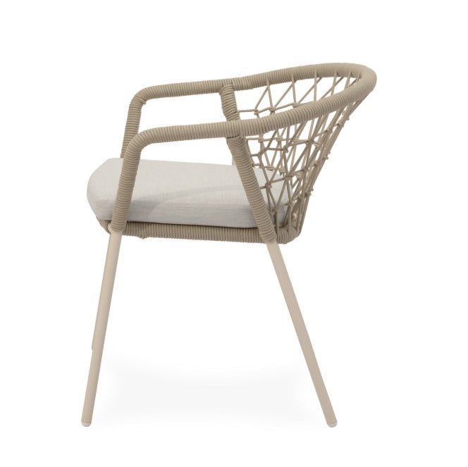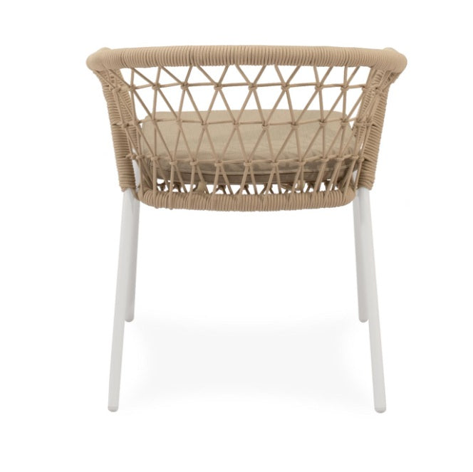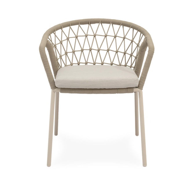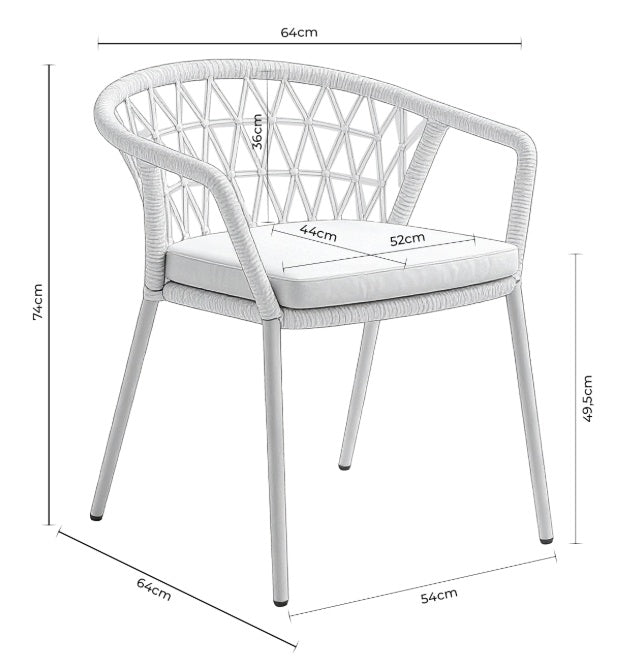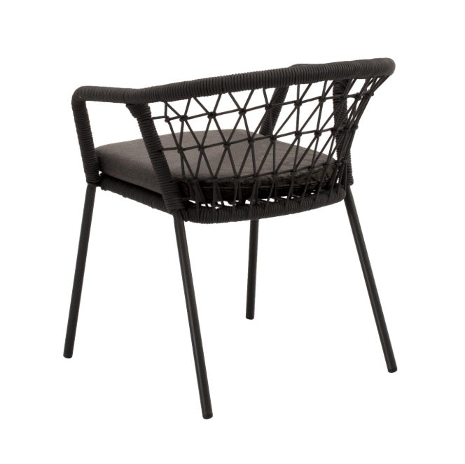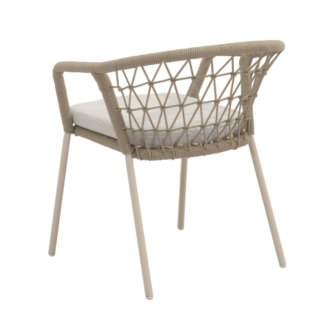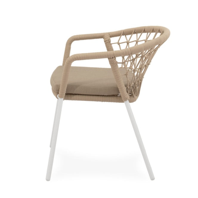 Scaunul SOLAN compus dintr-o tesatura robusta de franghie, picioare din otel, sezut tapitat cu poliester.