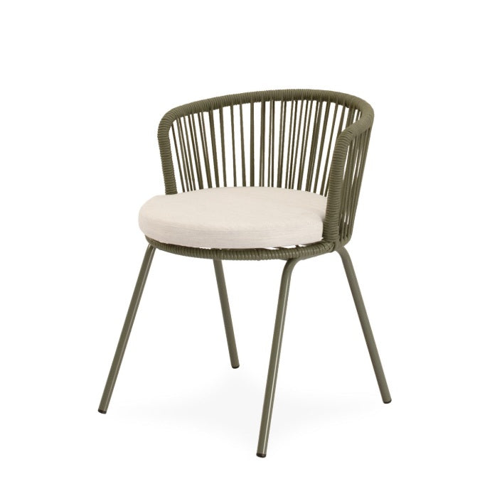 Cu sezut si spatar tesute din franghie durabila, picioare din otel extrem de rezistent pentru utilizare in exterior, acest scaun ofera o baza solida si stabila mentinand in acelasi timp designul elegant si minimalist.
