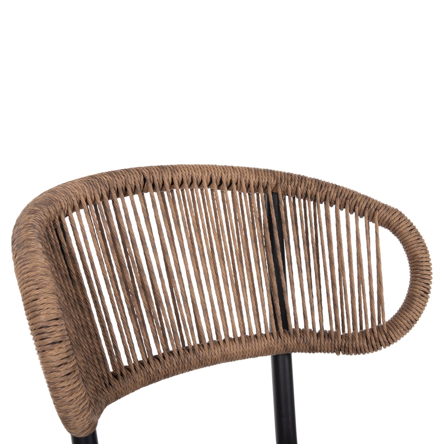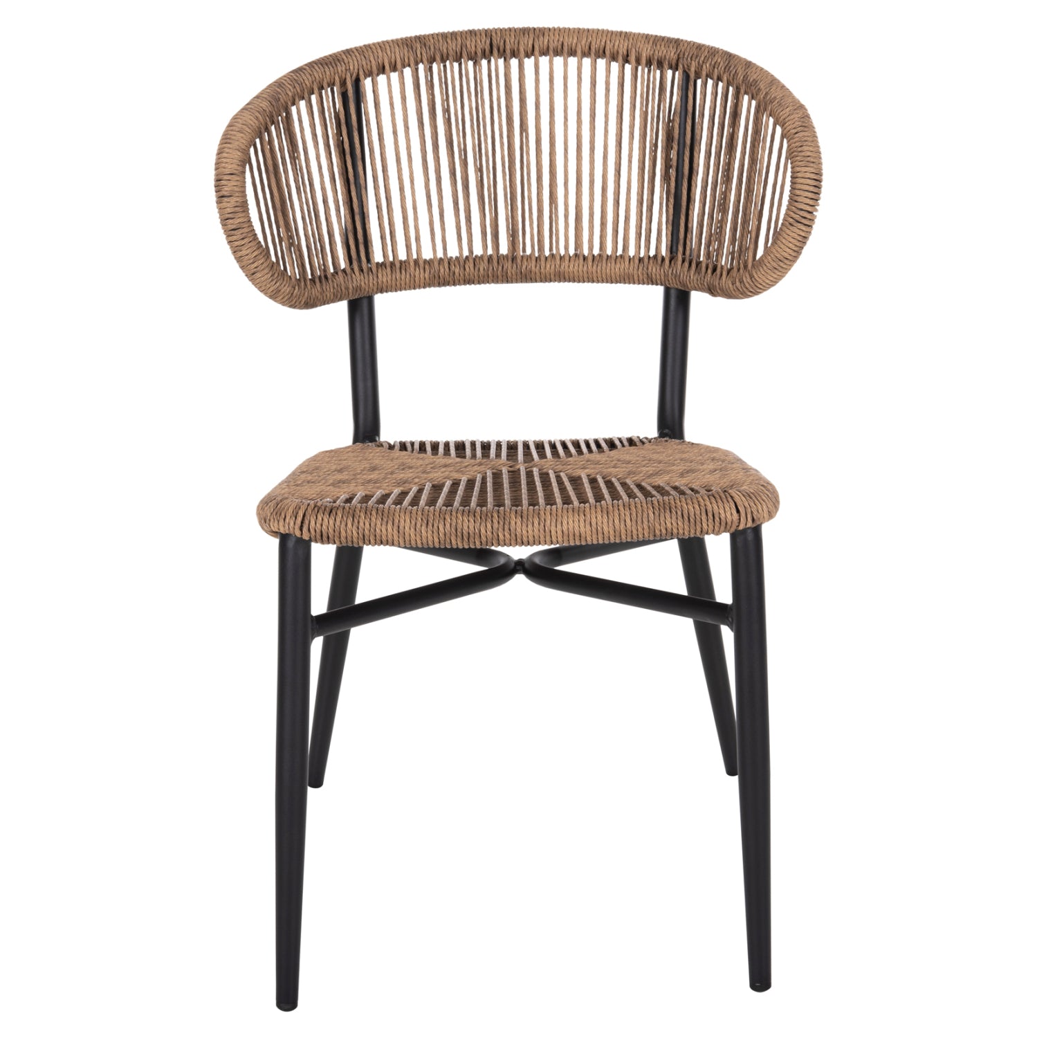 Scaun stivuibil potrivit teraselor acoperite, cu spatar si sezut din ratan sintetic din PVC si cadru din aluminiu vopsit cu pulbere in camp electrostatic.