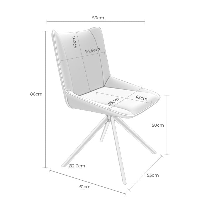 Scaun tapitat cu tesatura texturata , cu strat exterior ce imita pielea de caprioara, oferind textura moale si placuta la atingere.