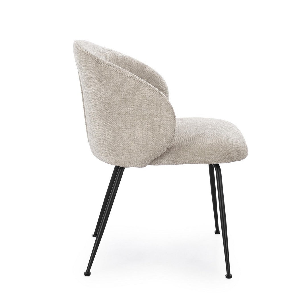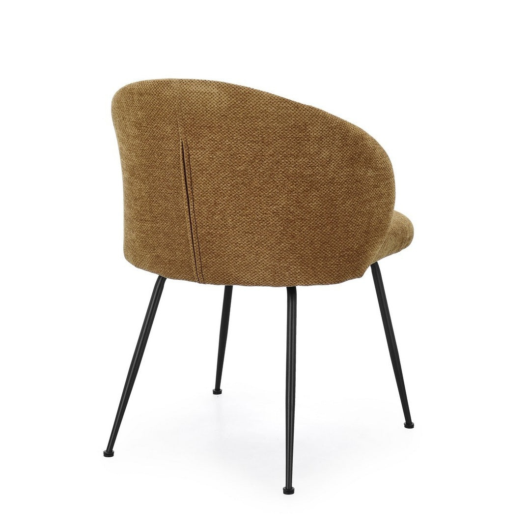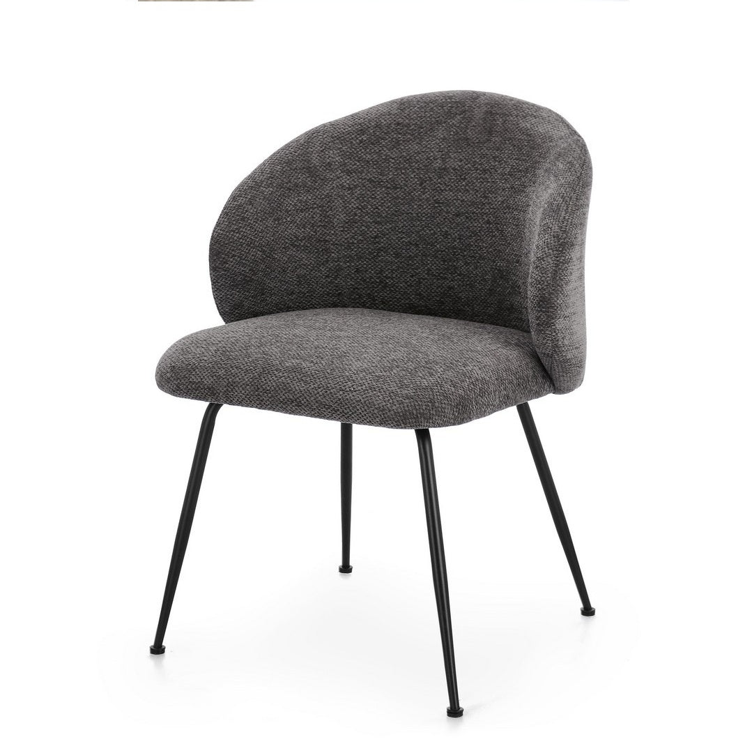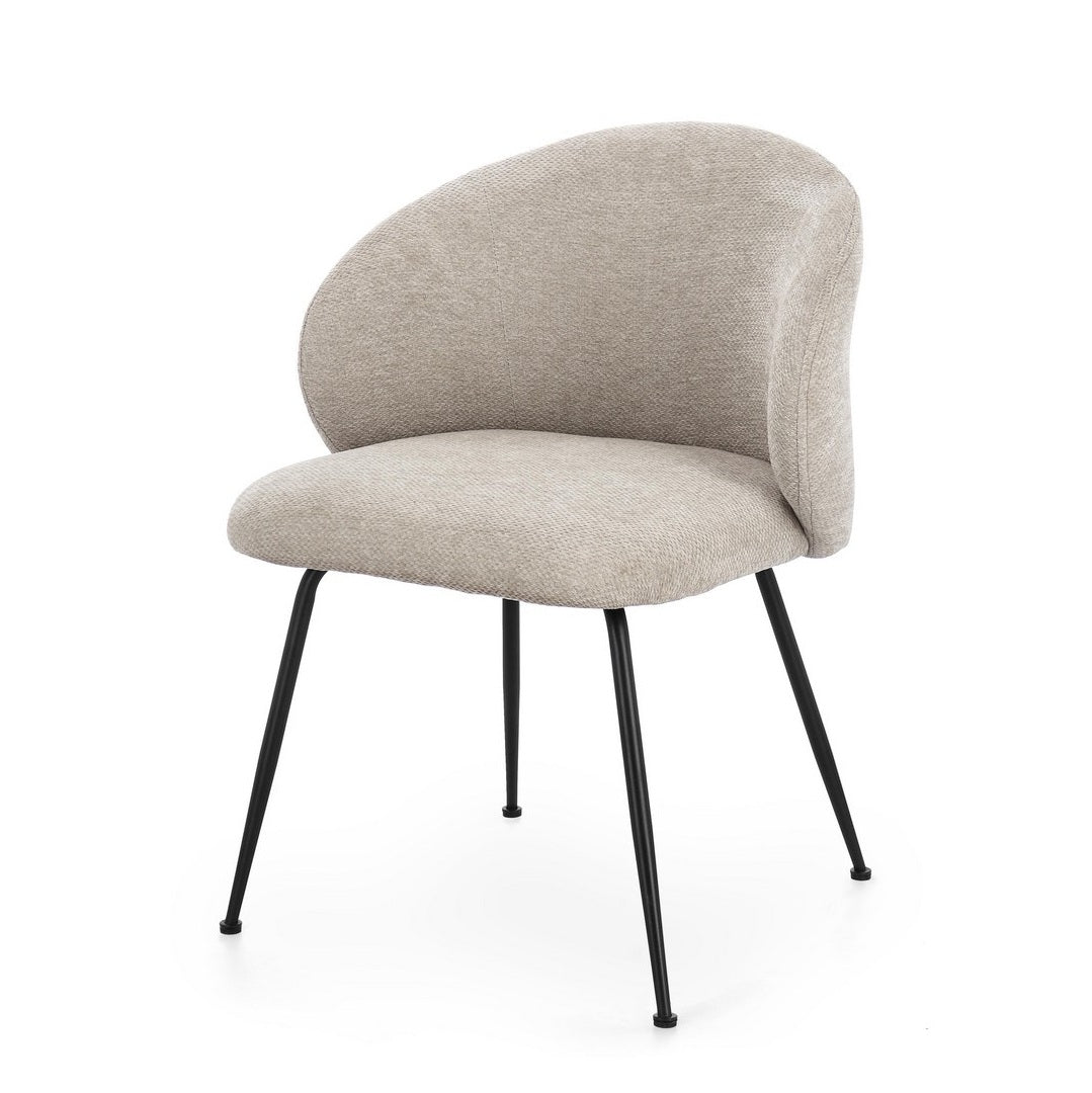 Scaun cu picioare din otel vopsit cu pulbere in camp electrostatic, structura din placaj, umplutura din spuma poliuretanica de densitate 22 kg/m3 si tapiterie din poliester cu efect chenile.