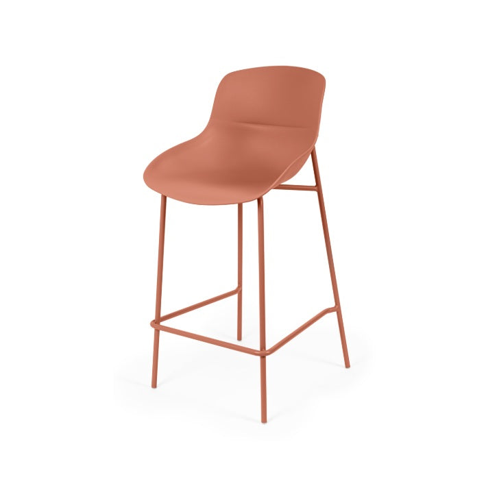 Scaun cu design minimalist, cu sezut din polipropilena cu margini moi ce se sprijina pe un cadru metalic subtire.