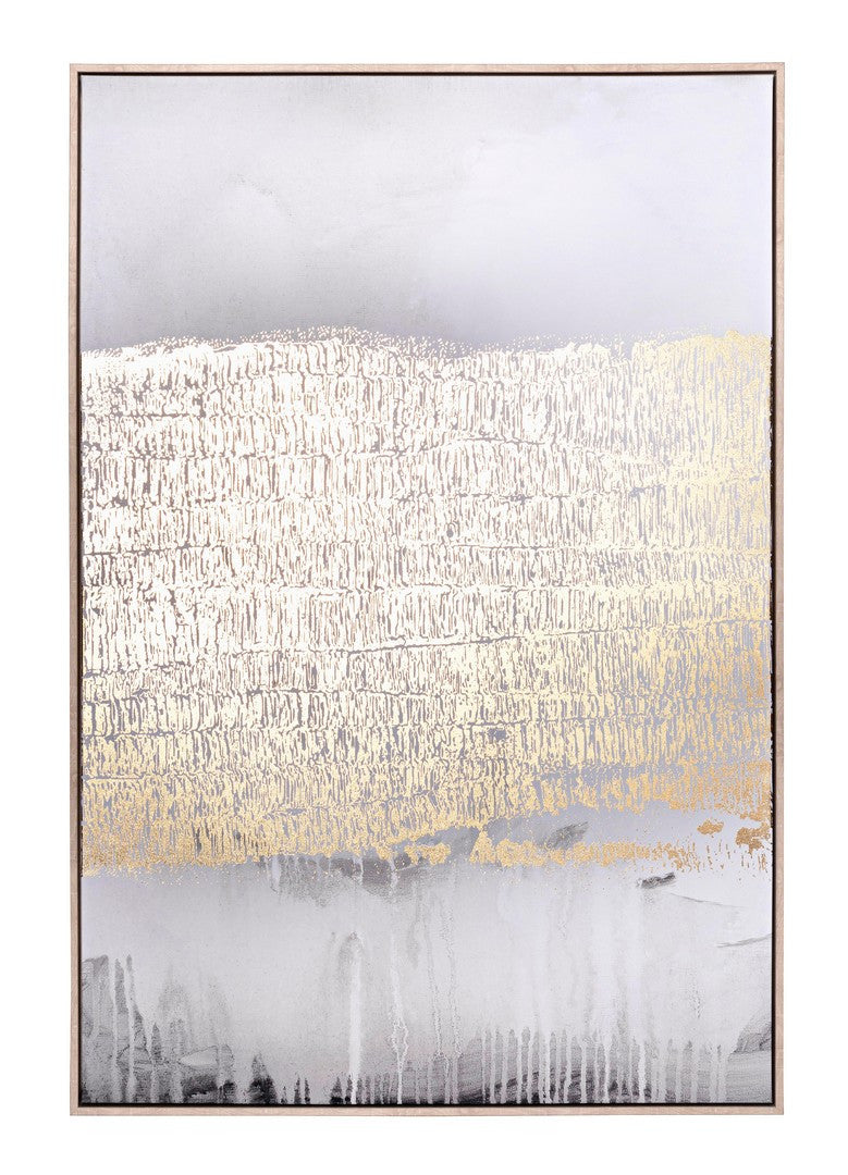 Tablou pe panza cu decoratiuni in ulei si cu foita aurie.