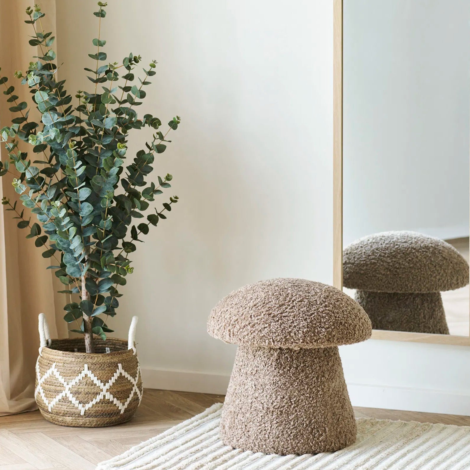 Taburet din placaj, tapiterie 100% poliester (blana artificiala), spuma.