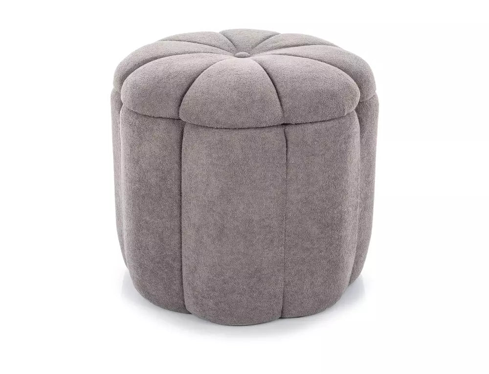 Taburet cu tapiterie din material textil, cu spatiu pentru depozitare.