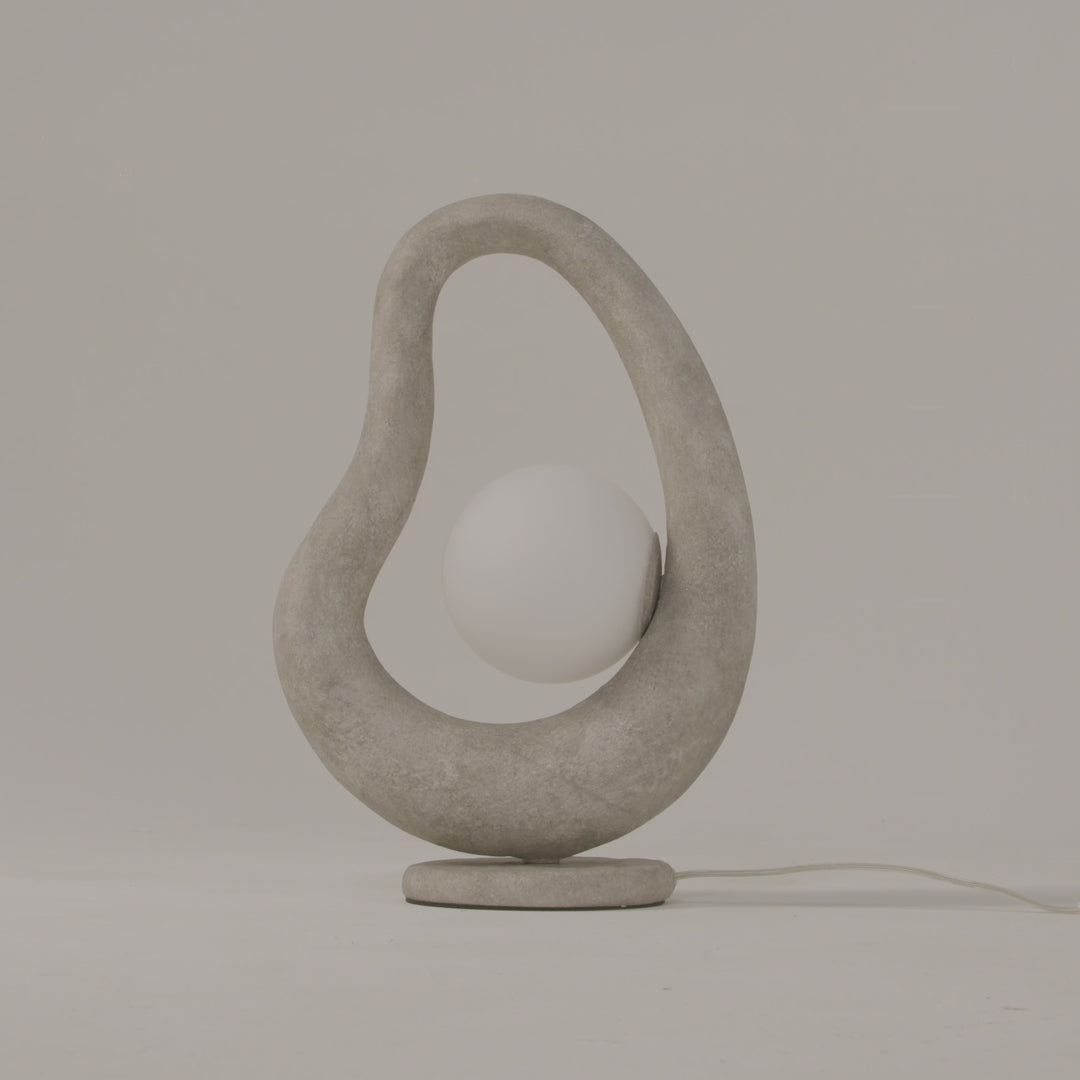 Veioza din polirasina, cu structura usoara si suprafata placuta la atingere.