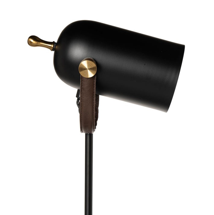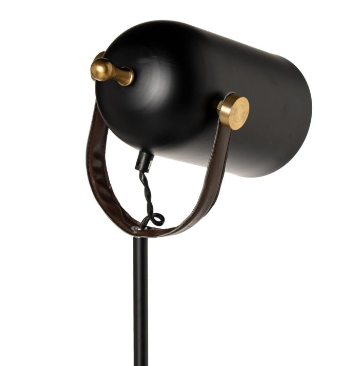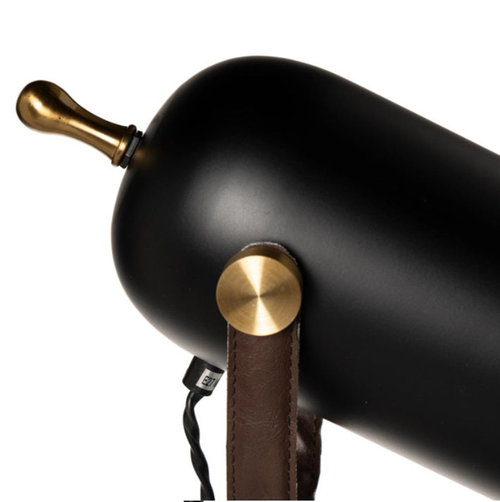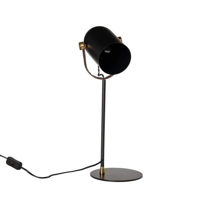 Lampă de masă metalică cu o adâncime de 25 cm și o înălțime de 58 cm.