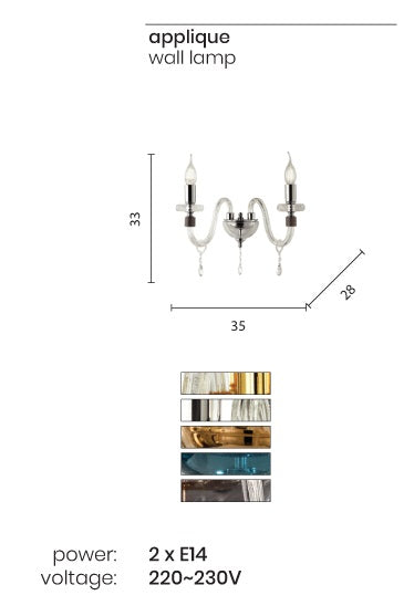 Aplica de perete lucrata manual, din metal si sticla, cu decoratiuni de cristal.